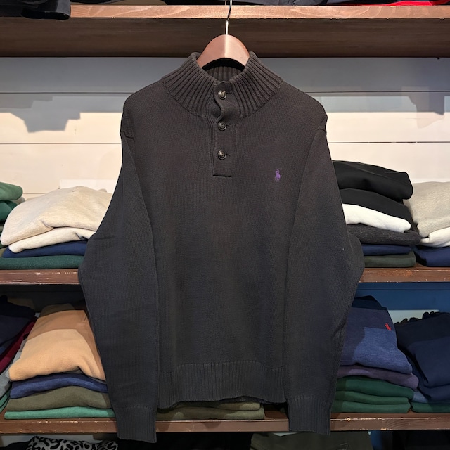 “オトナオシャレ” Ralph Lauren H/B sweater knit (BLACK)”size L” ラルフローレンハーフボタン ブラック 古着 古着屋 郡山