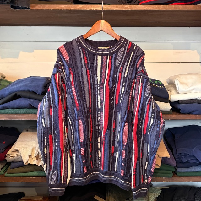 商品番号 b-7173 ・サイズ表記(SIZE):M ・着丈(LENGTH) :63cm ・身幅(CHEST) :59cm ・肩幅(SHOULDER) :59cm ・袖丈(SLEEVE) : 57cm ・色(COLOR) :NAVY系 ・素材(MATERIAL) :Cotton100% ・生産国 MADE IN Hong Kong ・状態(CONDITION) :画像のとおり、目立つダメージや汚れ等なく生地もシッカリとした状態です。 本日、本店からご紹介するアイテムは…… なんか物足りないなあ、、って思ってるそこの貴方にオススメ!! ストリート、カジュアル、アメカジ、とにかく個性が出てカッコよすぎる!秋冬春にピッタな”3Dknit”!! 最近なかなか見かけないですよね……それがなんと!今回大量に入荷できました☆ というこもでその中からスタッフ激推しデザインをチョイスさせてもらいました! もう見てください。可愛すぎません? 配色が神すぎている……これは惹かれる…//// もちろん男女共にすごくオススメ! ベストのインナーやジャケットと相性抜群!! シンプルすぎて逆になんかなあ、って方に!お助けアイテムすぎる!! “でもなんか派手じゃね?” そんな事ありません!! 着てみると馴染んでくれます♪♪ 是非この機会に挑戦してみてはいかがでしょうか!