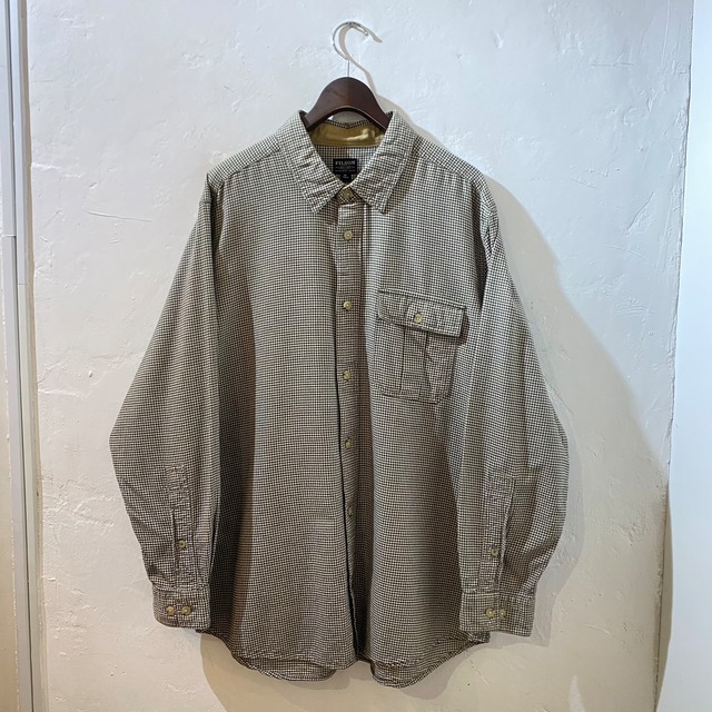 ”使い勝手抜群◎” Eddie Bauer B.D Shirt size:L (beige) エディーバウアー チェックシャツ ボタンダウン アウトドア 古着屋