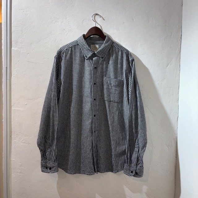 b-6737 ・サイズ表記(SIZE) : L-REG ・着丈(LENGTH) :77cm ・身幅(CHEST) :65cm ・肩幅(SHOULDER) :52cm ・袖丈(SLEEVE) :66cm ・色(COLOR) :ホワイト×ブラック ・素材(MATERIAL) :コットン100% ・生産国 MADE IN Sri Lanka ・状態(CONDITION) :画像の通り、目立つダメージや汚れ等なく、生地もしっかりとした状態です。 今日は〜、老舗アウトドアブランド L.L.Bean から、王道の 白黒ギンガムチェック が映えるヘビーネルシャツ!!! しっかりとした厚手のコットンフランネル生地で、ふっくらとした起毛感と無骨な存在感が魅力。 チェックながら落ち着いたモノトーン配色で、どんなスタイルにも馴染む万能さ。 ボックスシルエットに胸ポケット付きのオーセンティックなデザイン。 Tシャツの上にさらっと羽織るだけで雰囲気が出る、まさに“アメリカンカジュアル”の王道アイテム。 経年での風合いも楽しめる、永く付き合いたい一枚です。 万能な個体。この機会に是非!!!