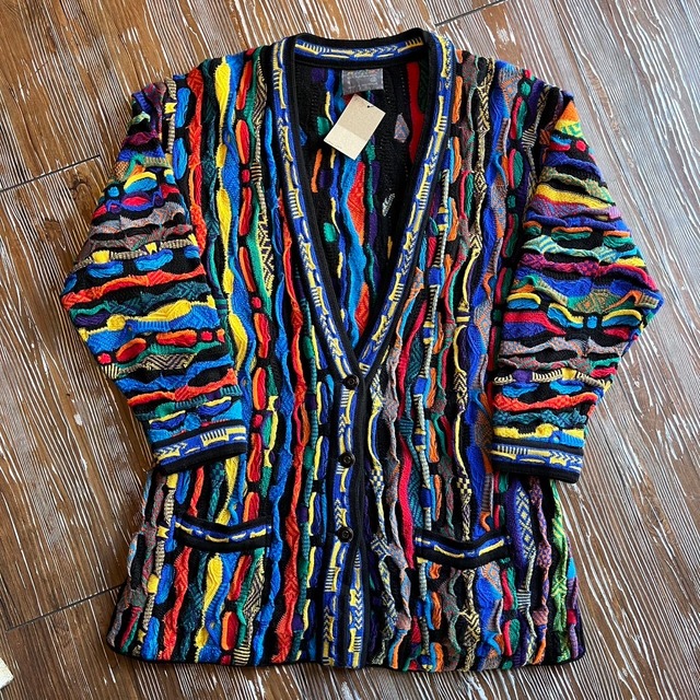 b-5141 ・サイズ表記(SIZE):S ・着丈(LENGTH) :70cm ・身幅(CHEST) :56cm ・肩幅(SHOULDER) :56cm ・袖丈:(SLEEVE):47cm ・色(COLOR) :Red Green Bule Yellow Black Orange Purple.... ・素材(MATERIAL) :Pure New Wool 100% ・生産国:MADE IN Australia ・状態(CONDITION) :画像の通り、目立つダメージや汚れ等なく生地もしっかりとした状態です。 今、注文のブランド”クージー”のセーターで、配色も良い”カーディガン”タイプ。フェイクアイテムが多くありますが、本物となると雰囲気も別格です。 柄や編み込みなど同じ物が無く、一点物なのもこのアイテムの魅力の一つだと思います。 原色を使ったインパクトのある配色パターン カーディガンタイプなのでTシャツやスウェットの上からガバっと羽織れます◎ お好きな方、是非ご検討ください◎