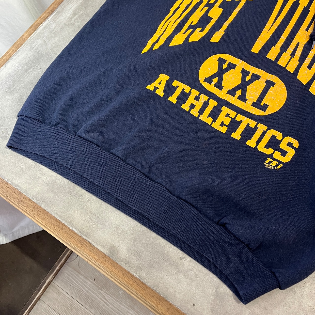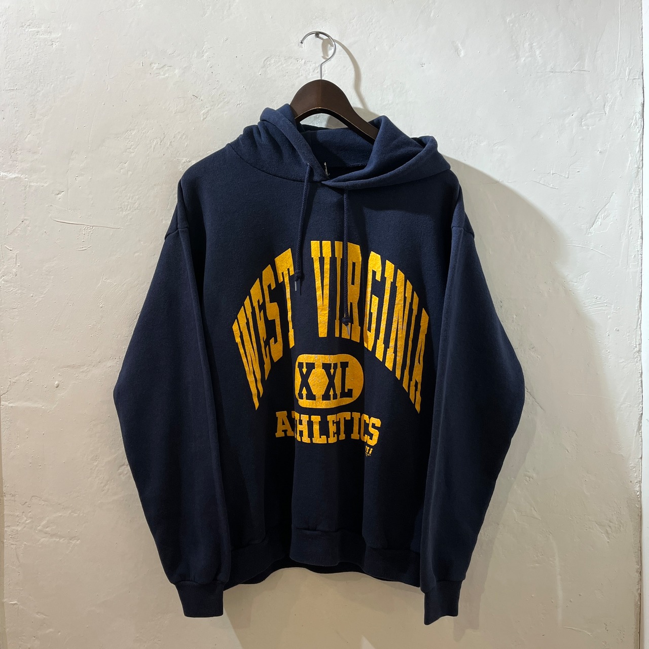 90s College Print S/W Hoodie (NAVY) カレッジ系 スウェット パーカー ストリート アメカジ 古着屋