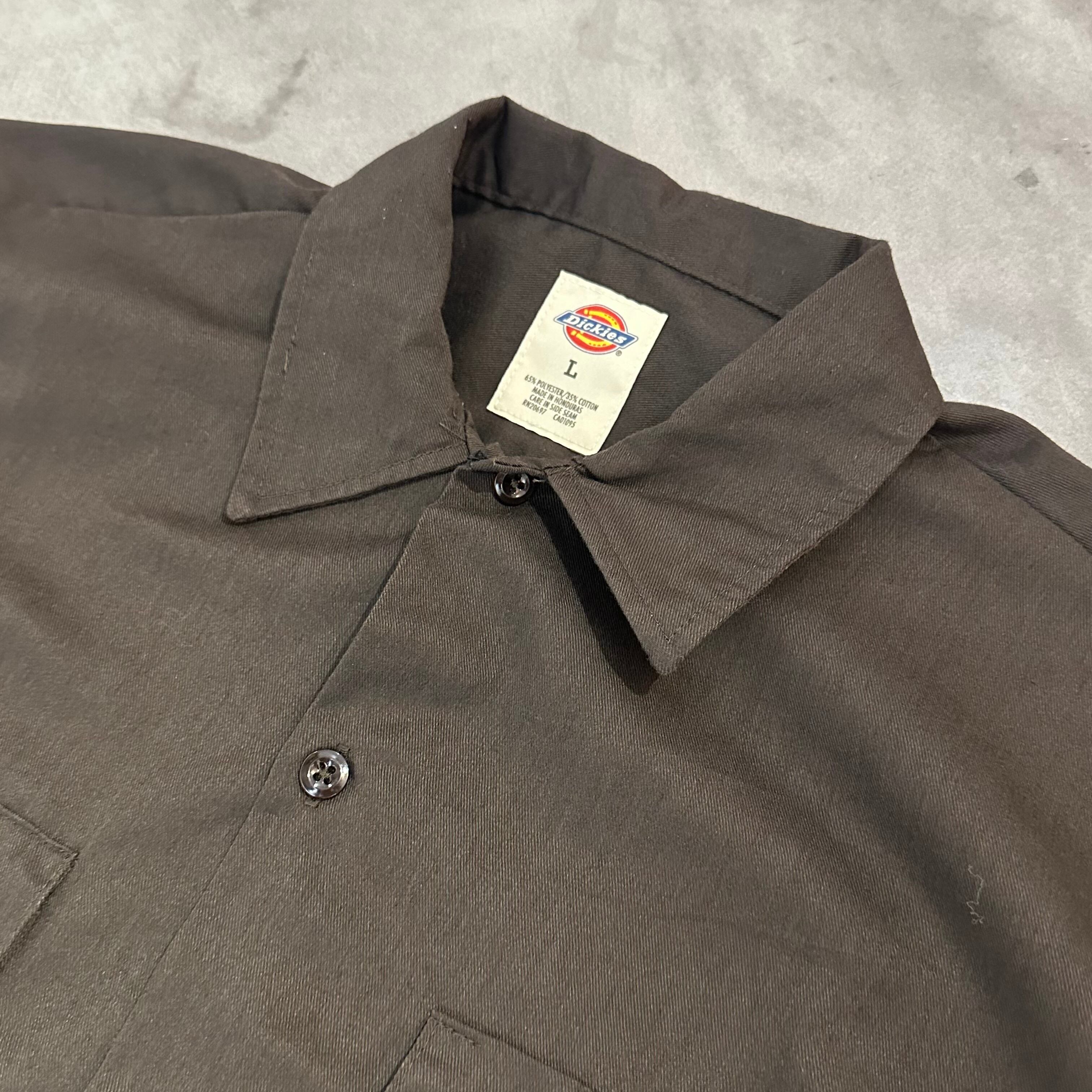 ”アメリカンな土臭さ◎”Dickies Work Shirt size:L (brown) アメリカ アメカジ ストリート テック シティ 古着屋
