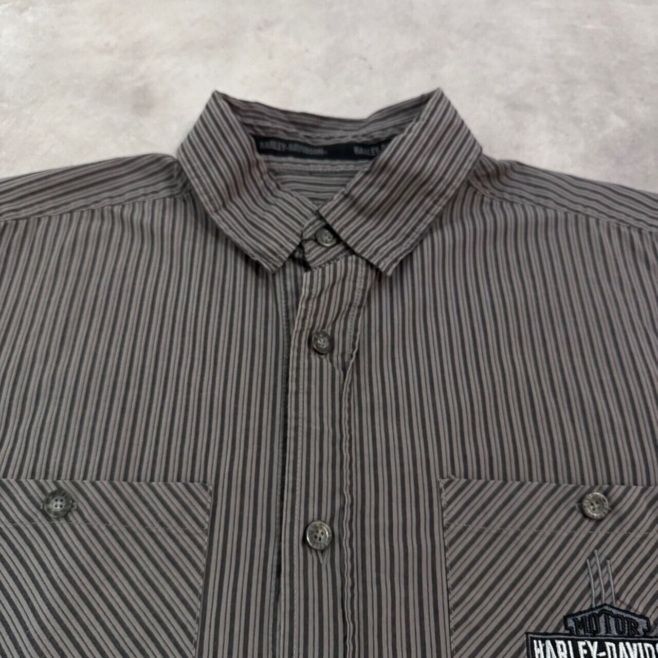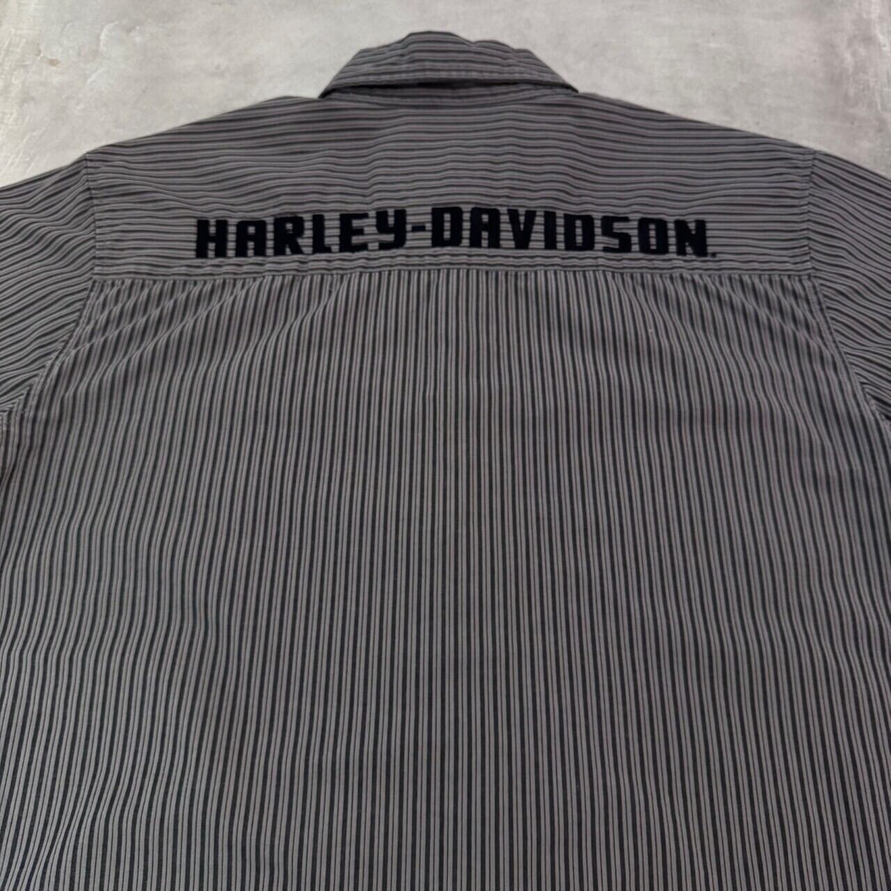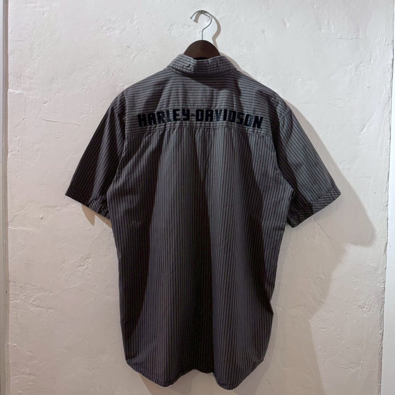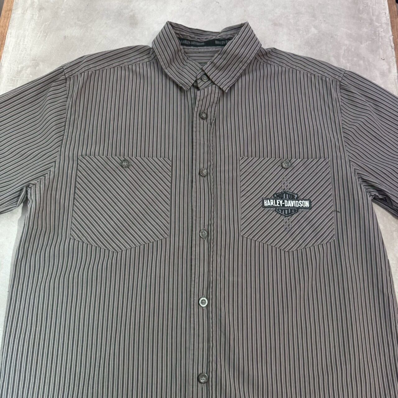 “ストライプ柄○” Harley Davidson S/S StripeShirt Size:S (GLAY) 刺繍ロゴ ハーレーダビッドソン ストライプ柄 半袖シャツ 古着 古着屋 郡山