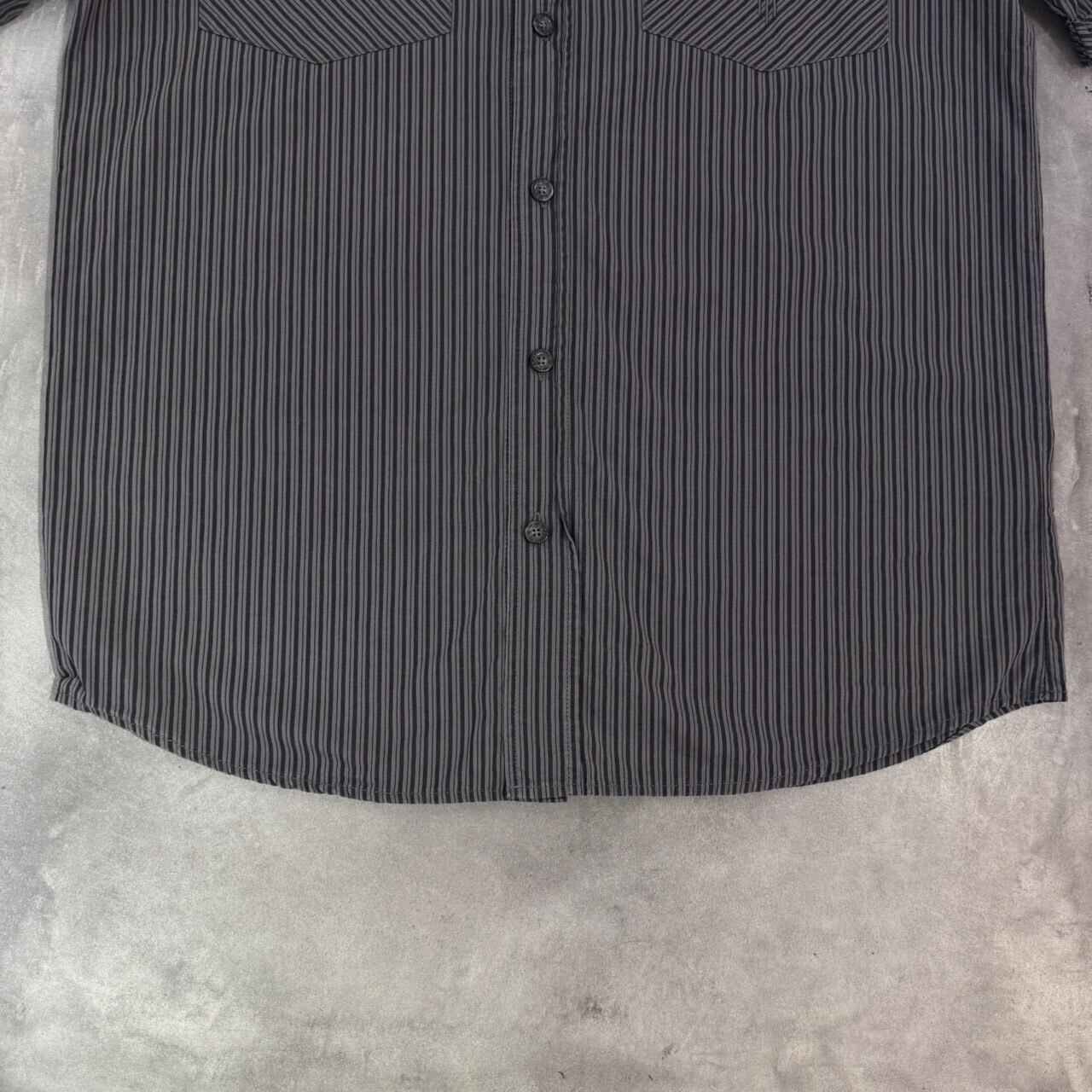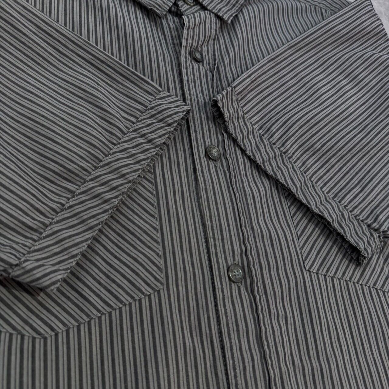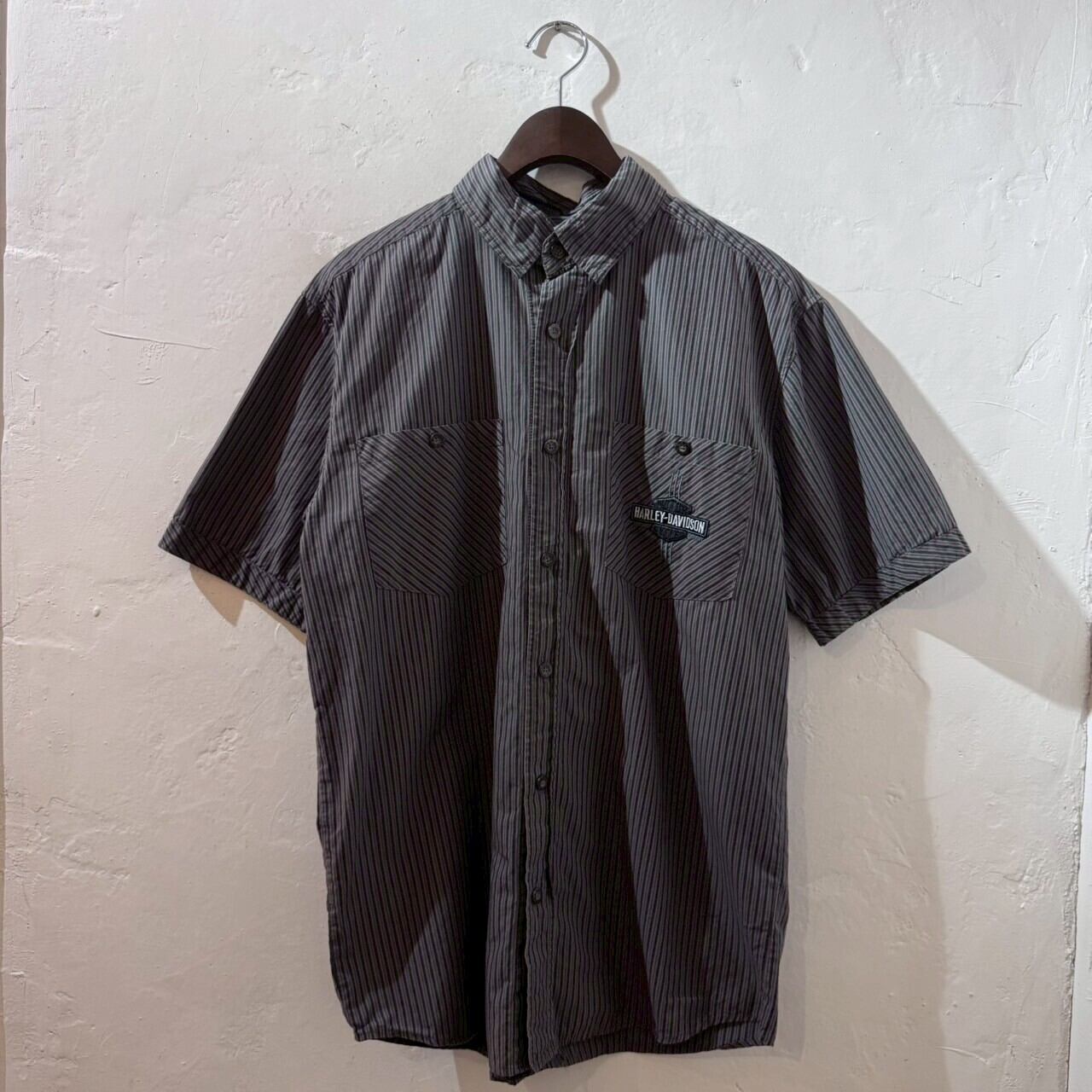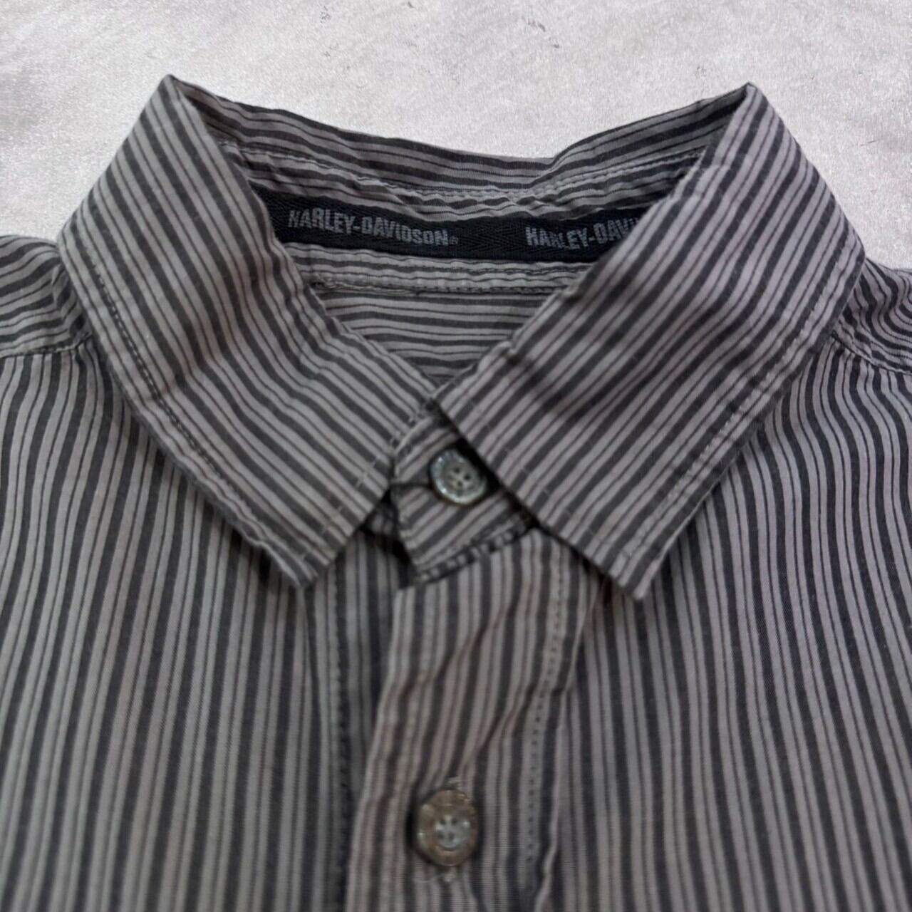 “ストライプ柄○” Harley Davidson S/S StripeShirt Size:S (GLAY) 刺繍ロゴ ハーレーダビッドソン ストライプ柄 半袖シャツ 古着 古着屋 郡山