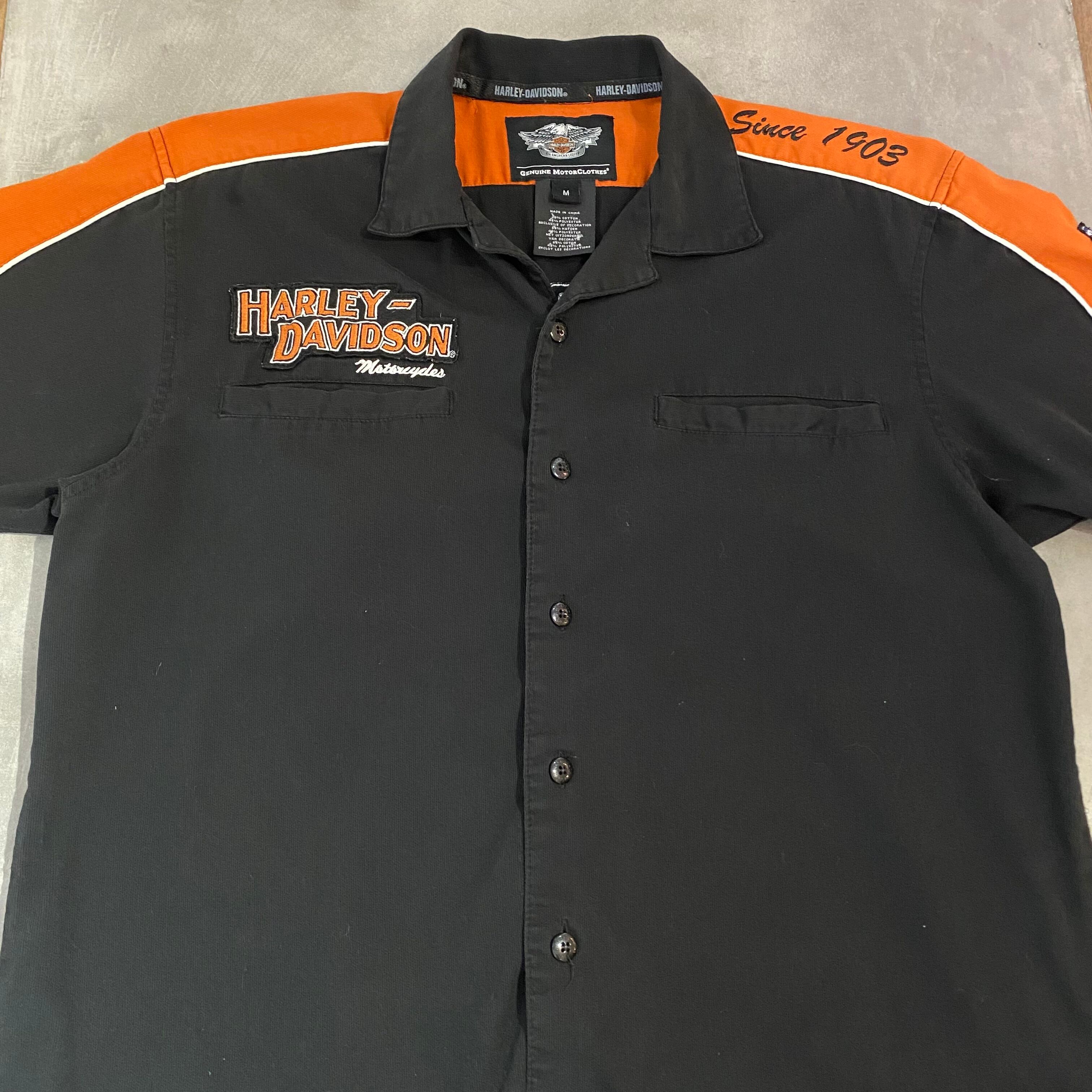 黒×オレンジのツートーンが目を引く、ハーレー・ダビッドソンのシャツ。
