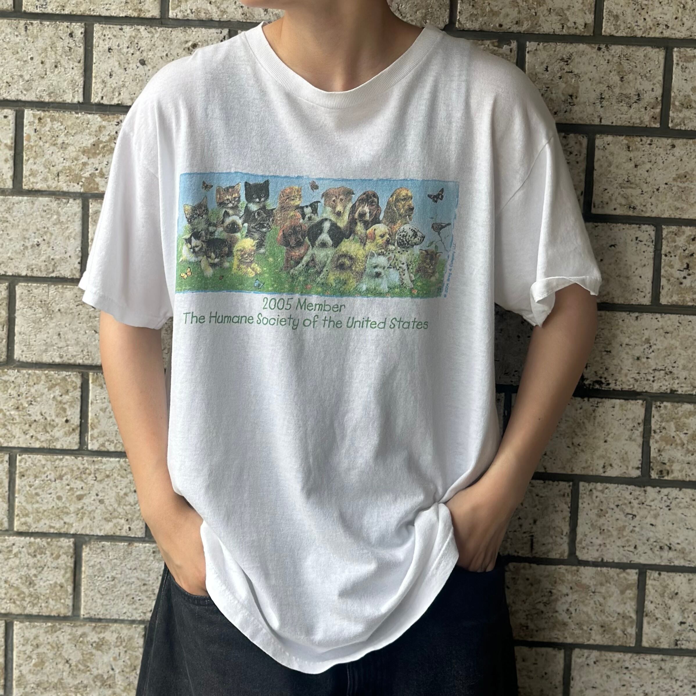 “全員集合!!◎” OLD Animal Print T-shirt (White)”size L程度” オールドプリント Tシャツ アニマル 古着 古着屋 郡山
