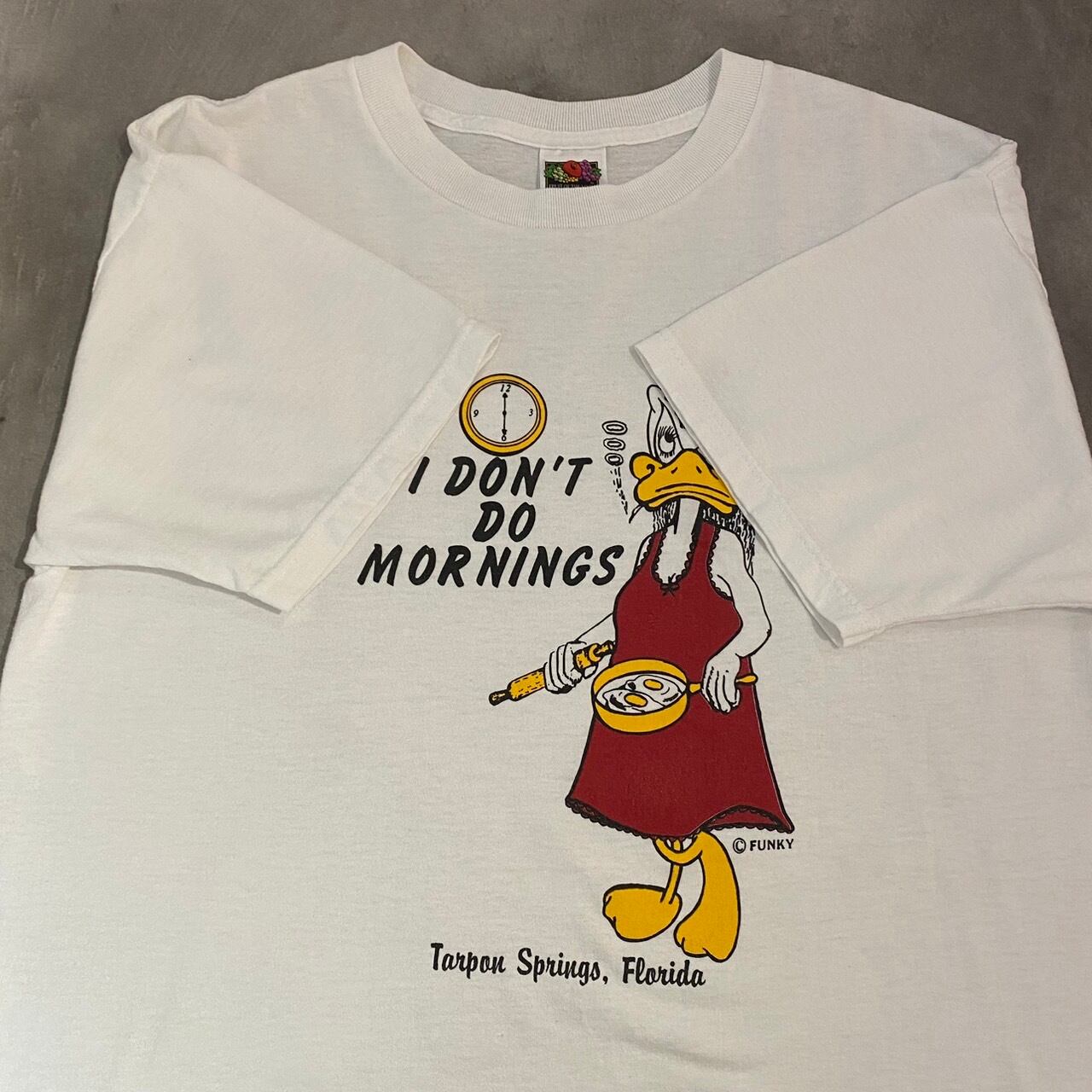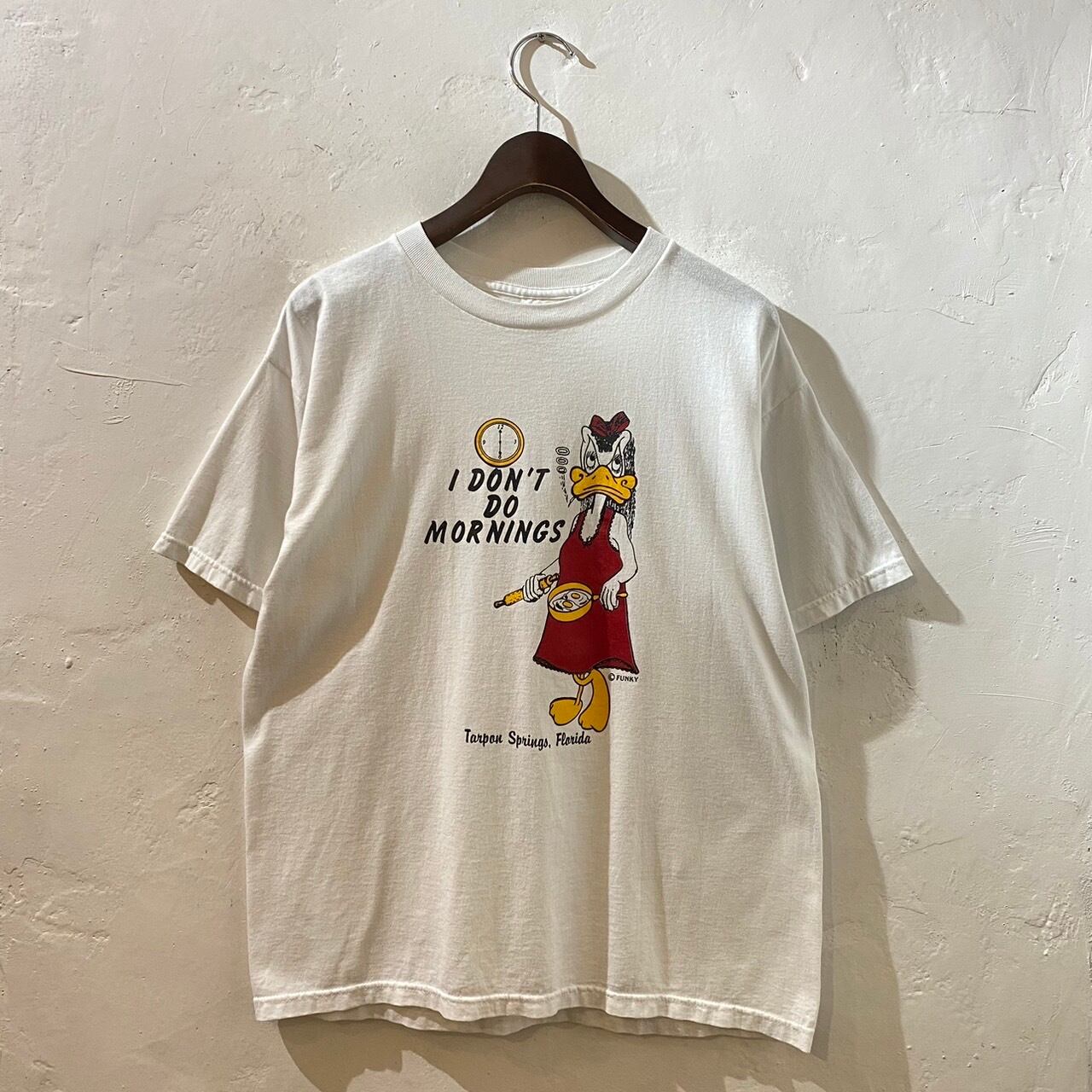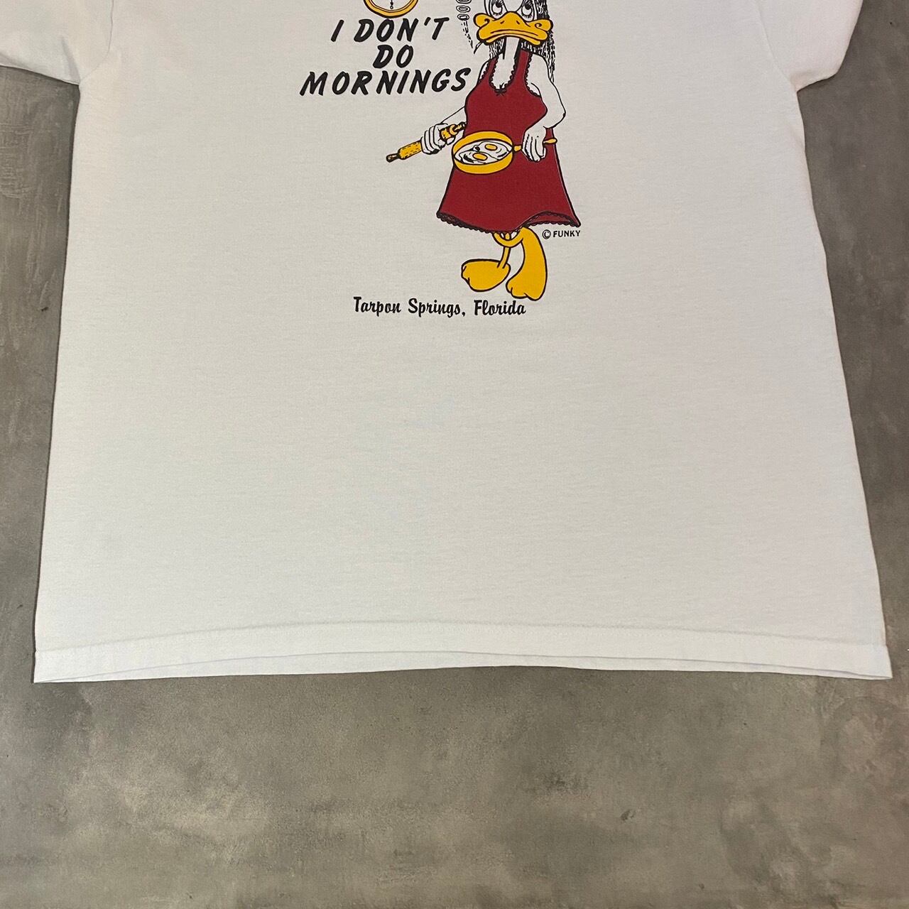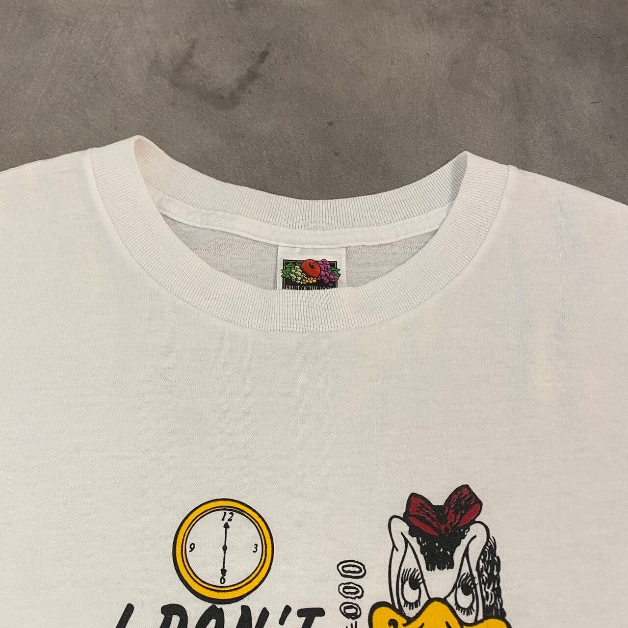 ”朝に弱い方へ…” Old Graphic Tee size:L (White) アヒルTee アニマルTee アメリカ アメカジ ストリート テック シティ 古着屋