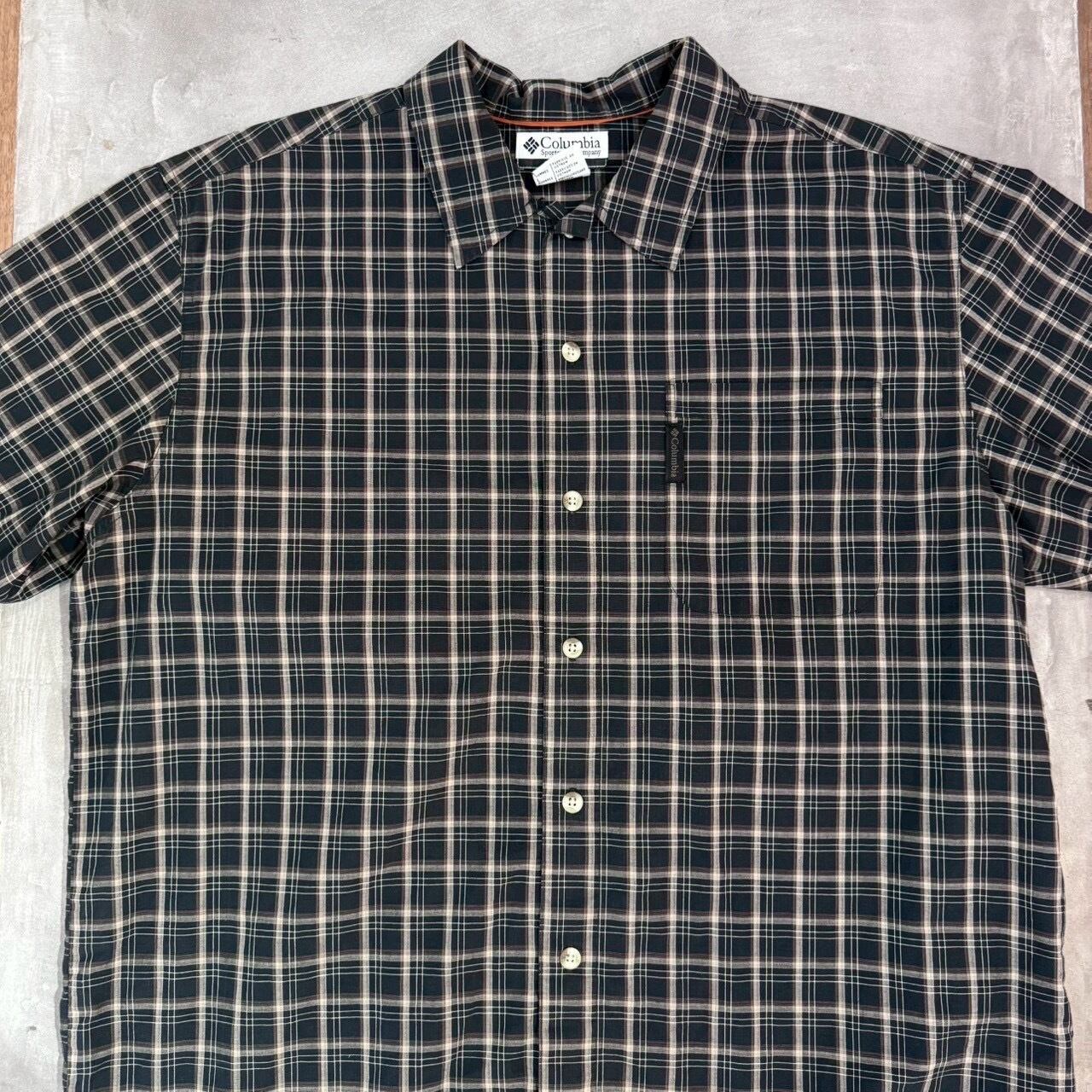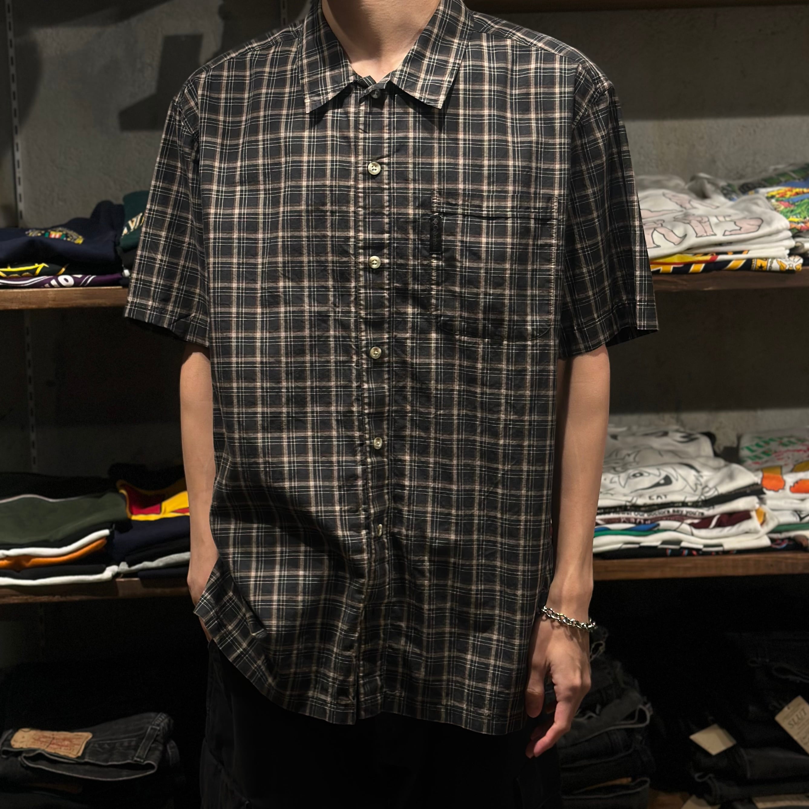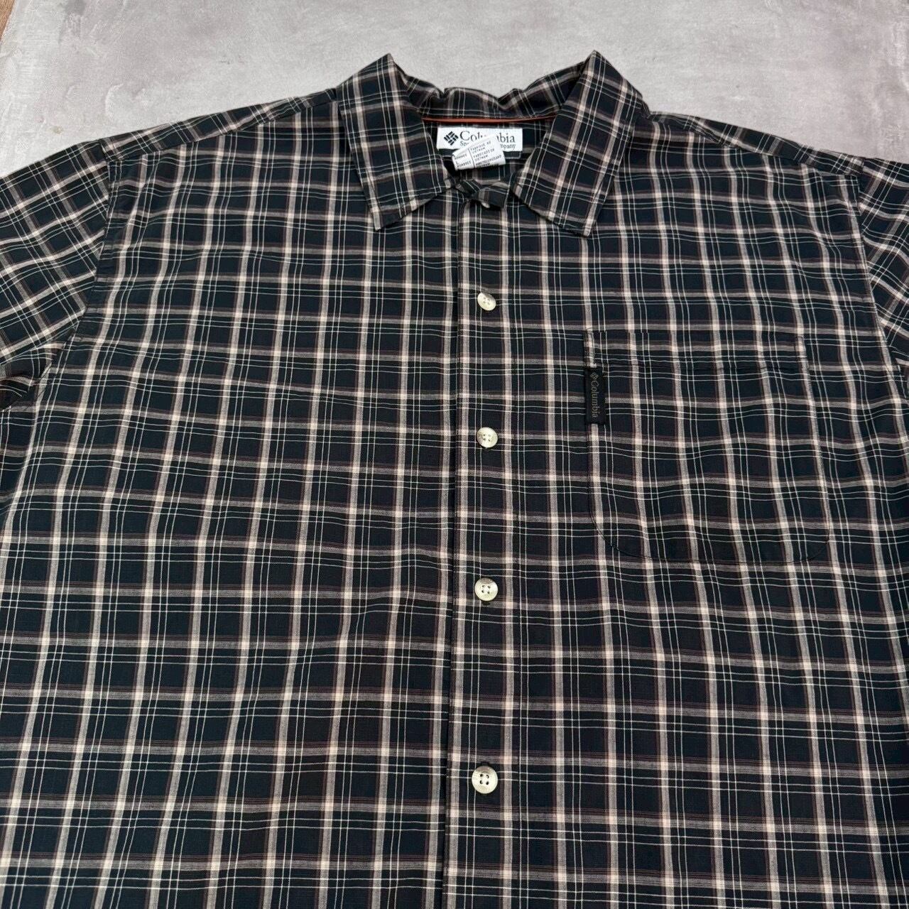 "ダーク系◎" Colombia S/S Check Shirt "Black×Brown" (size L) コロンビア チェックシャツ 古着 古着屋 郡山