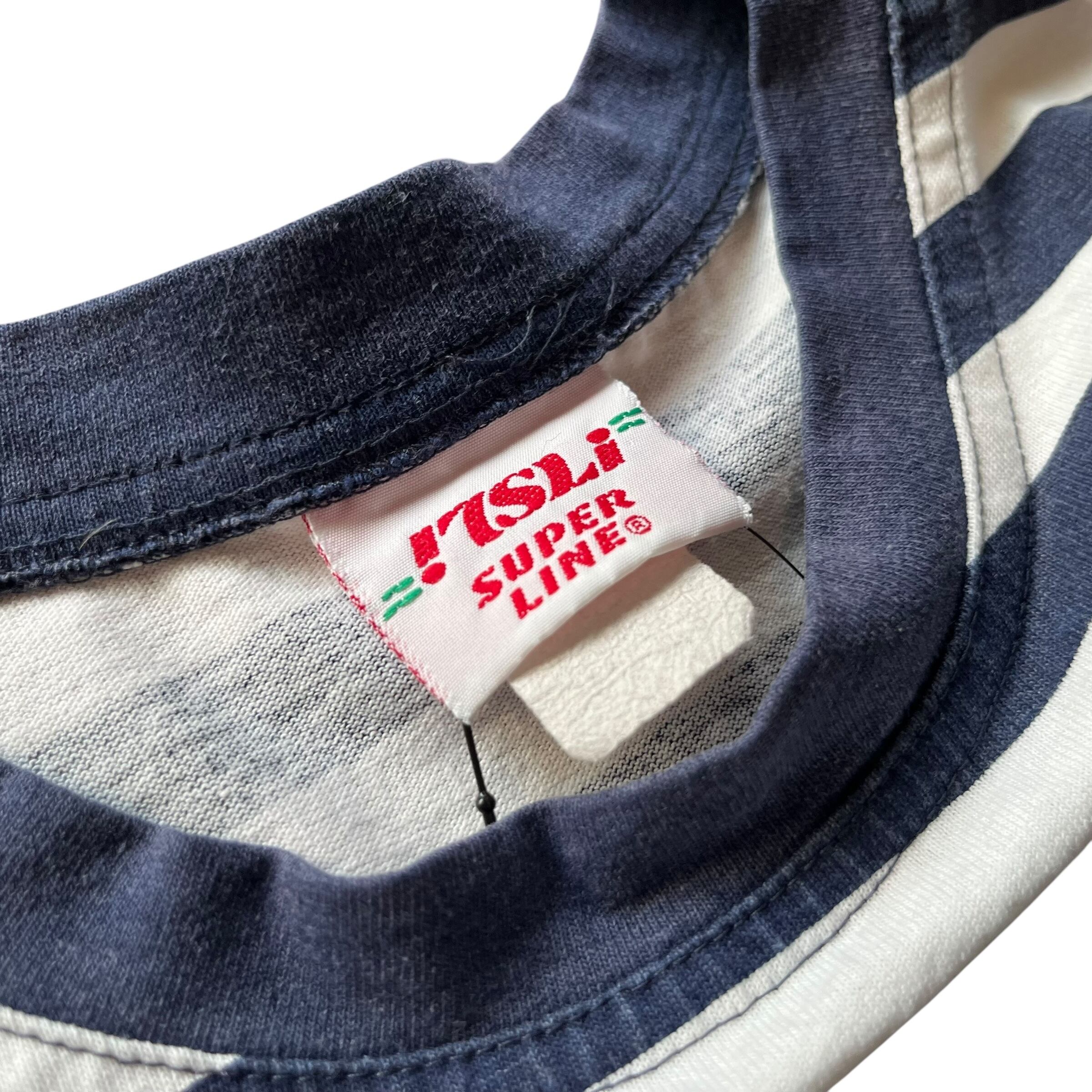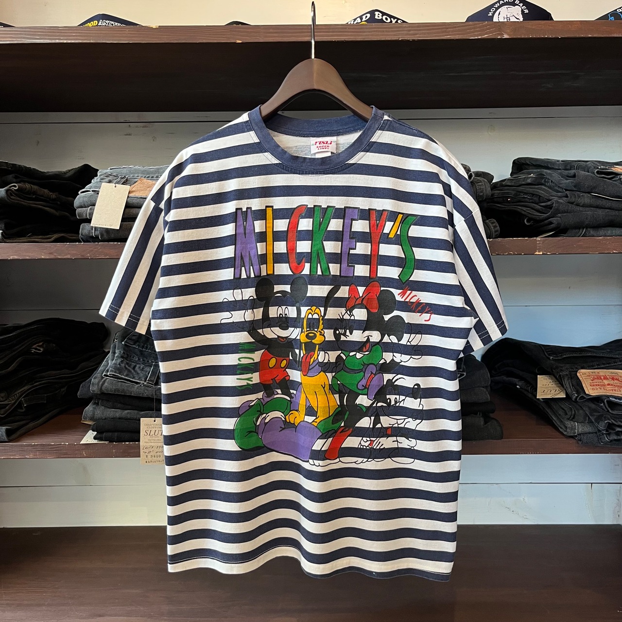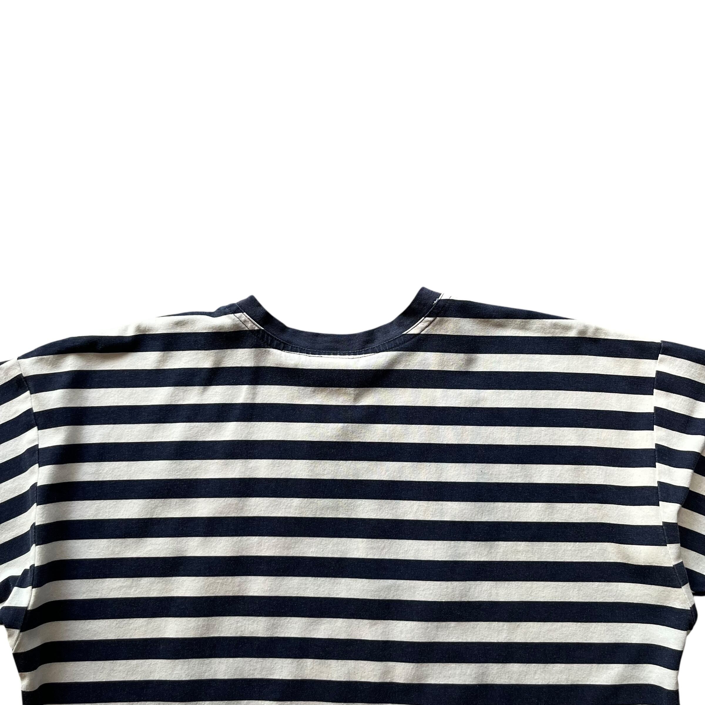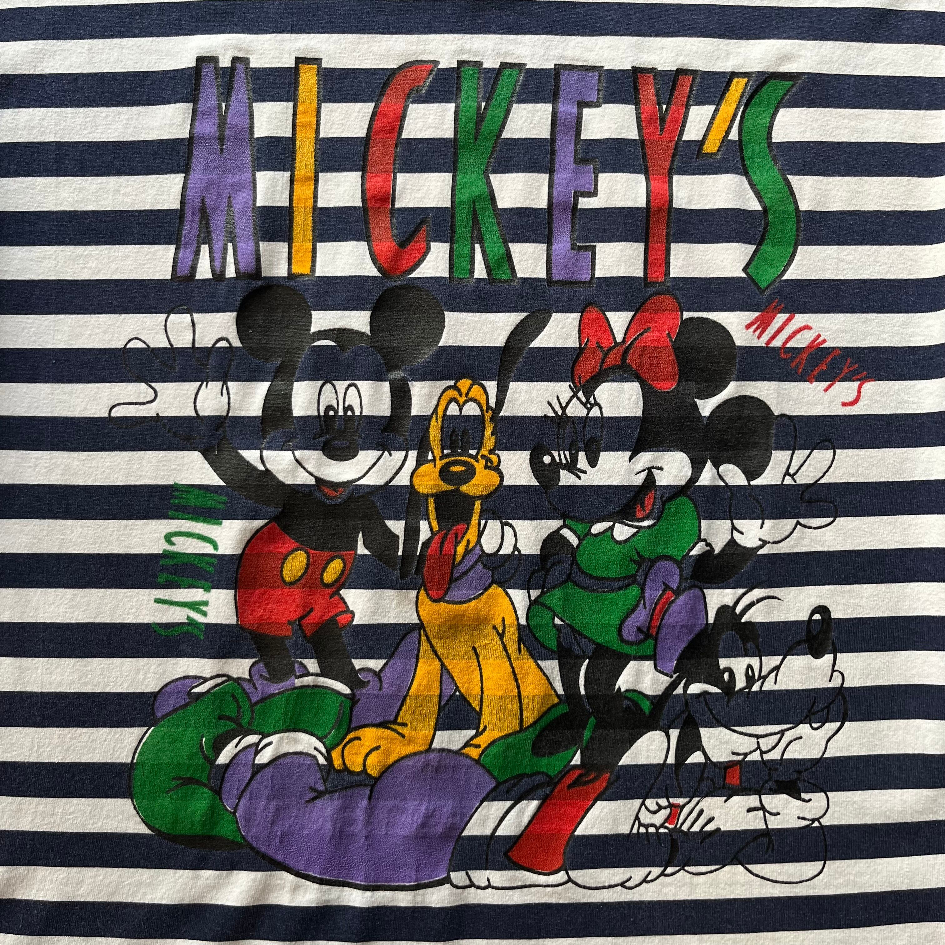 " ボーダー! " 90's〜 Old Mickey's Striped Pattern Tee Made in U.S.A. Size : About L ( White × Navy ) オールドディズニー ミッキー ミニー グーフィ プルート ディズニーランド Tシャツ 古着