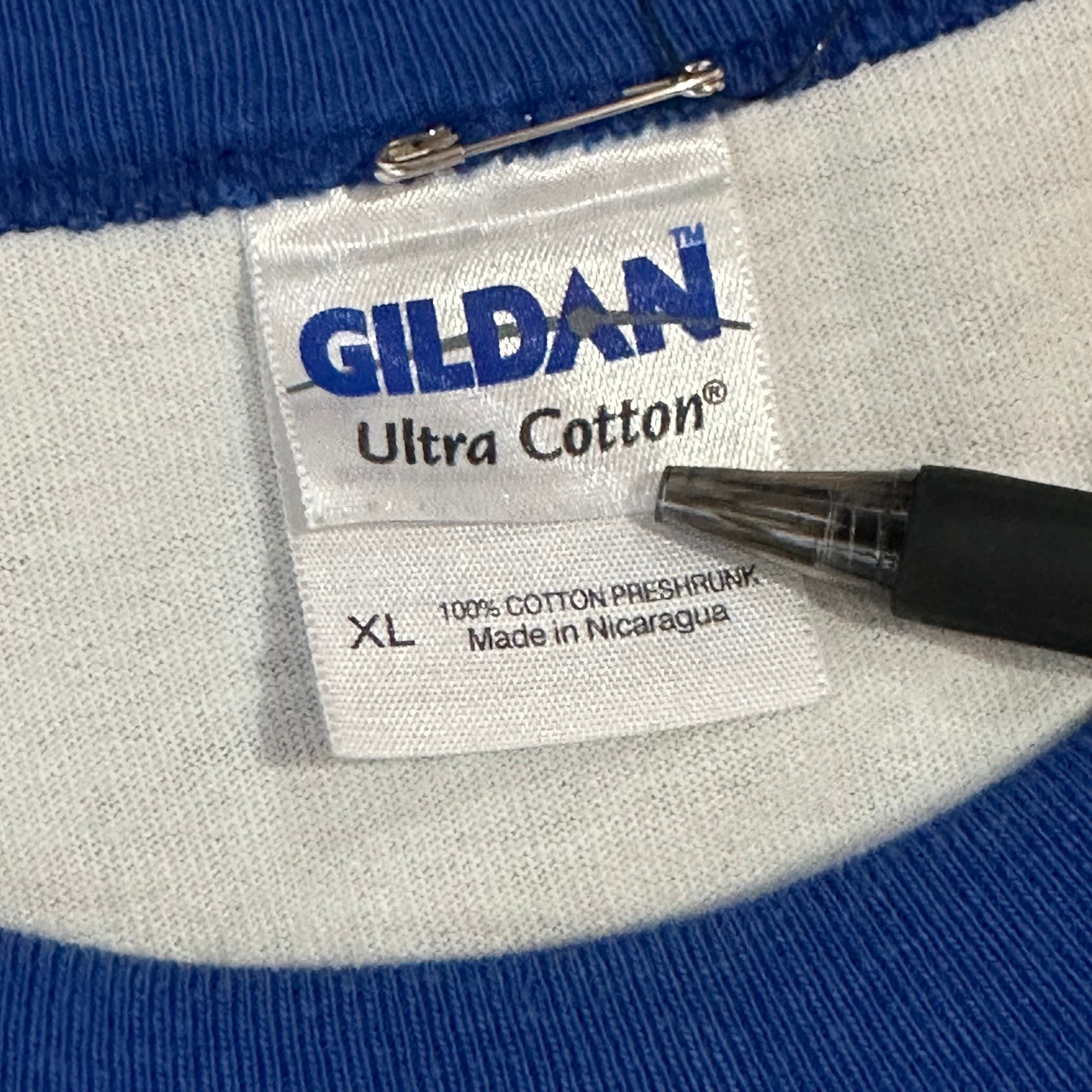GILDAN Ringer T-shirt (White×Blue) size:XL リンガーTシャツ TEE ストリート 古着屋