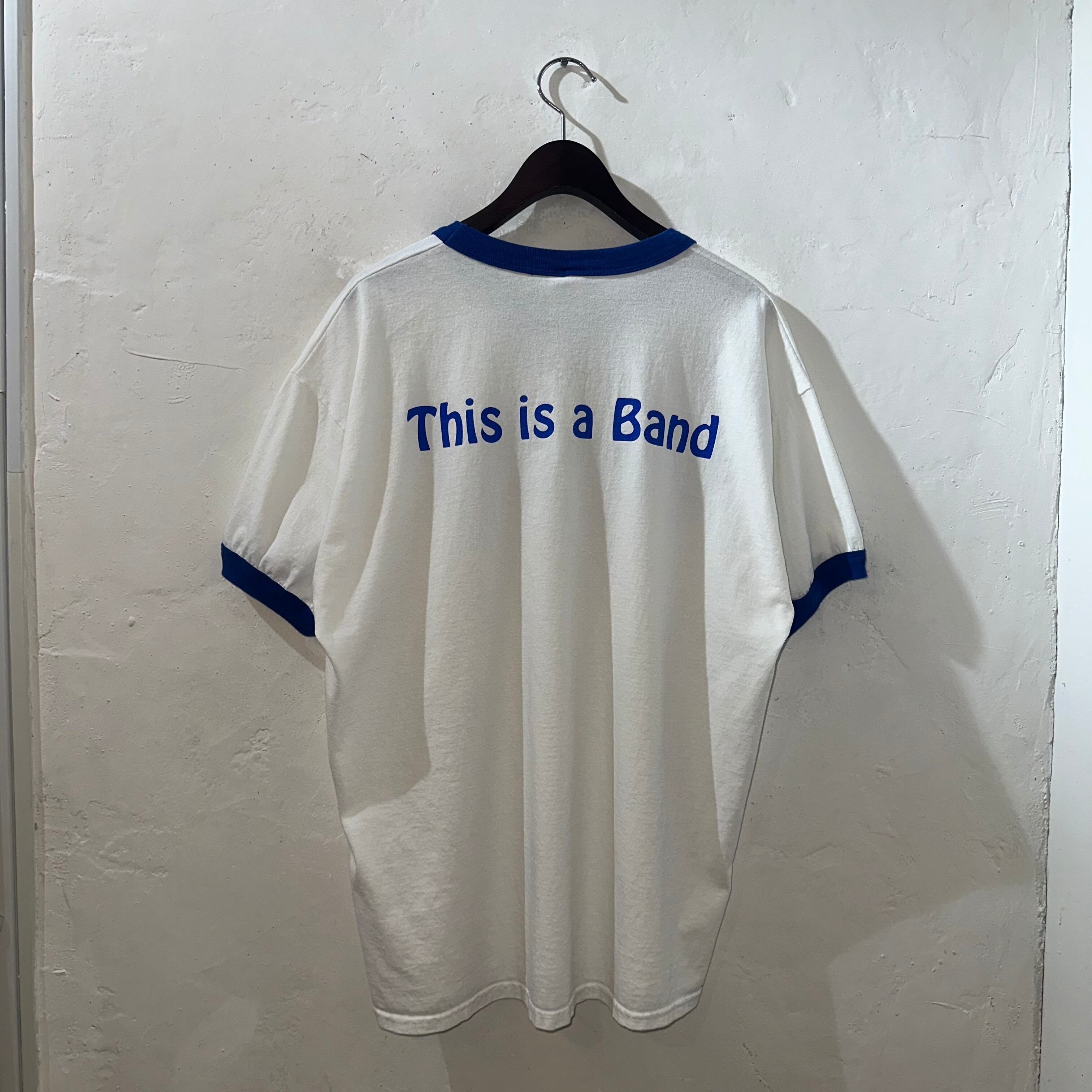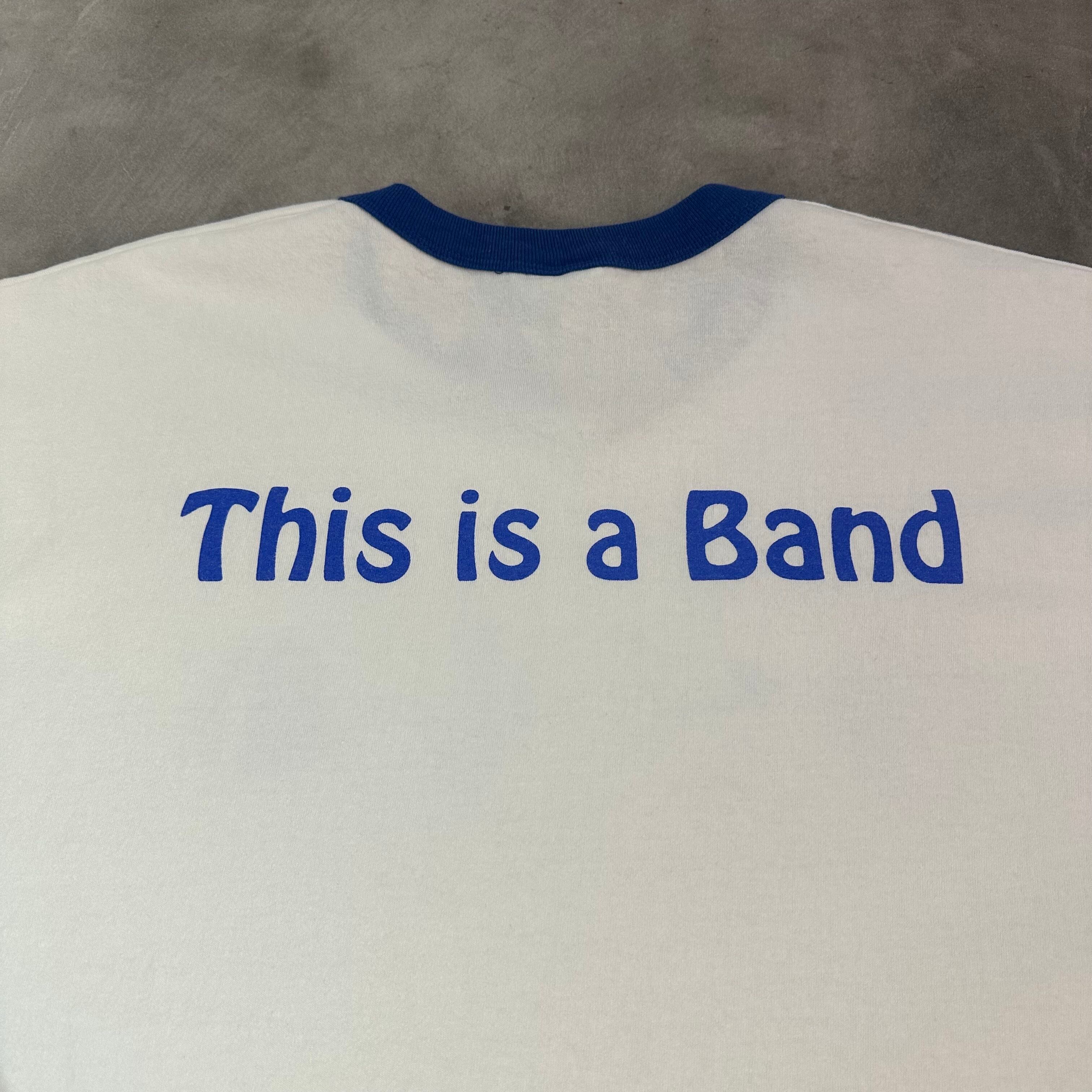 バックにはシンプルに「this is a band」と青文字で描かれ、バンドTeeをパロディしたような遊び心あるデザインが魅力の一枚です。