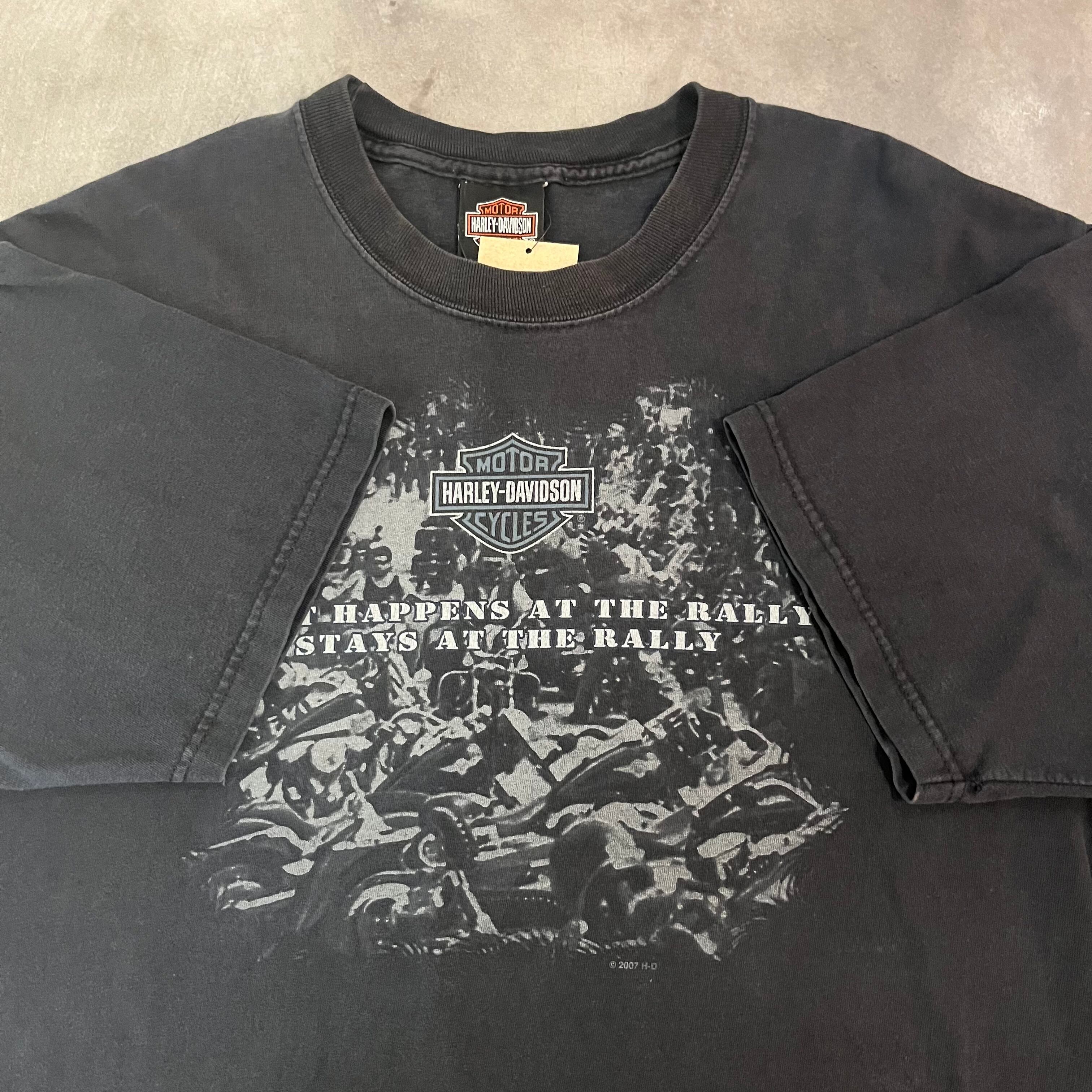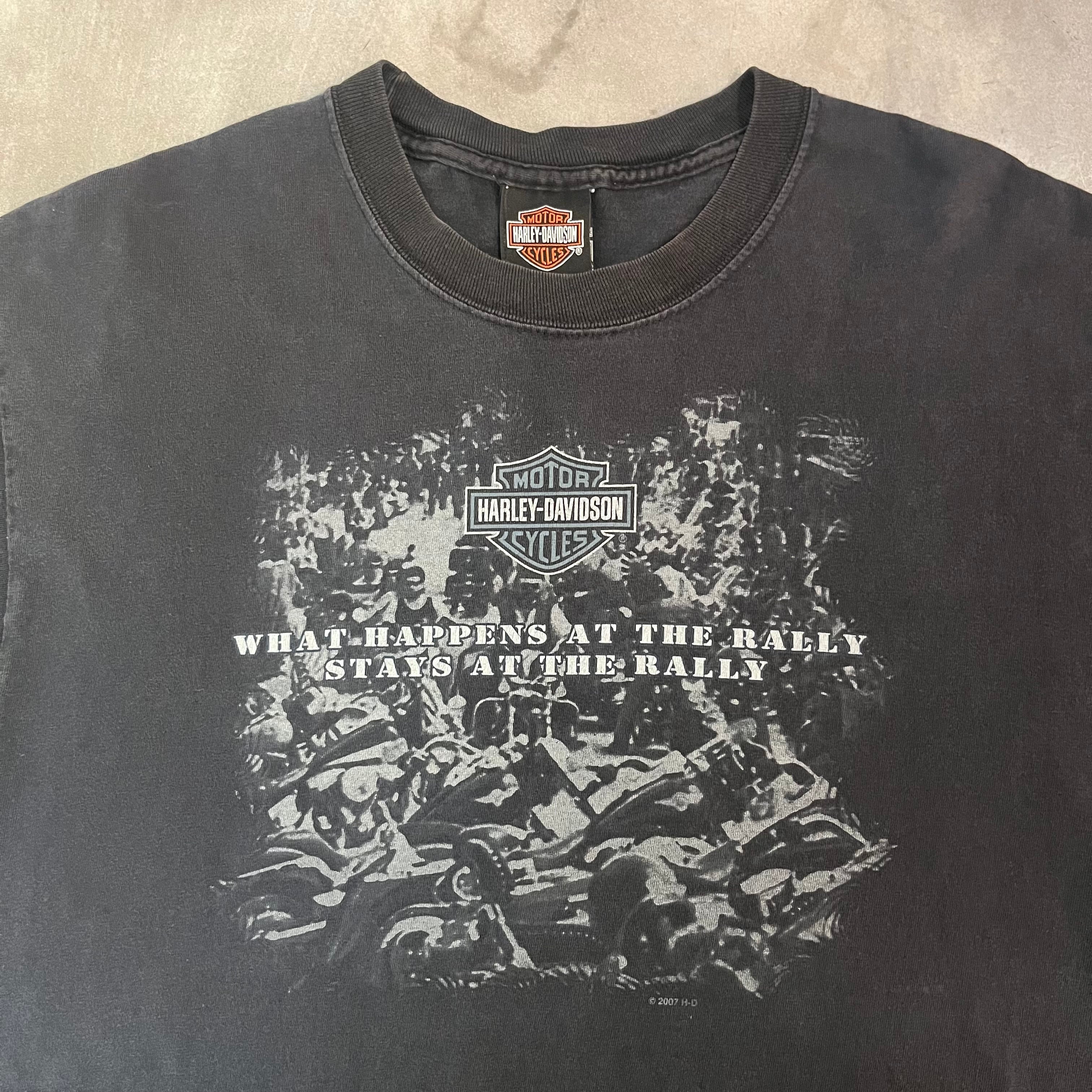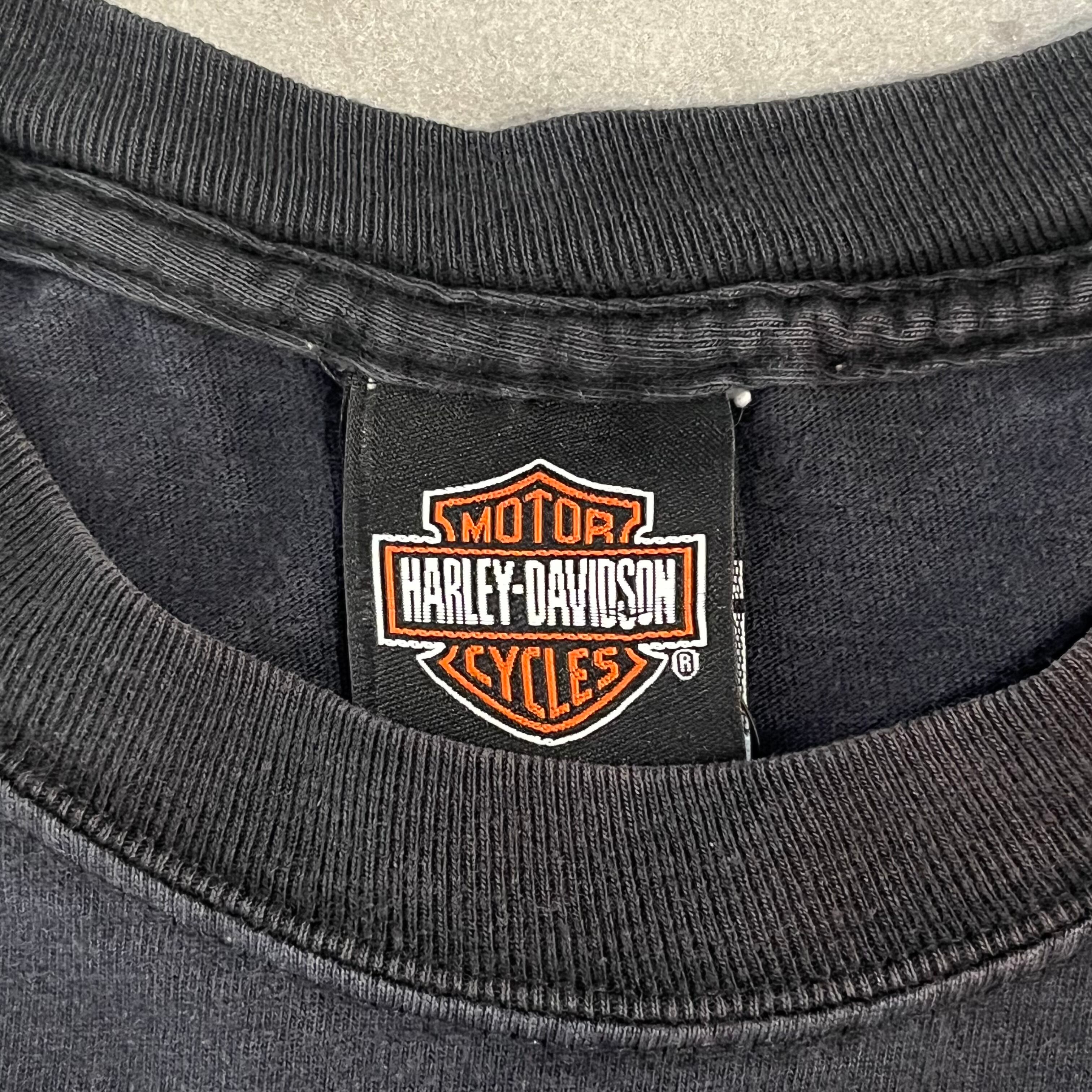 ”珍しいフォト◎”Harley-Davidson Tee size:L程度 (BLACK) ハーレーダビッドソン ハーレーT アメリカ アメカジ ストリート テック シティ 古着屋
