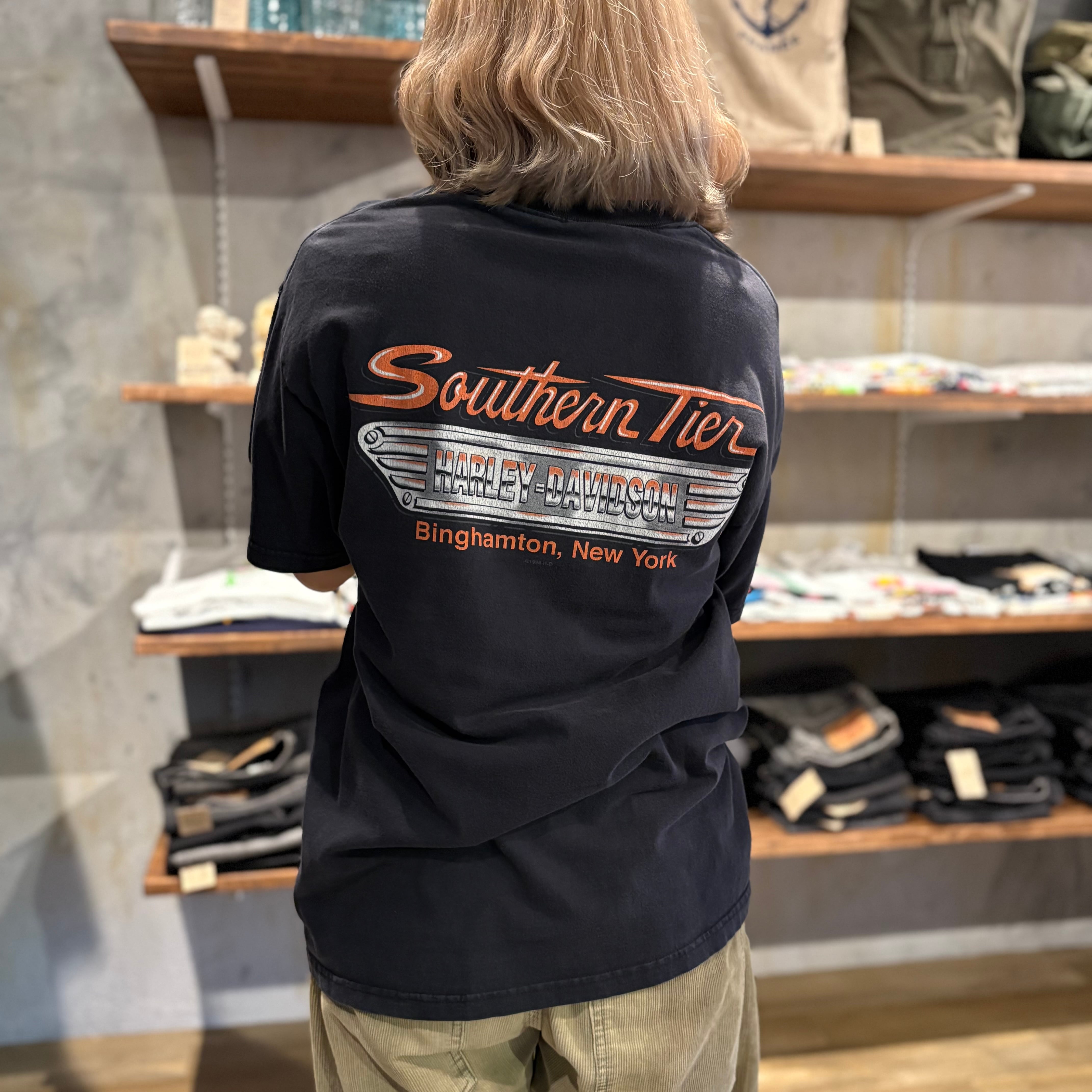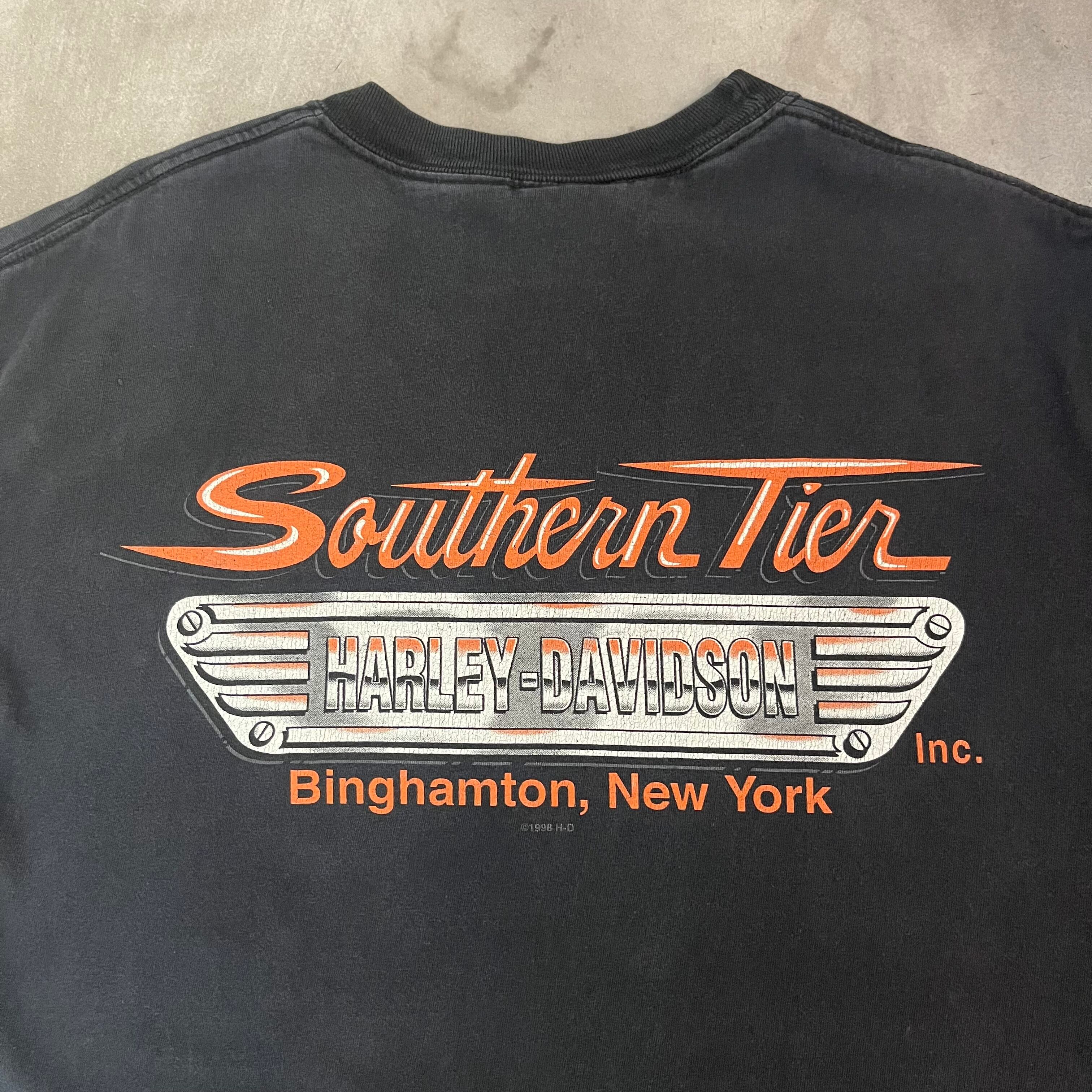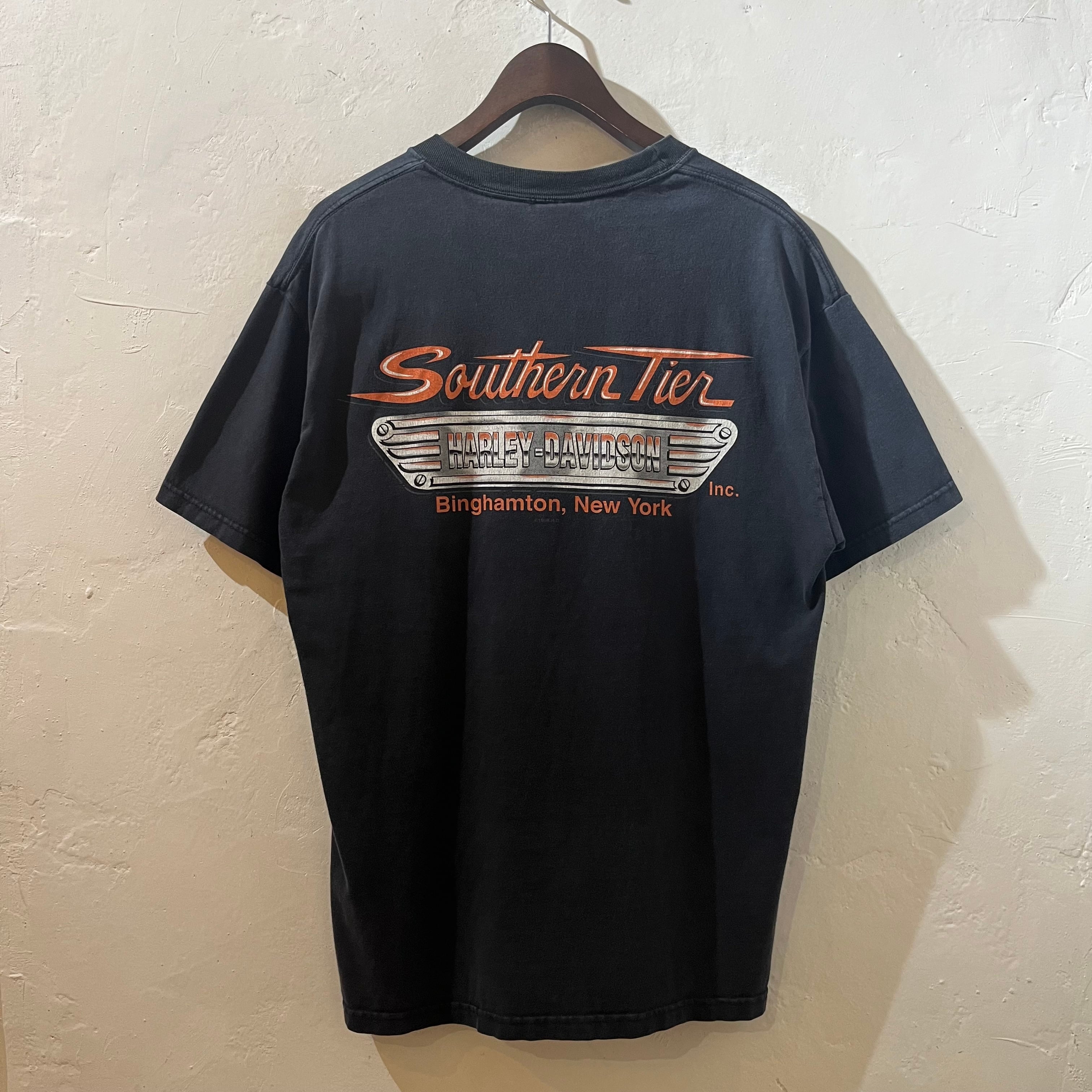 ”珍しいフォト◎”Harley-Davidson Tee size:L程度 (BLACK) ハーレーダビッドソン ハーレーT アメリカ アメカジ ストリート テック シティ 古着屋