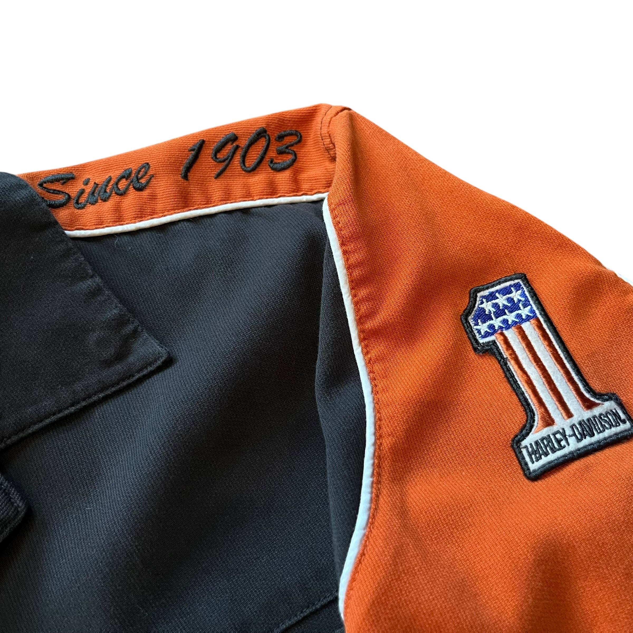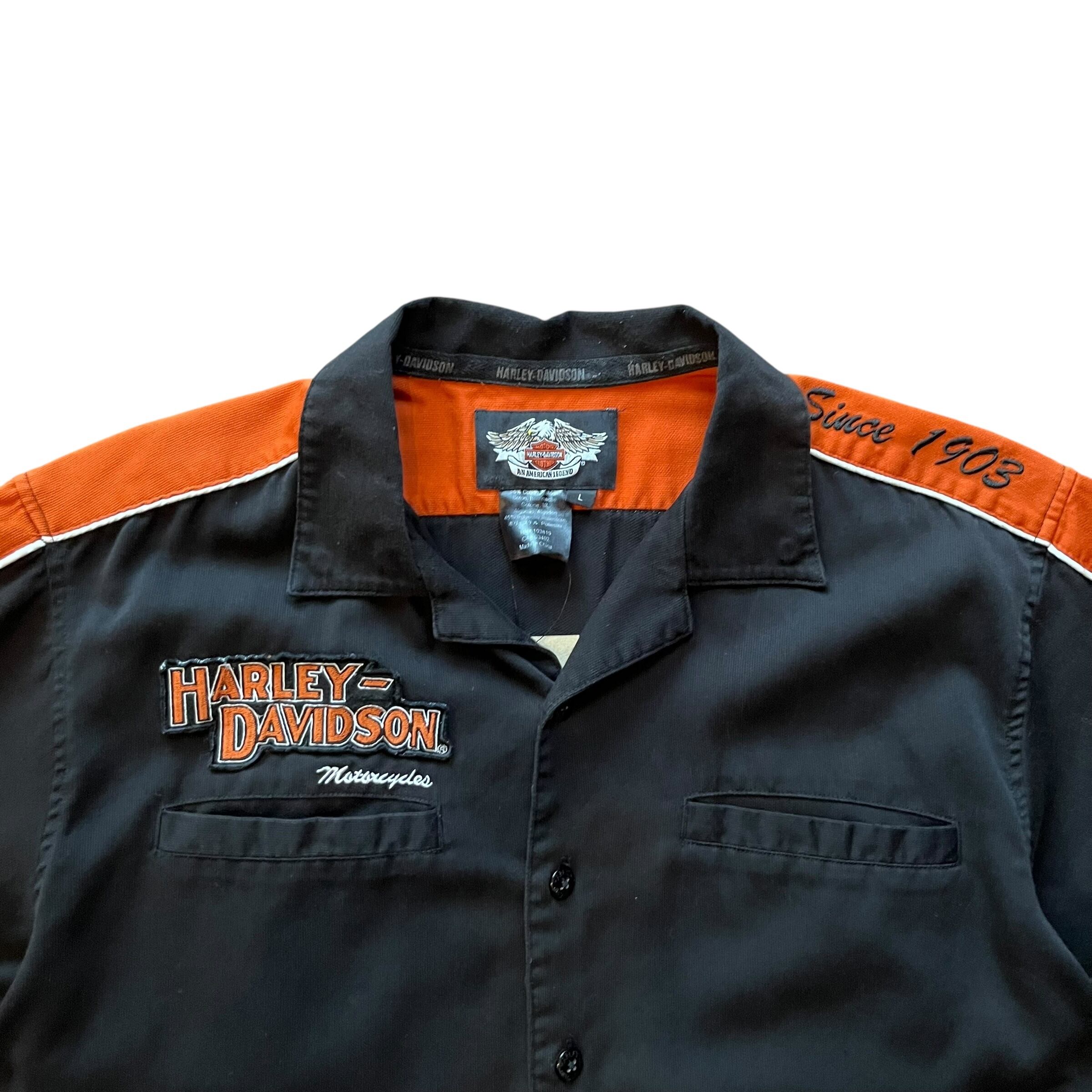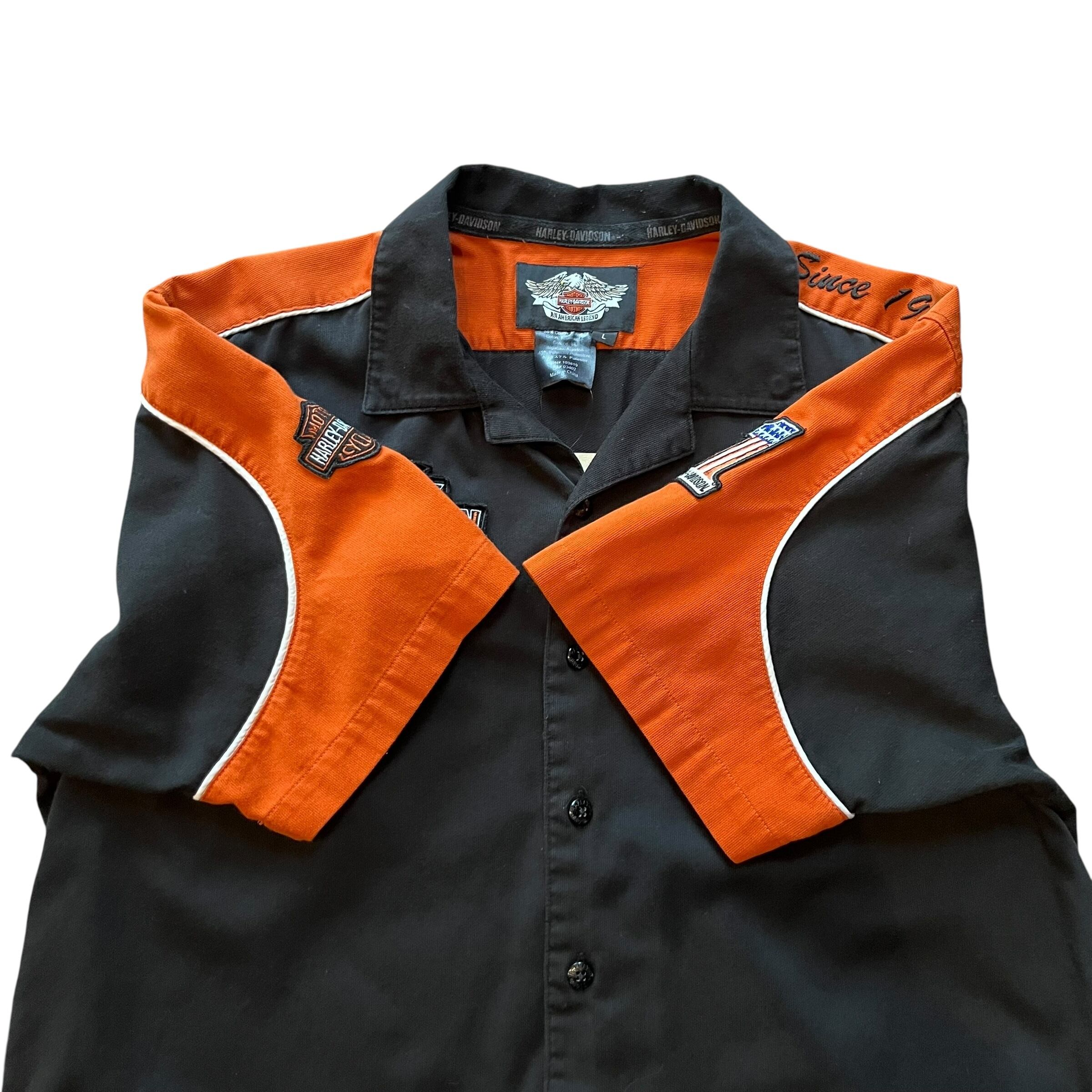 Harley-Davidson Open Collar Shirt Size : XL ( Black × Orange ) ハーレーダビッドソン ハーレーシャツ オープンカラーシャツ 半袖シャツ 開襟シャツ アメカジ 古着