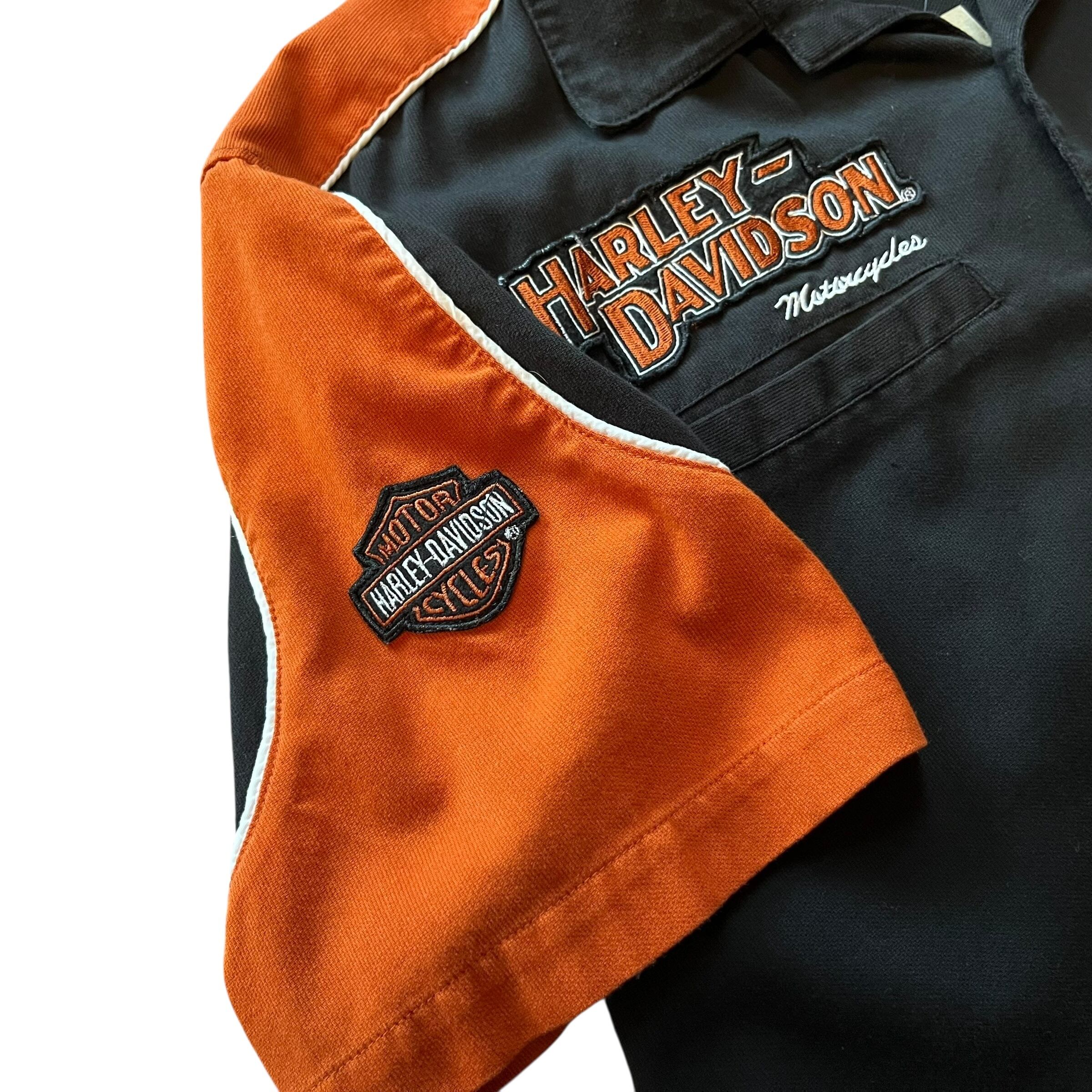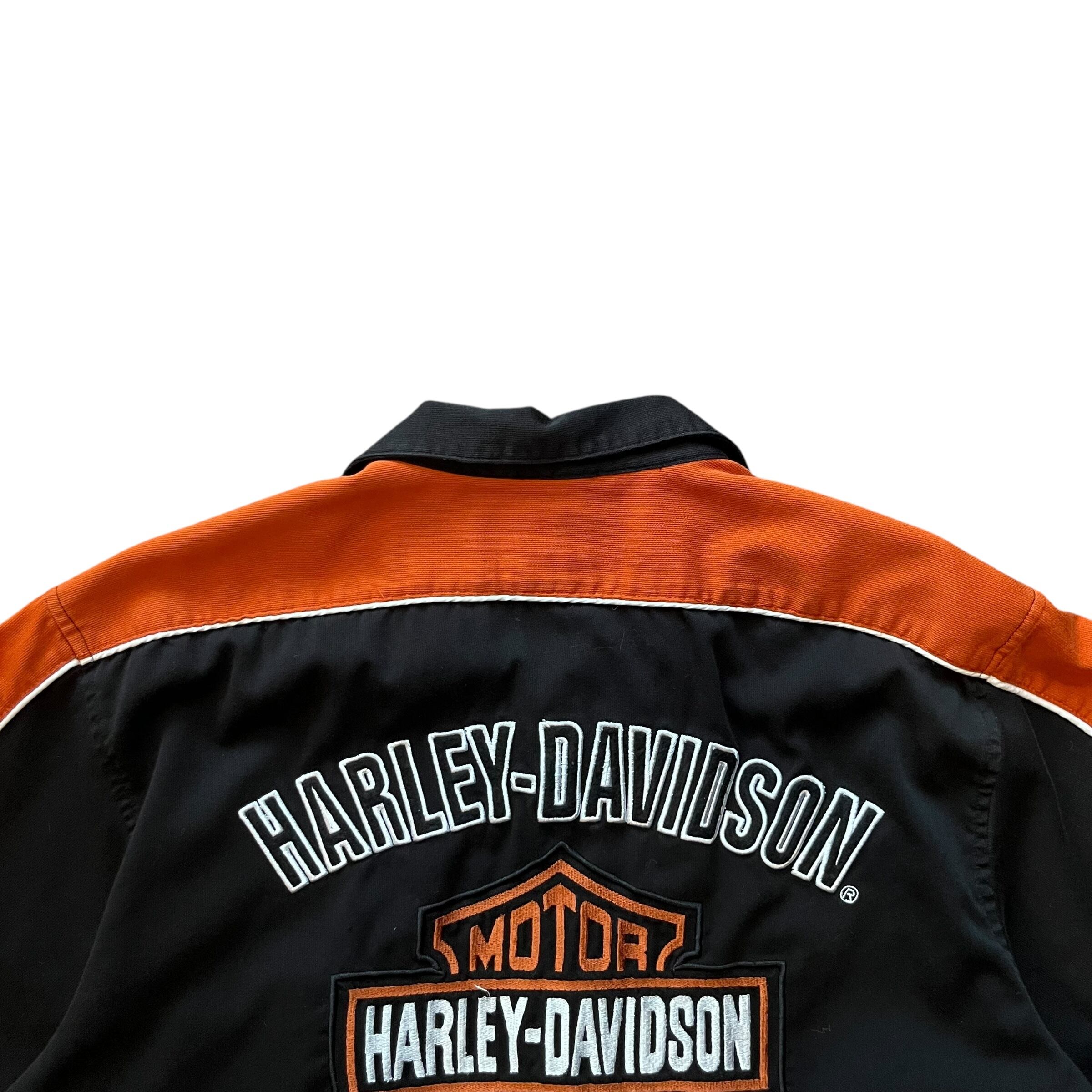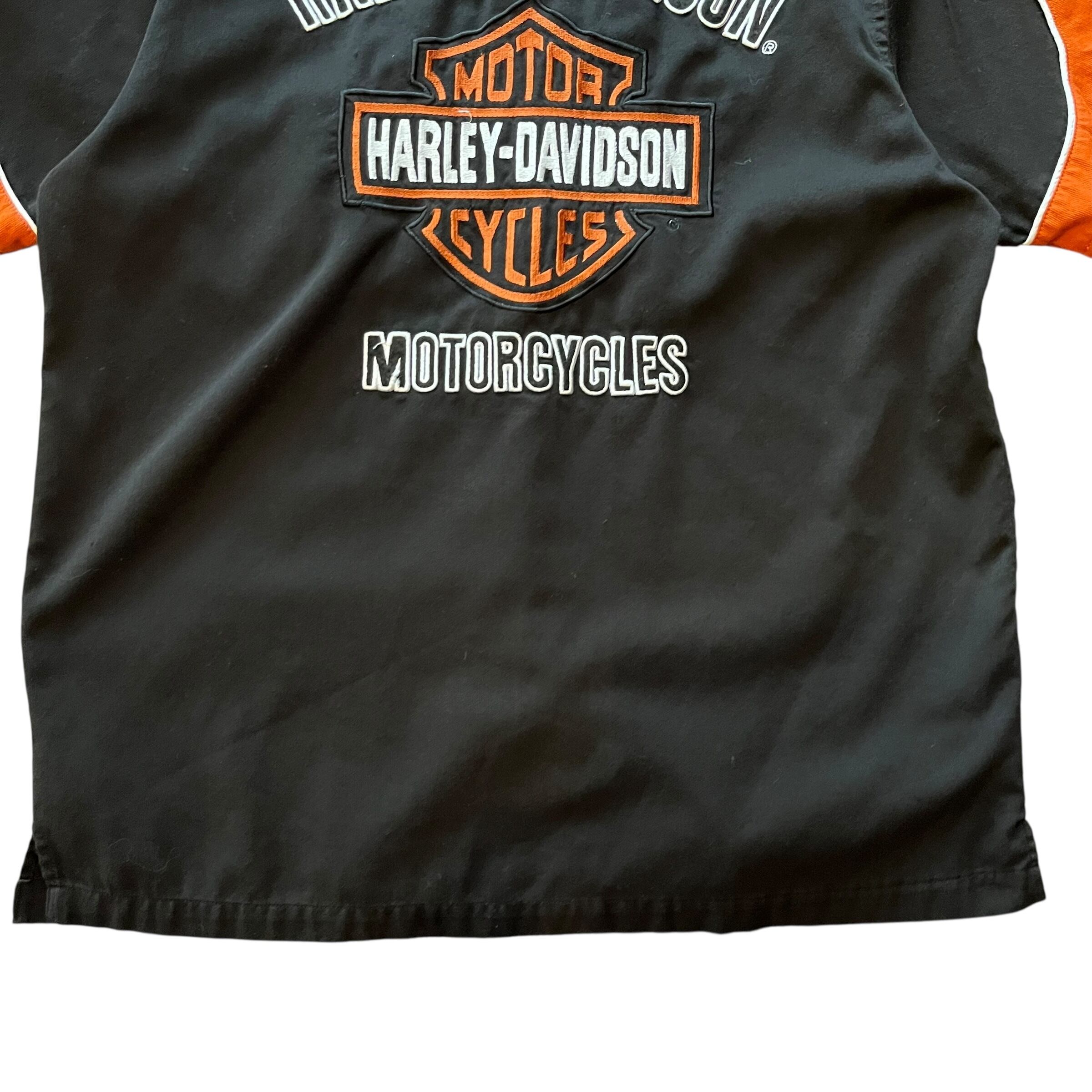 Harley-Davidson Open Collar Shirt Size : XL ( Black × Orange ) ハーレーダビッドソン ハーレーシャツ オープンカラーシャツ 半袖シャツ 開襟シャツ アメカジ 古着