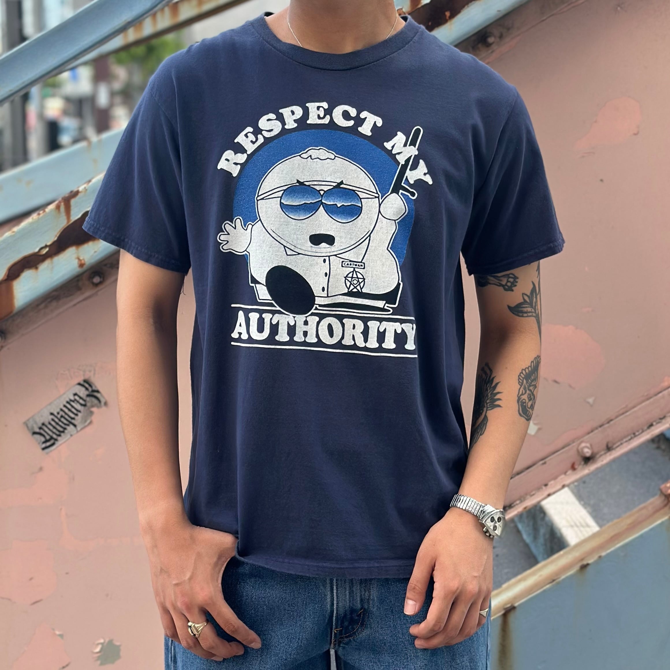 “配色完璧◎” SOUTH PARK Character Print T-shirt (NAVY)”size L” サウスパーク キャラクターTシャツ ネイビー 古着 古着屋 郡山