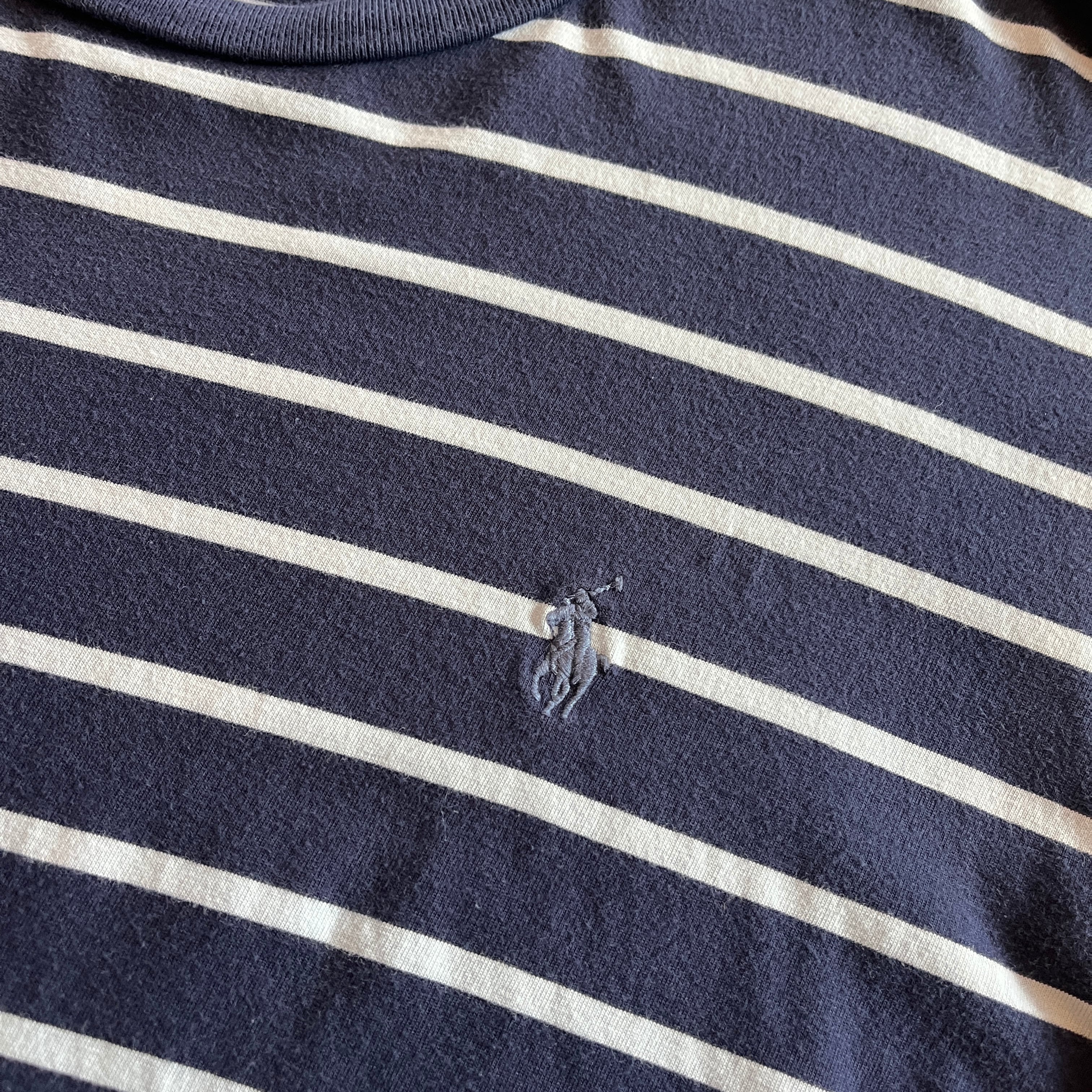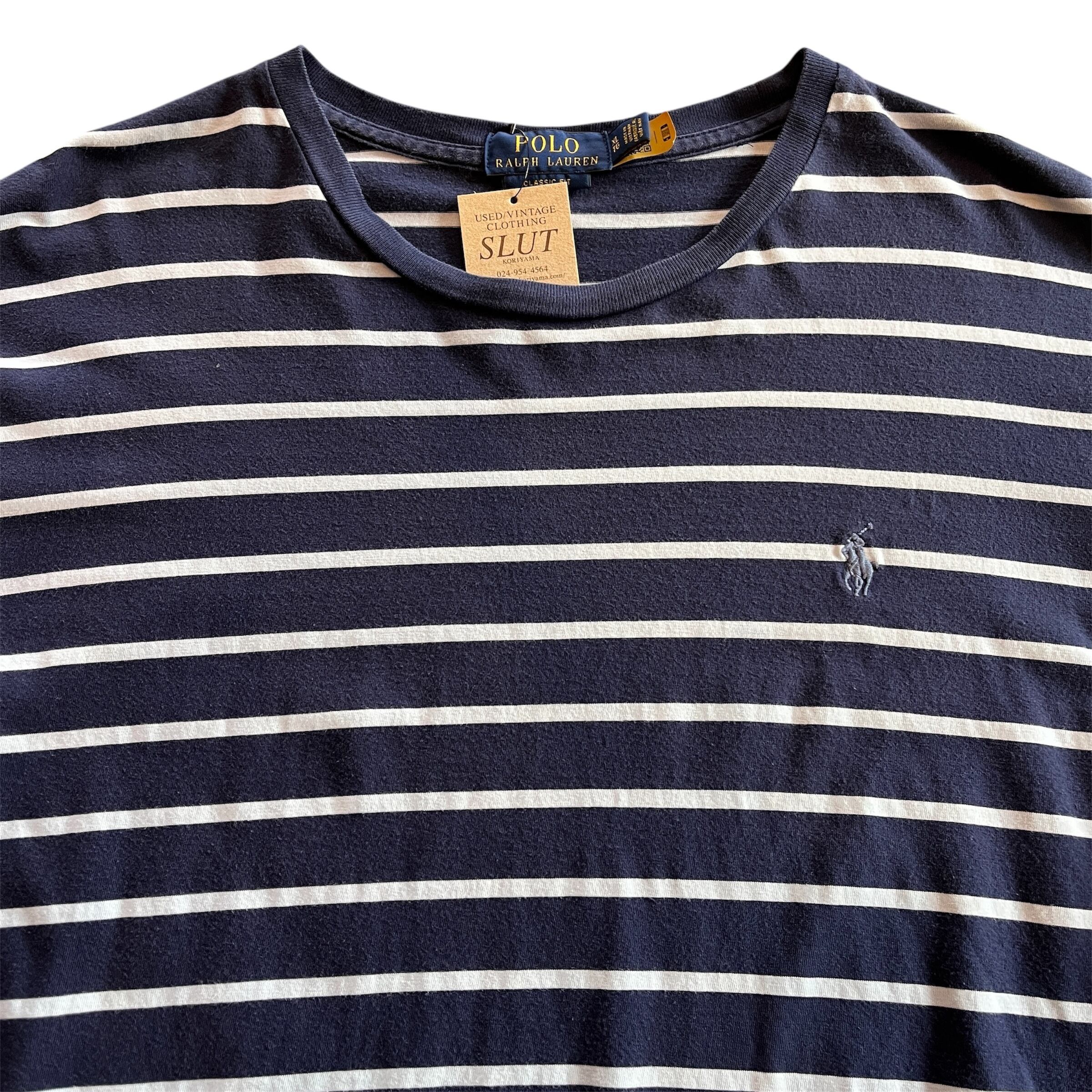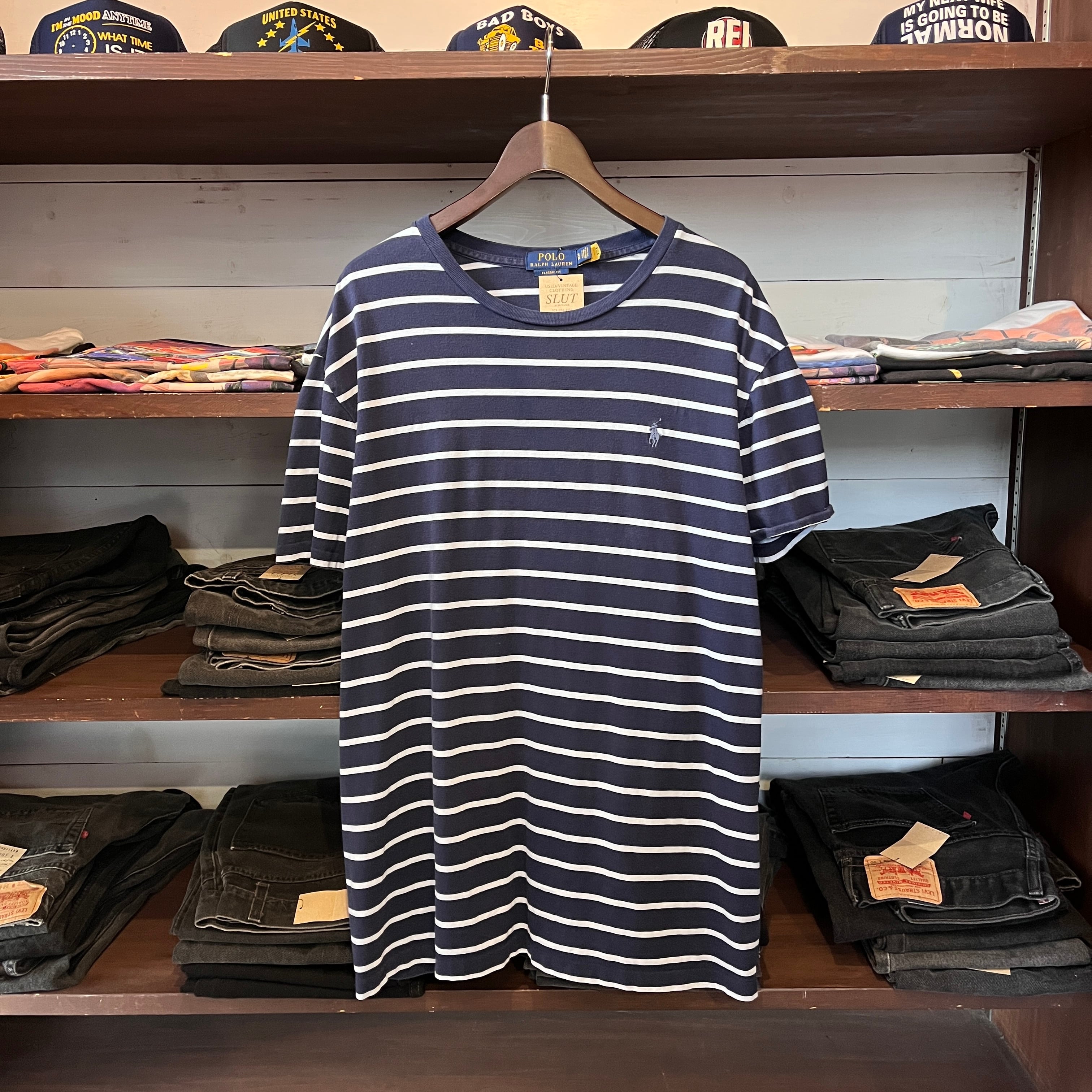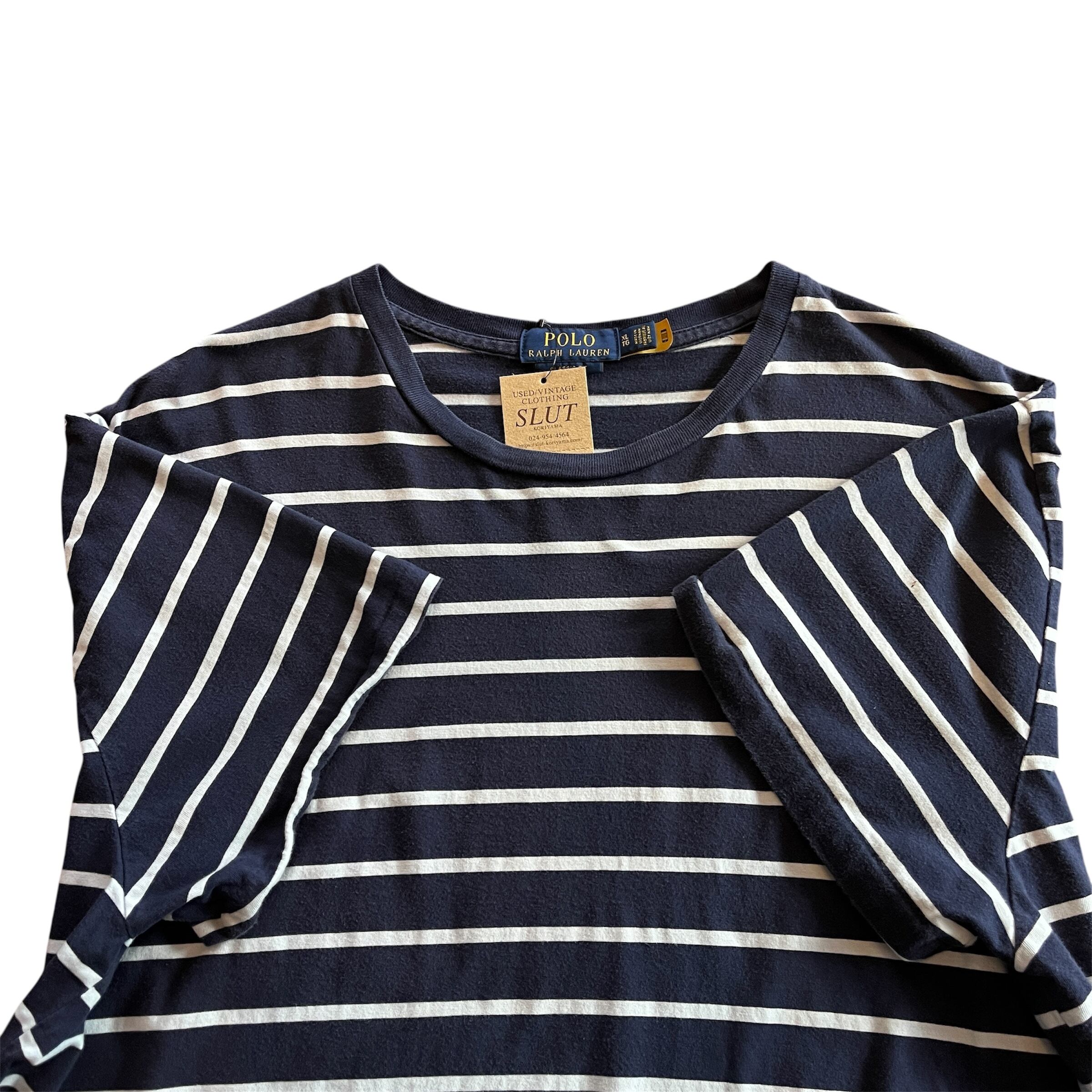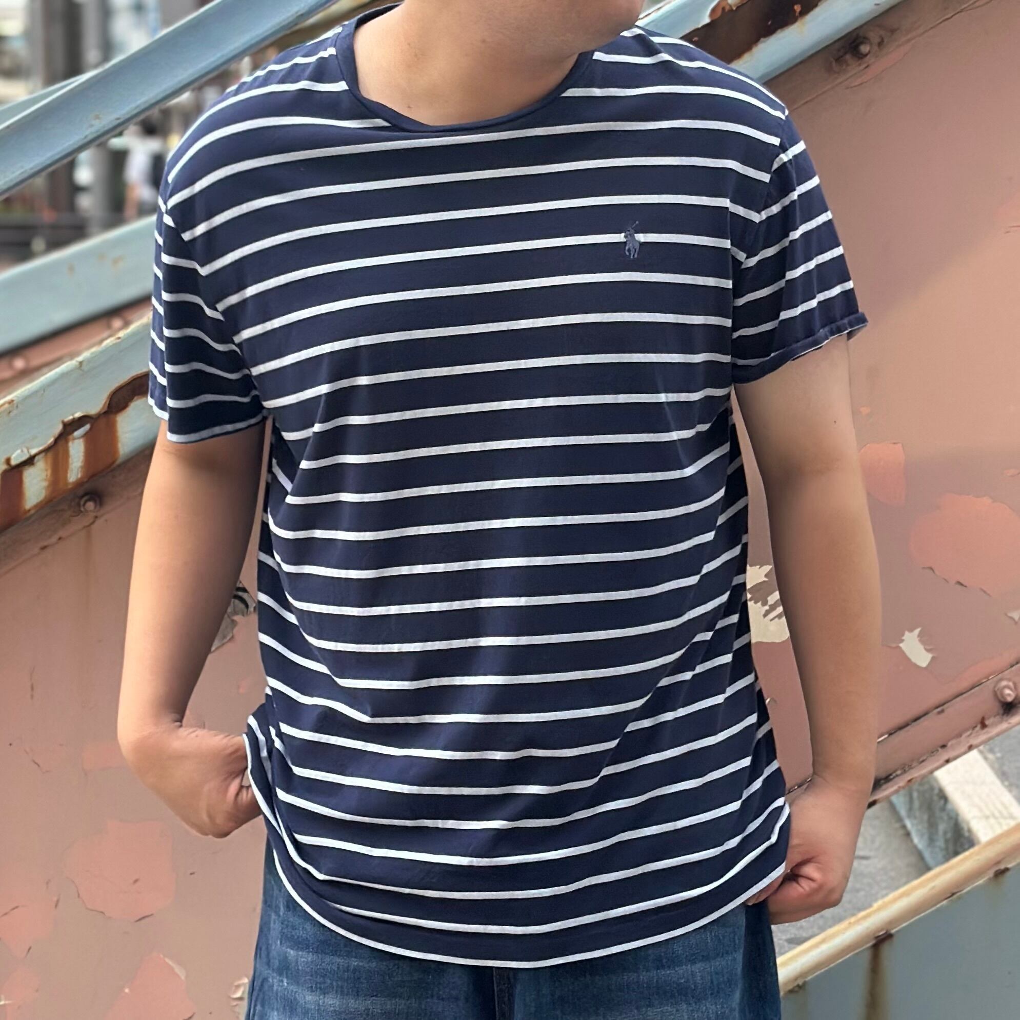 ”クールに★” Polo Ralph Lauren T- Shirt Size:XL (White×NAVY) ラルフローレン ボーダー Tシャツ 古着 古着屋 vintage