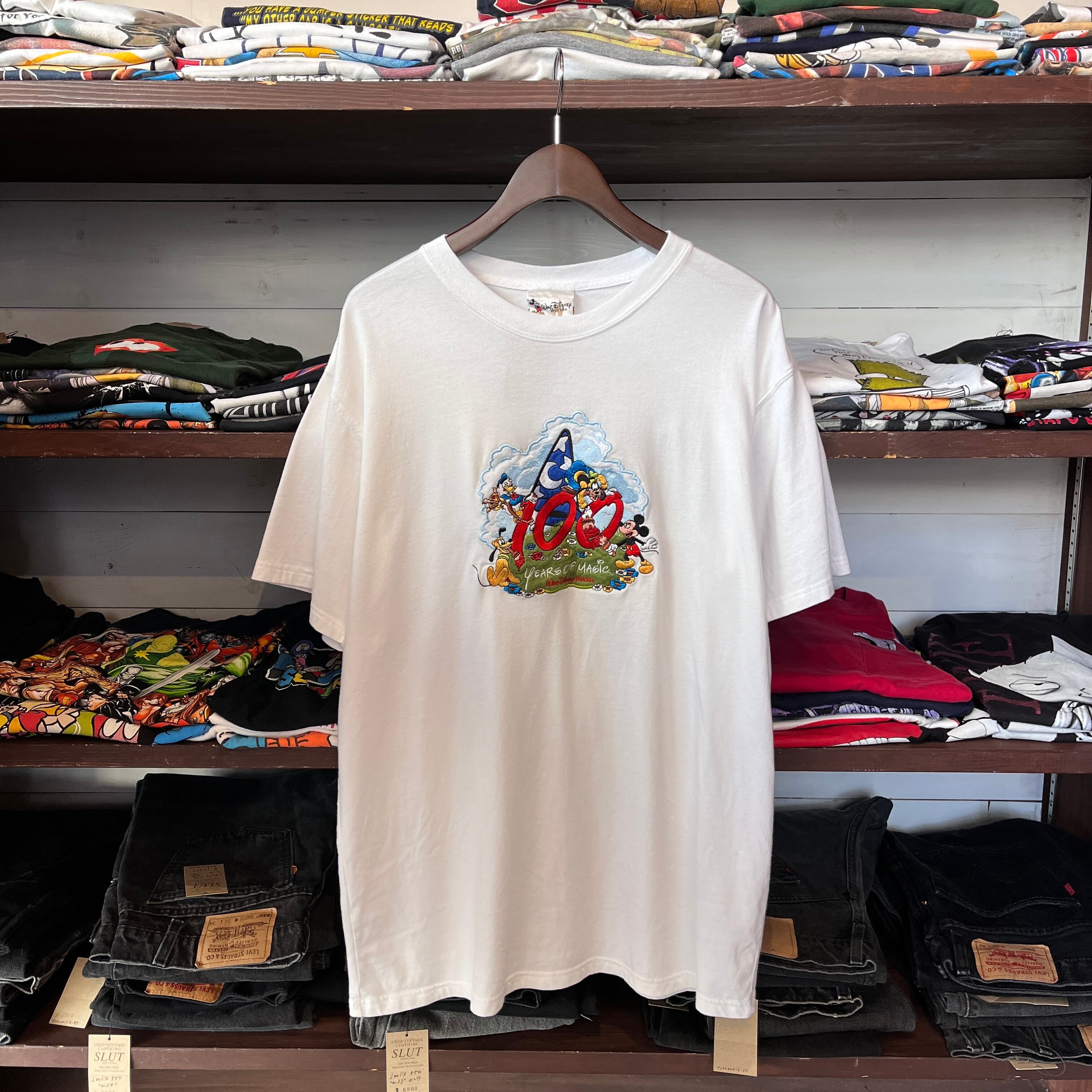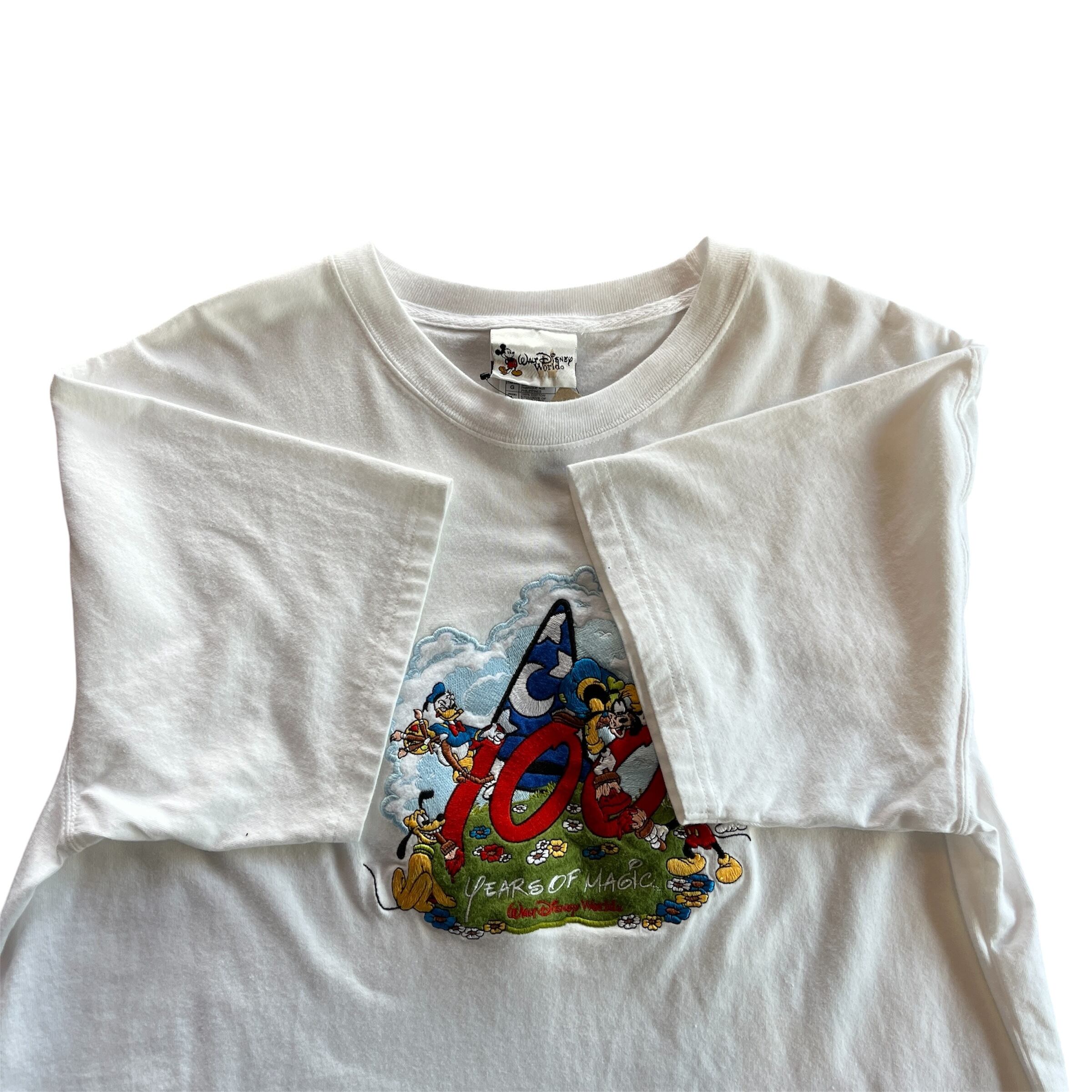 “刺繍がたまらん。” Disney Shisyu T-shirt(White)”size L” ディズニーオフィシャルタグ 刺繍 Tシャツ ホワイト 古着 古着屋 郡山