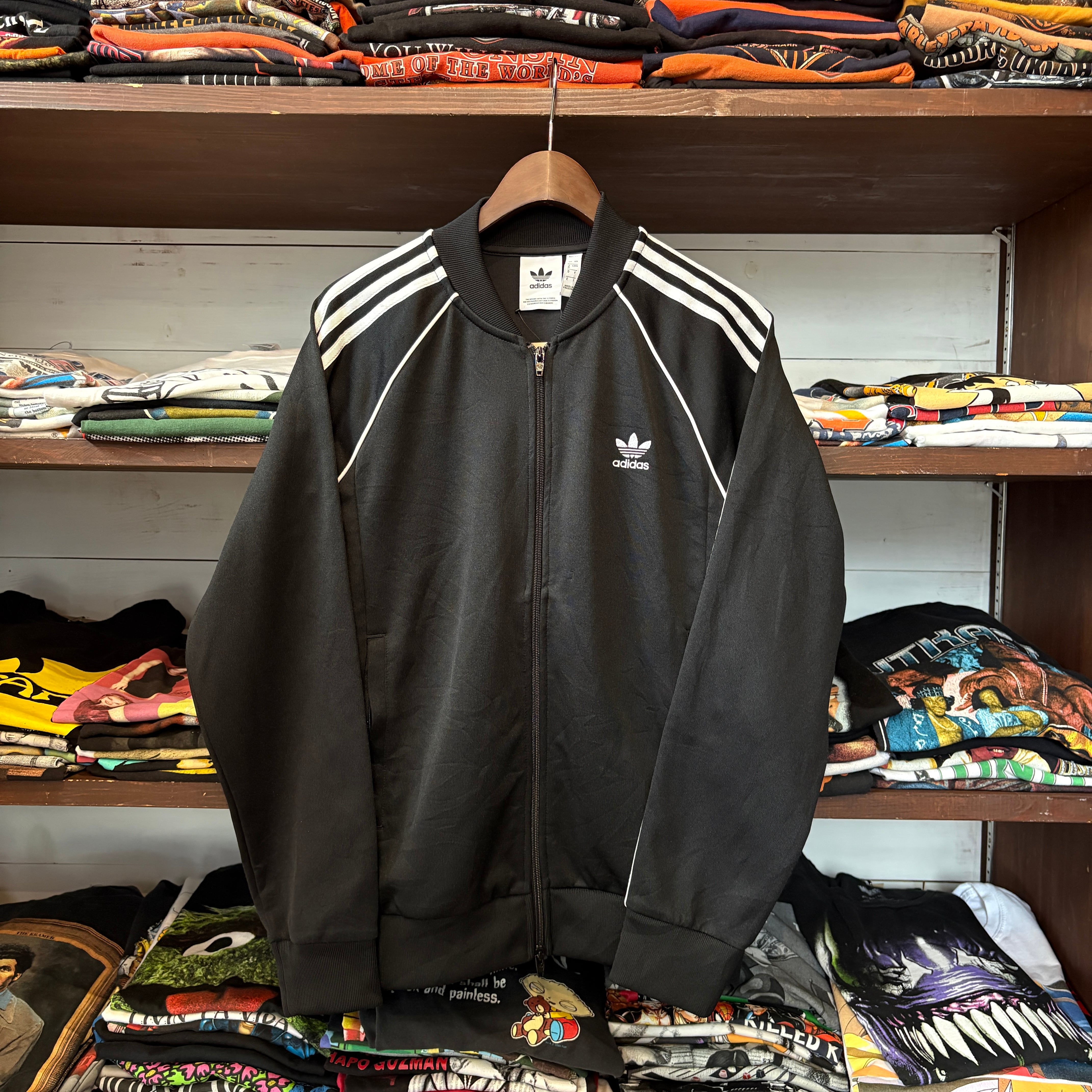 ブラックにホワイトのスリーストライプ、王道配色で合わせやすさ抜群の一枚!!!