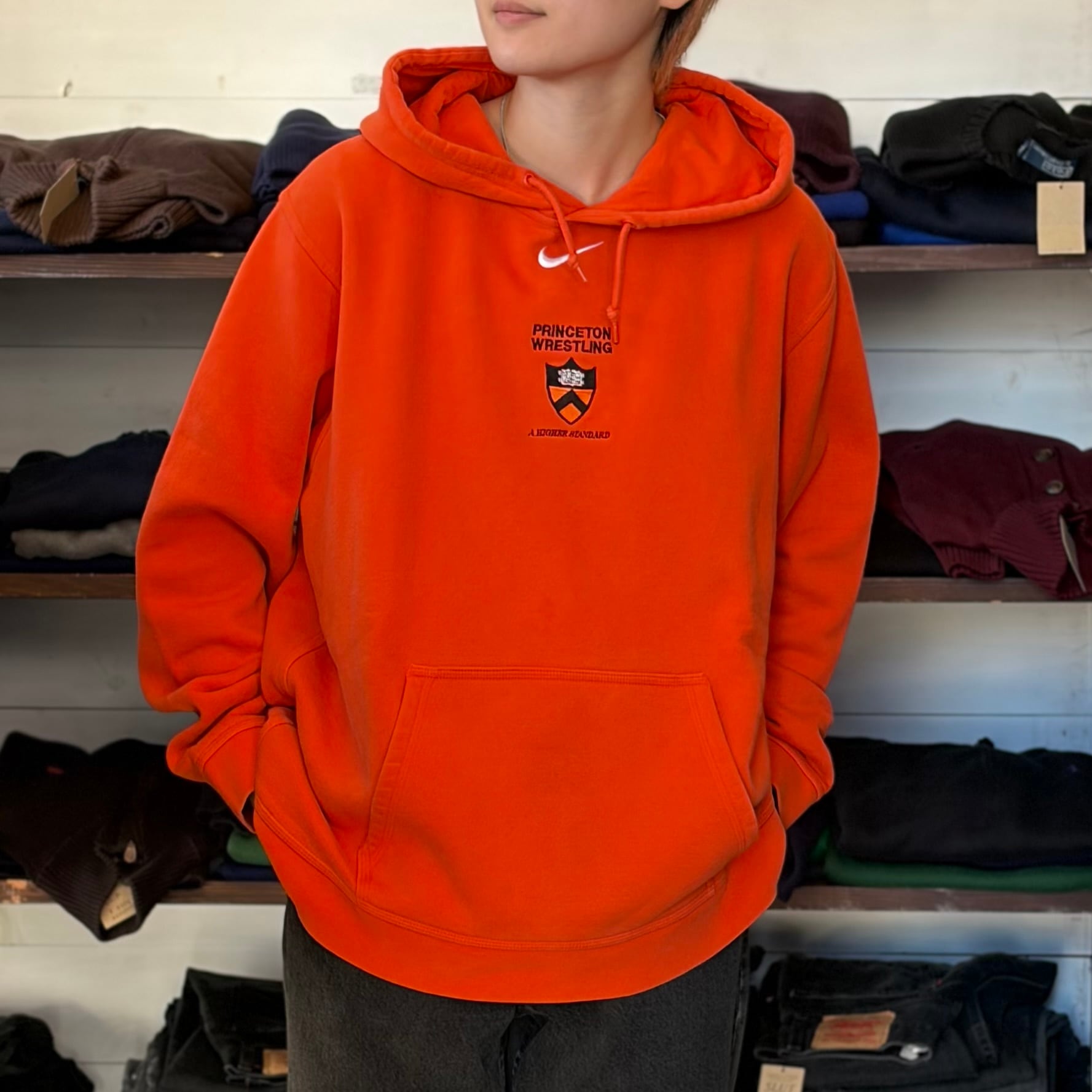 “カレッジ系◎” NIKE College Logo Parker(Orange)”size L” ナイキ カレッジロゴ パーカー オレンジ ストリート 古着 古着屋 郡山