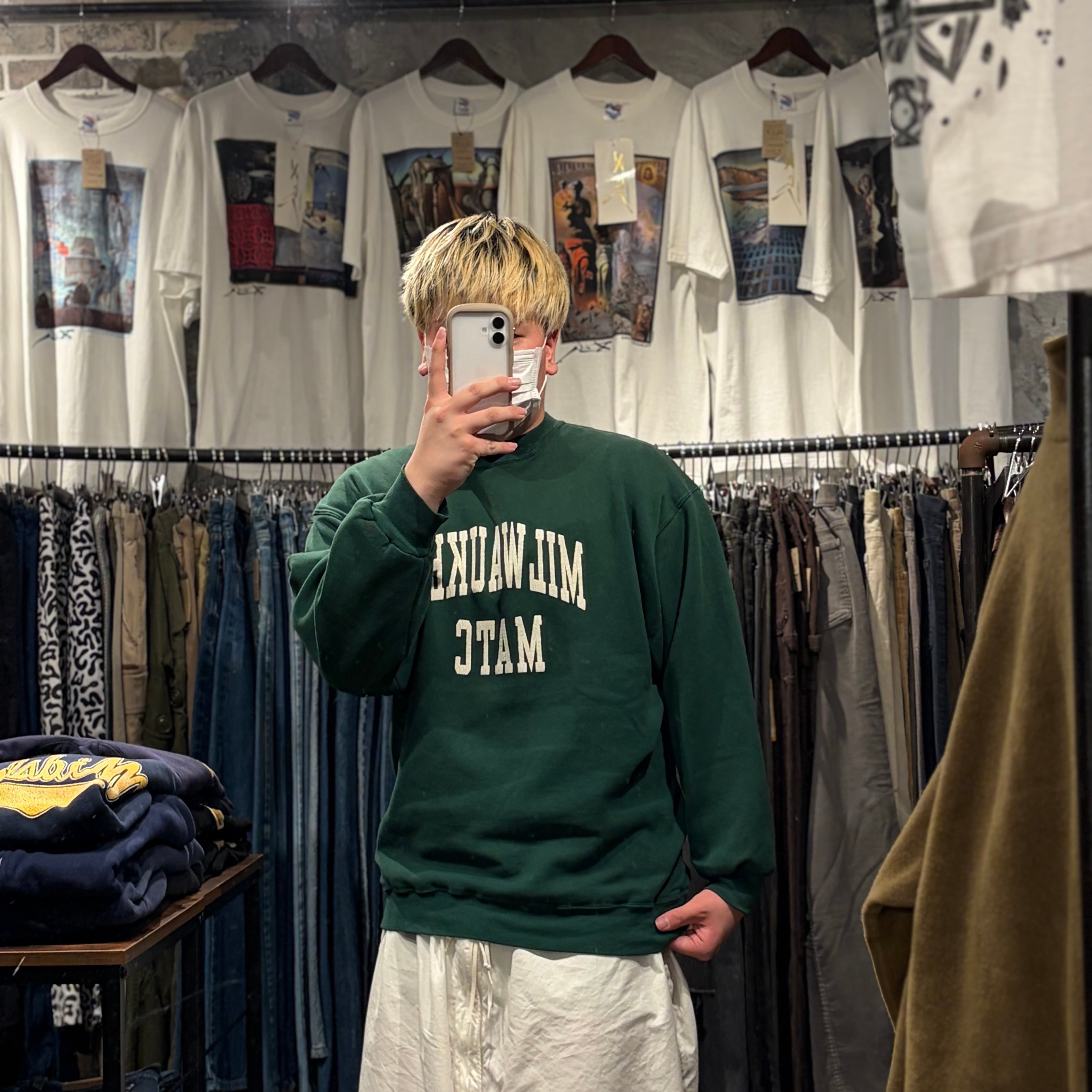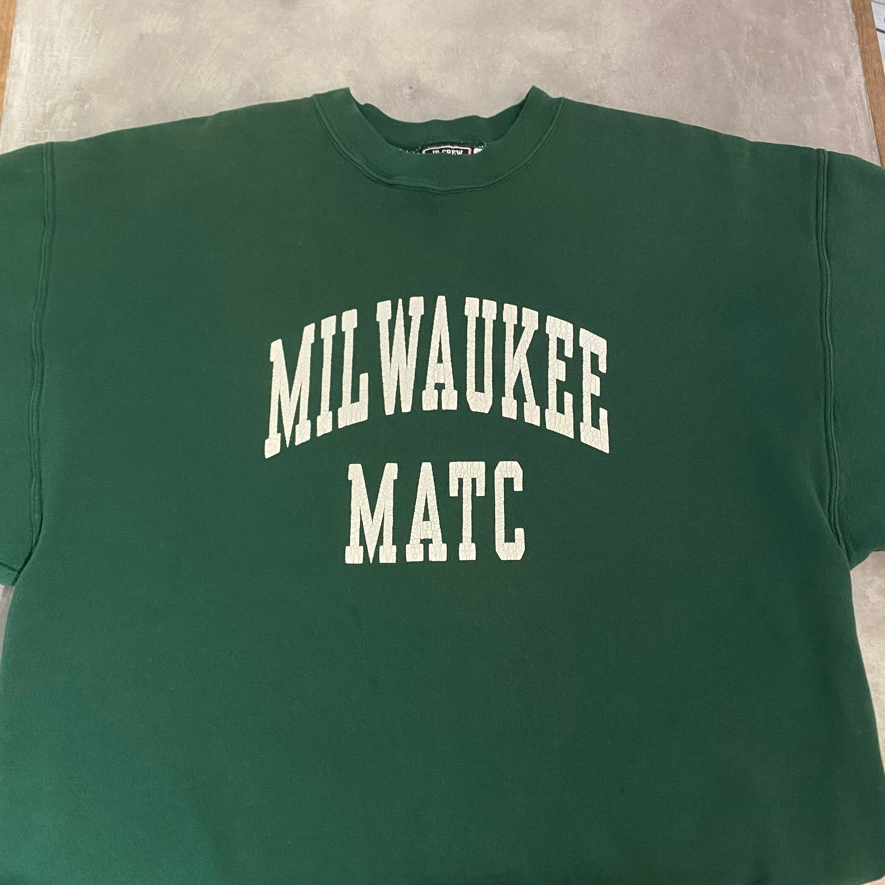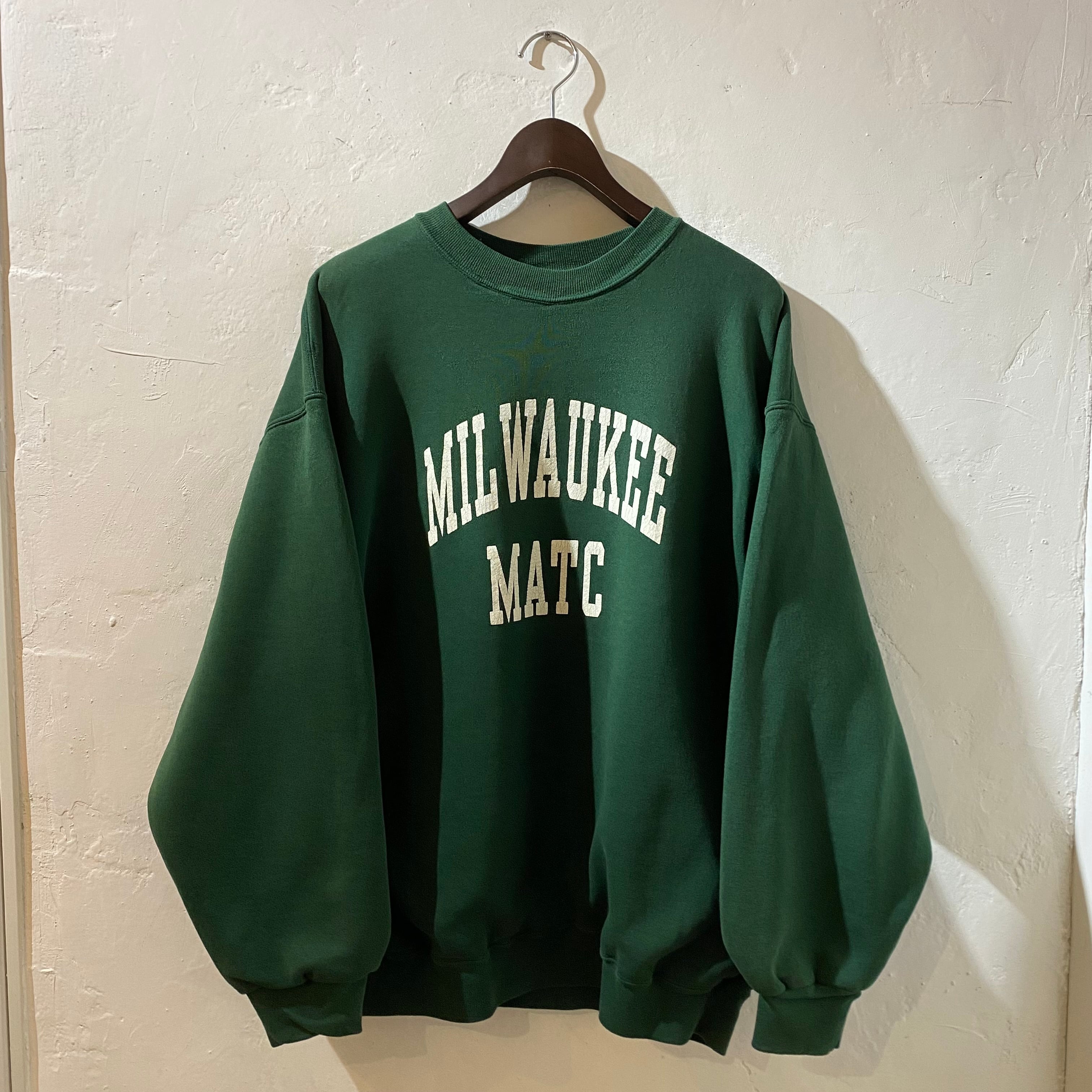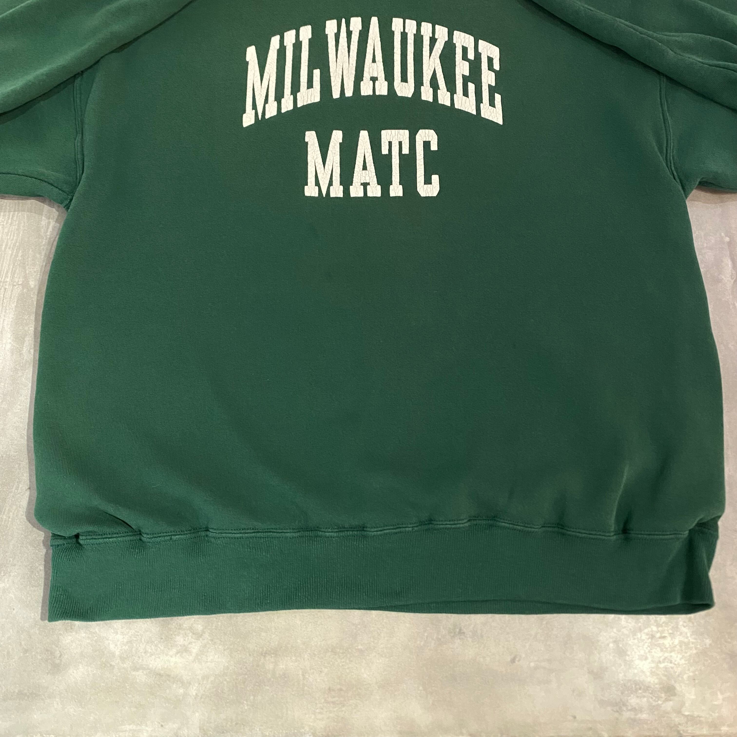 ”W−FACE☆” College Sweat ”MILWAUKEE" (Green)”size XL” カレッジ系ロゴ スウェット ダブルフェイス グリーン アメカジ ストリート 古着 古着屋 郡山