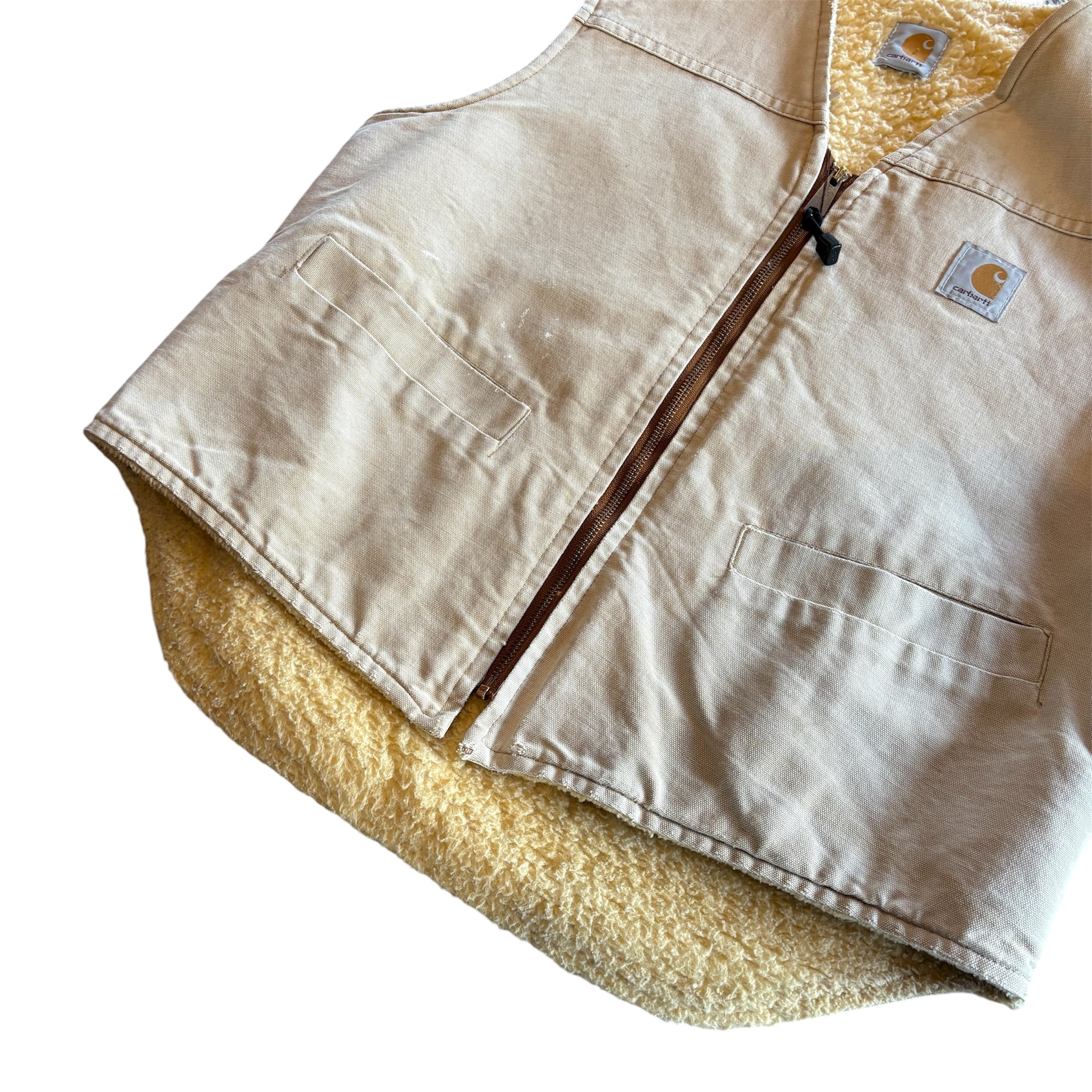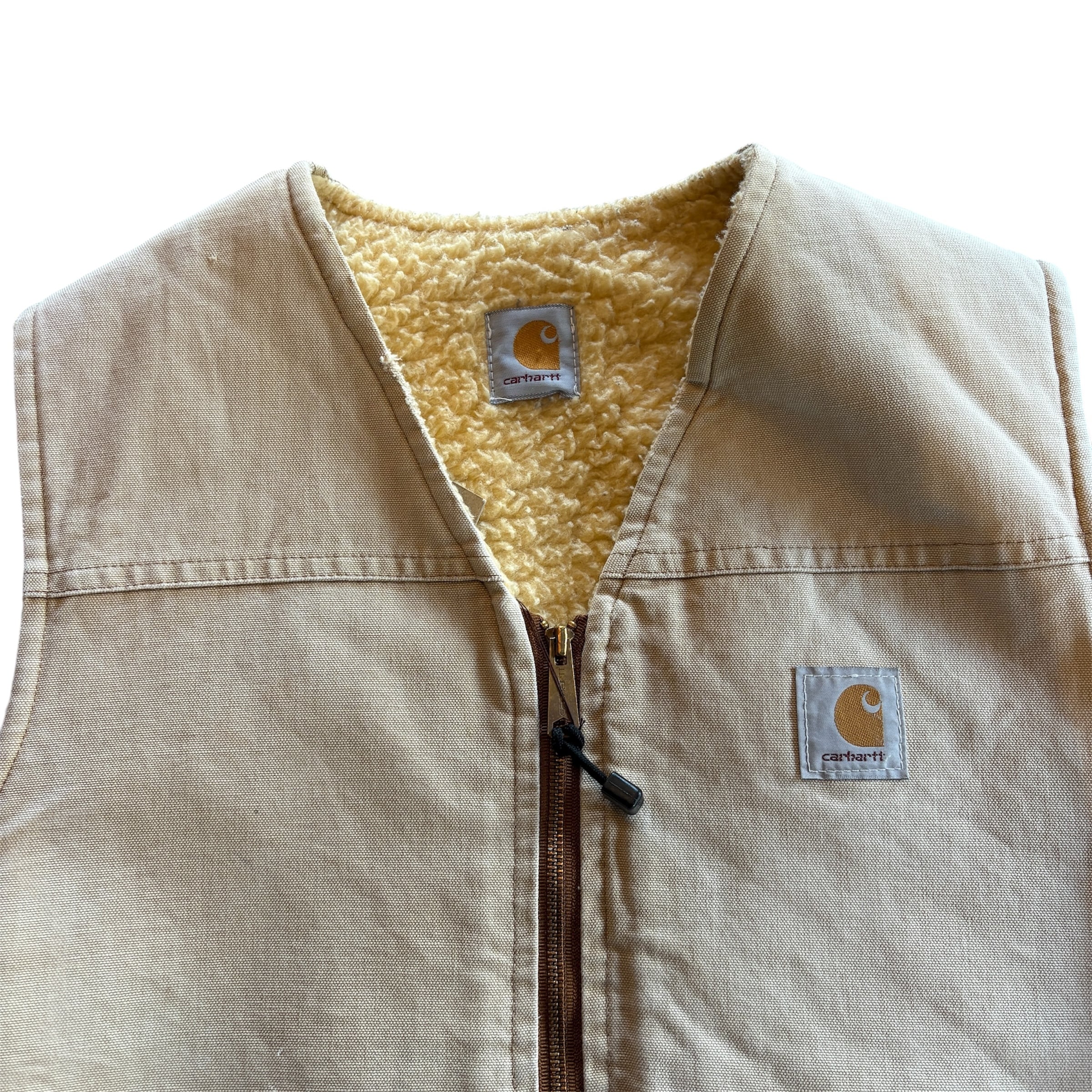 ”レアディティール◎” ~90s Carhartt Boa Duck Vest size:不明 (beige) カーハート ボアベスト ベスト フェード アメリカ アメカジ ストリート テック シティ 古着屋