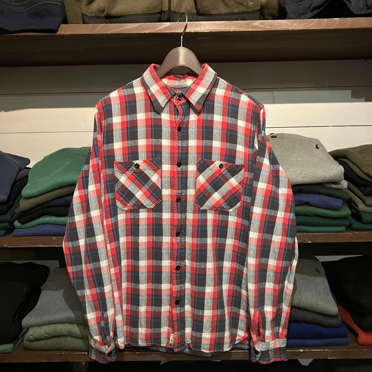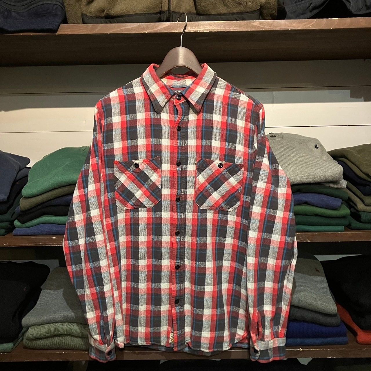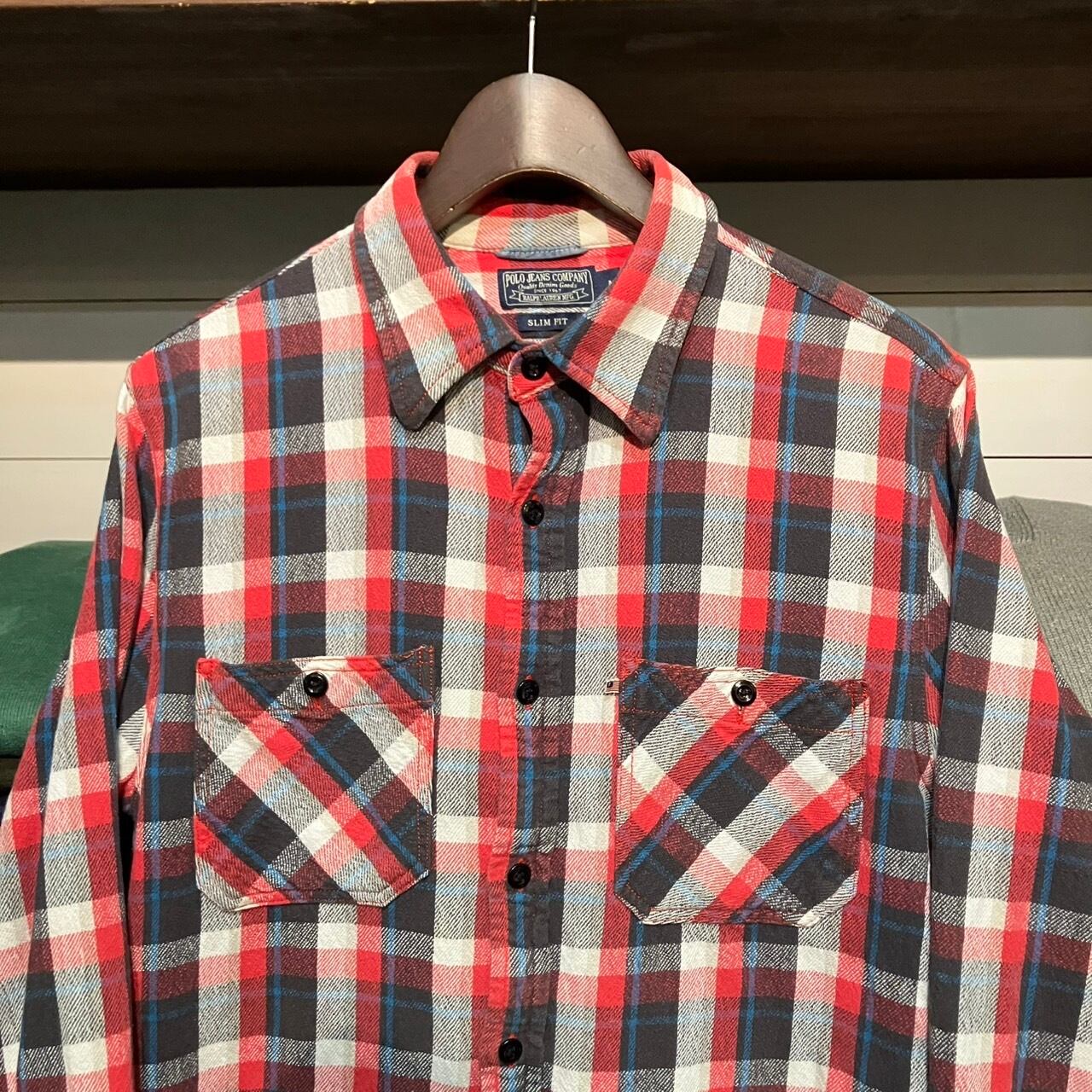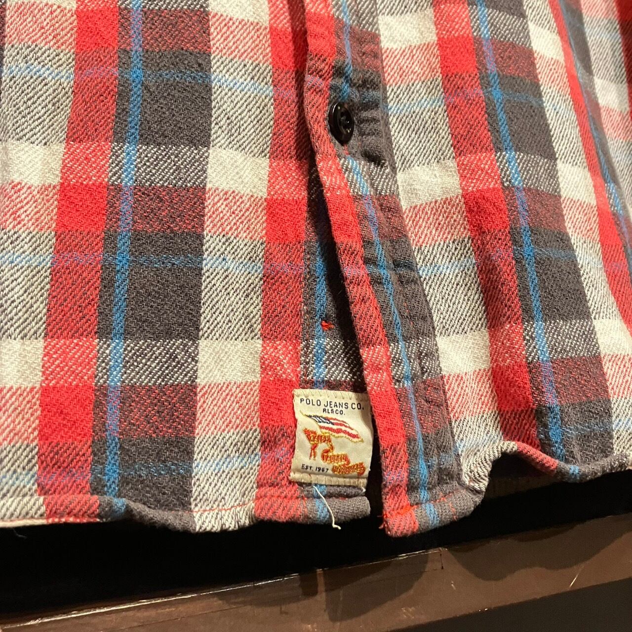"旬な一枚◎" Ralph Lauren Flannel Shirt (Red) Size:M ラルフローレン ネルシャツ マチ付き ヴィンテージライク アメカジ