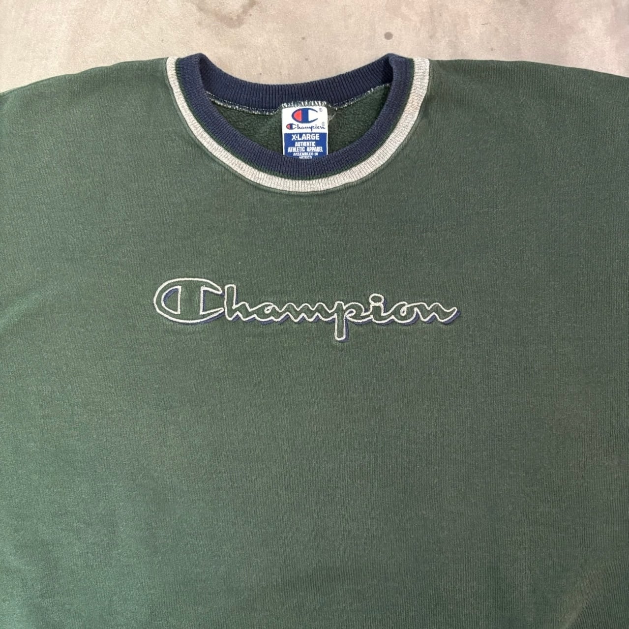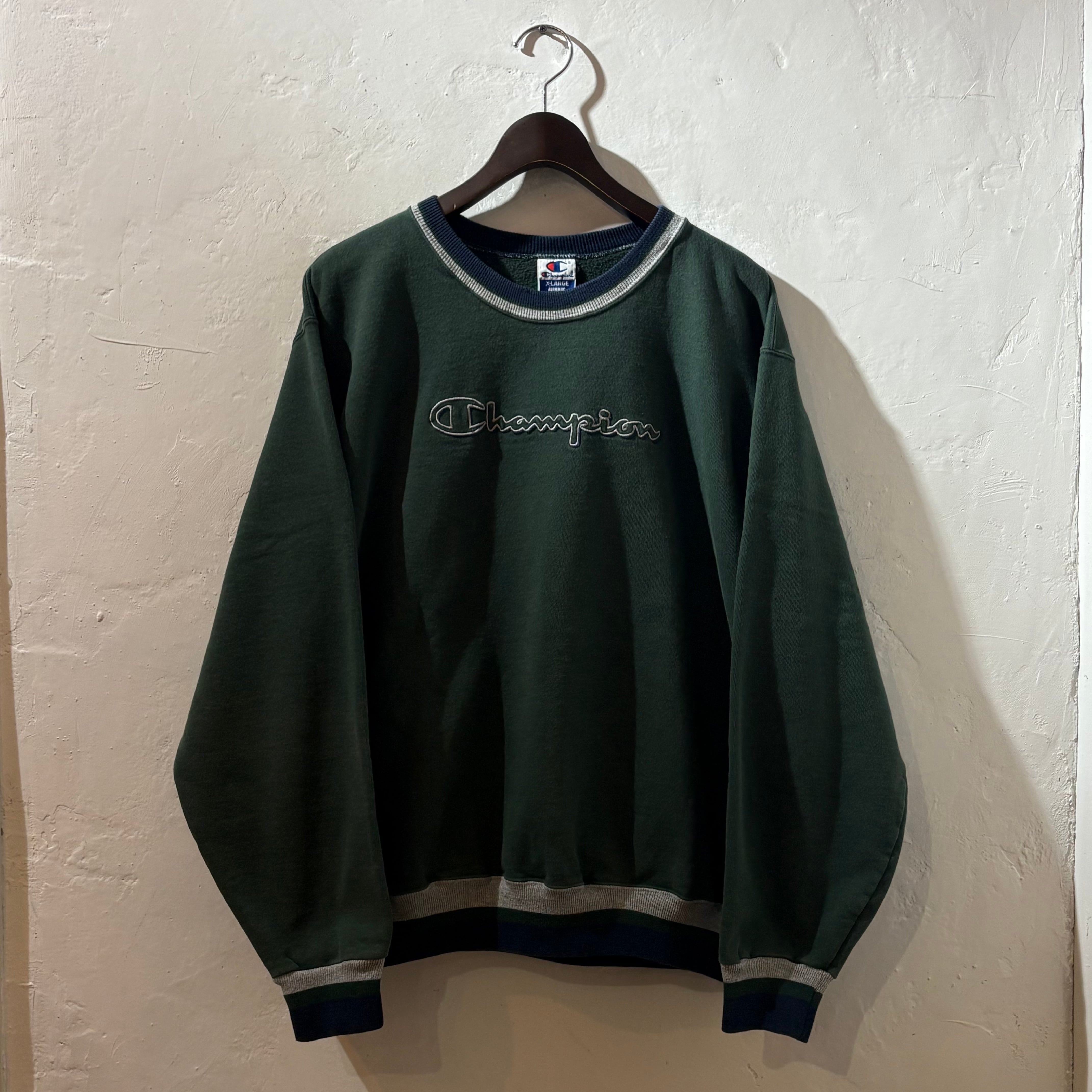 ”破格” 90s Champion SW (Green) size:XL チャンピオン スウェット 刺繍 古着屋