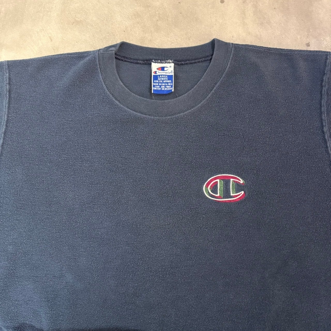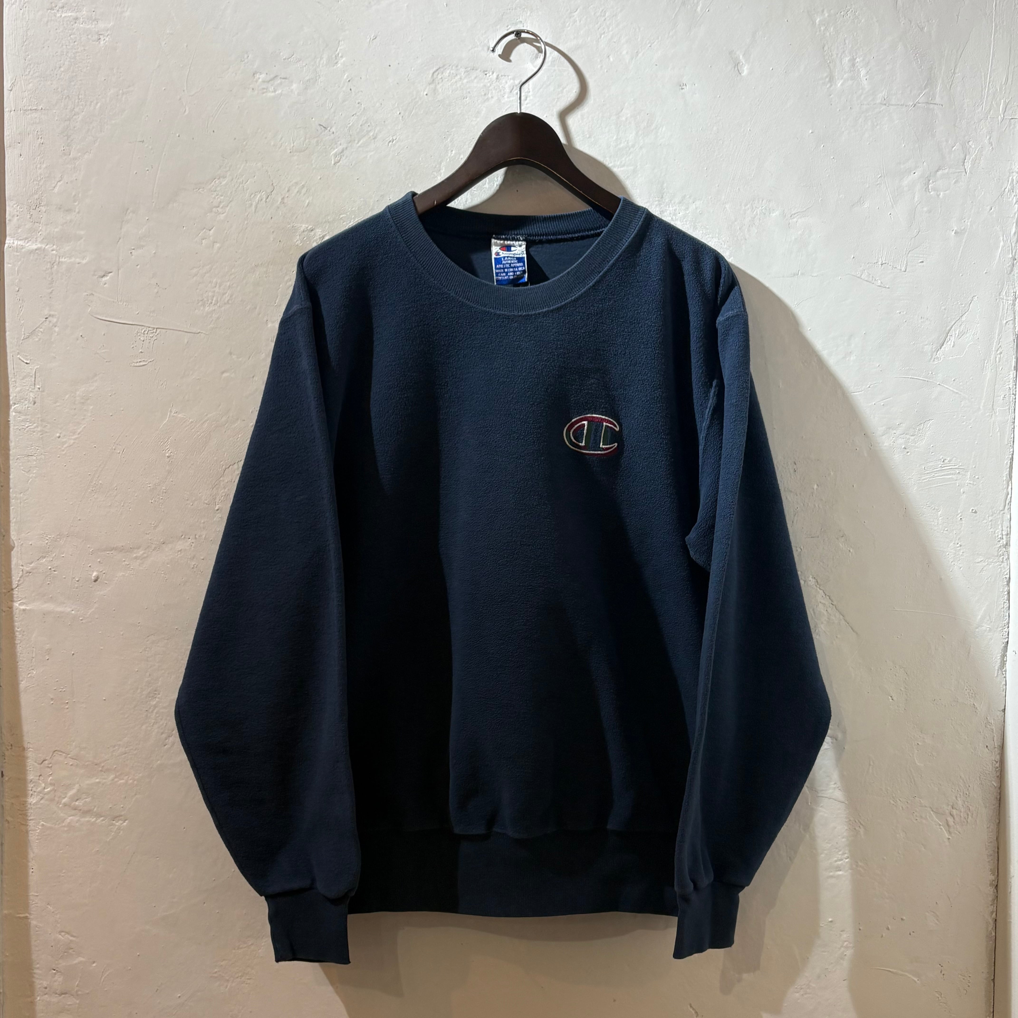 "おもろいチャンピオン!” 90s Champion SW (Navy) size:L チャンピオン スウェット インサイドアウト 古着屋
