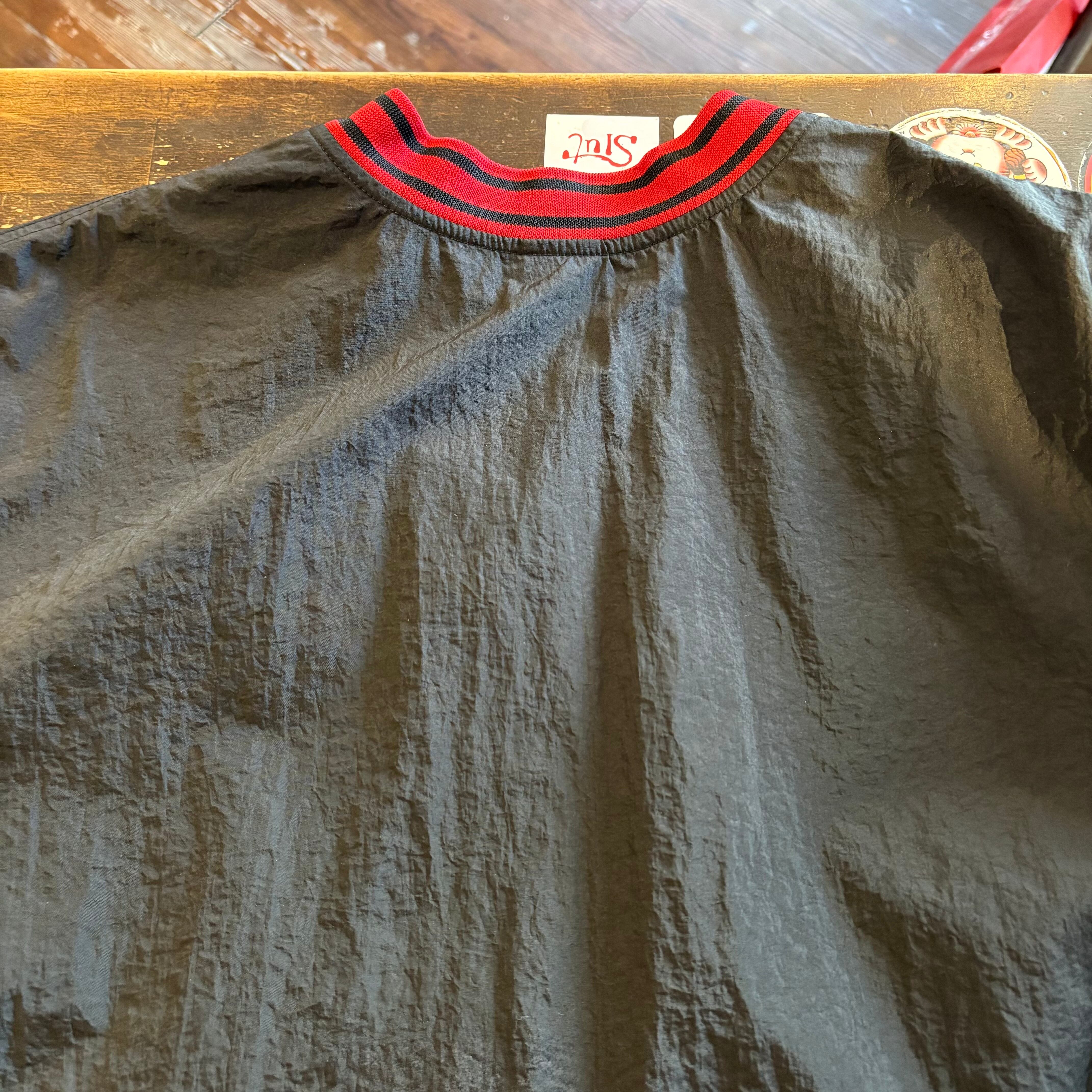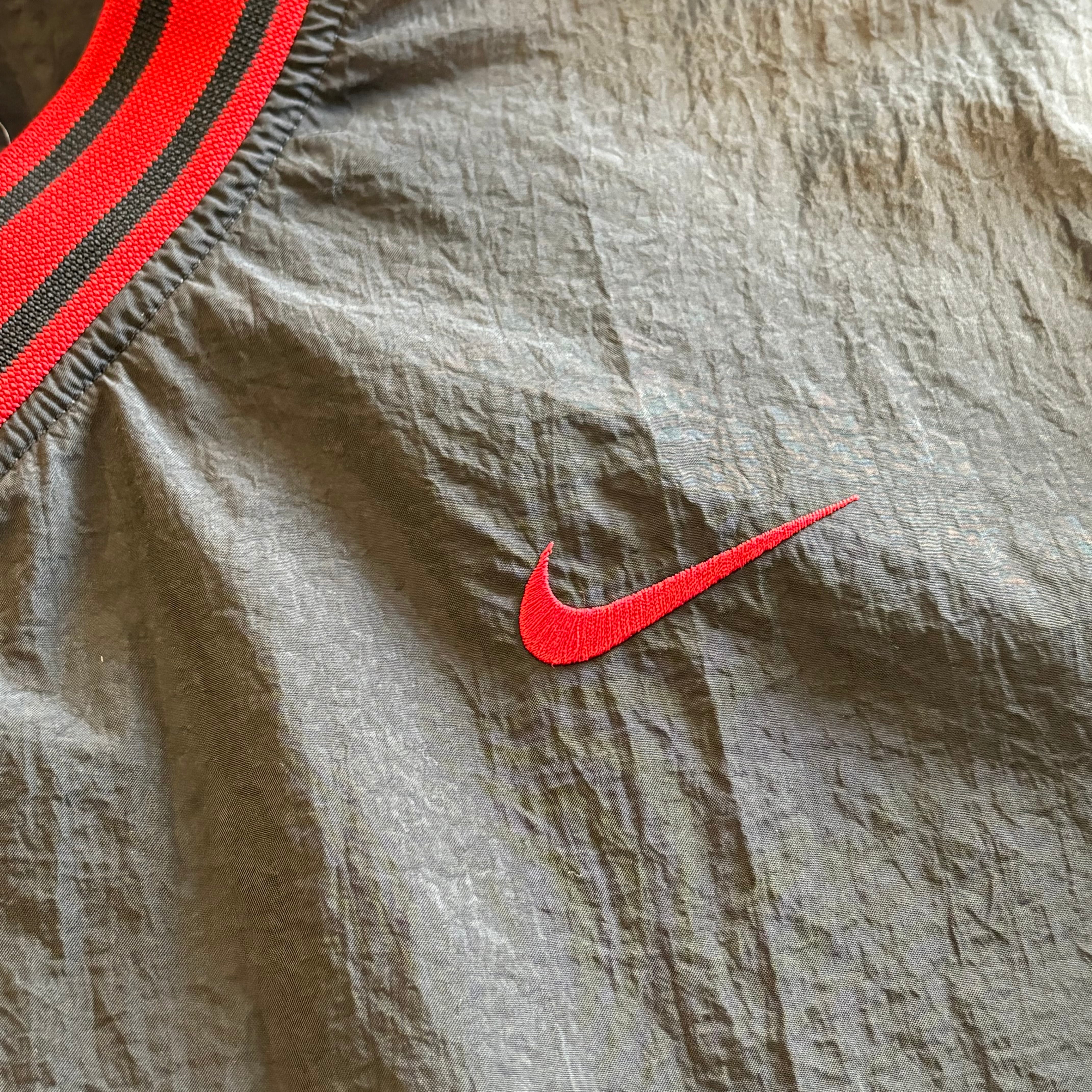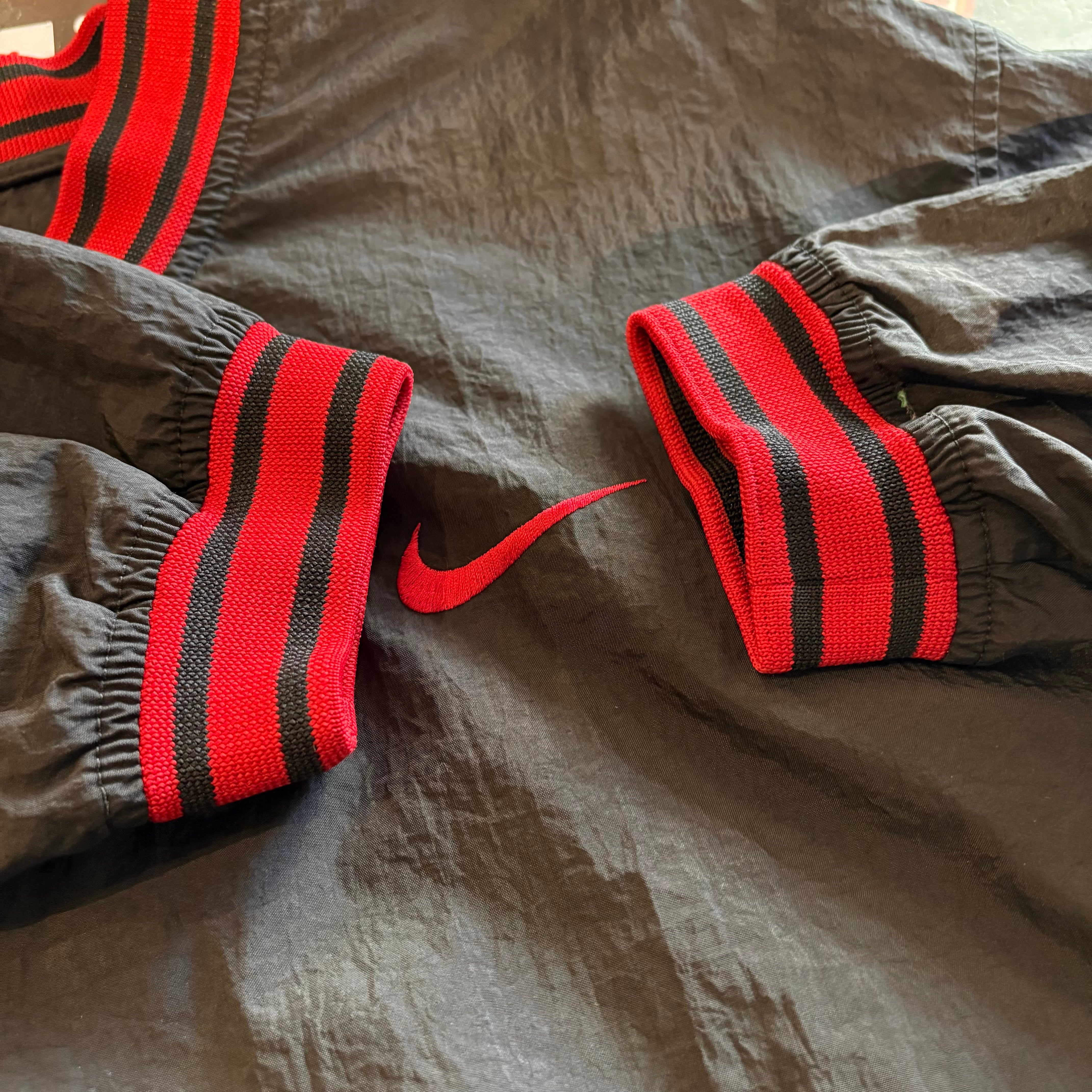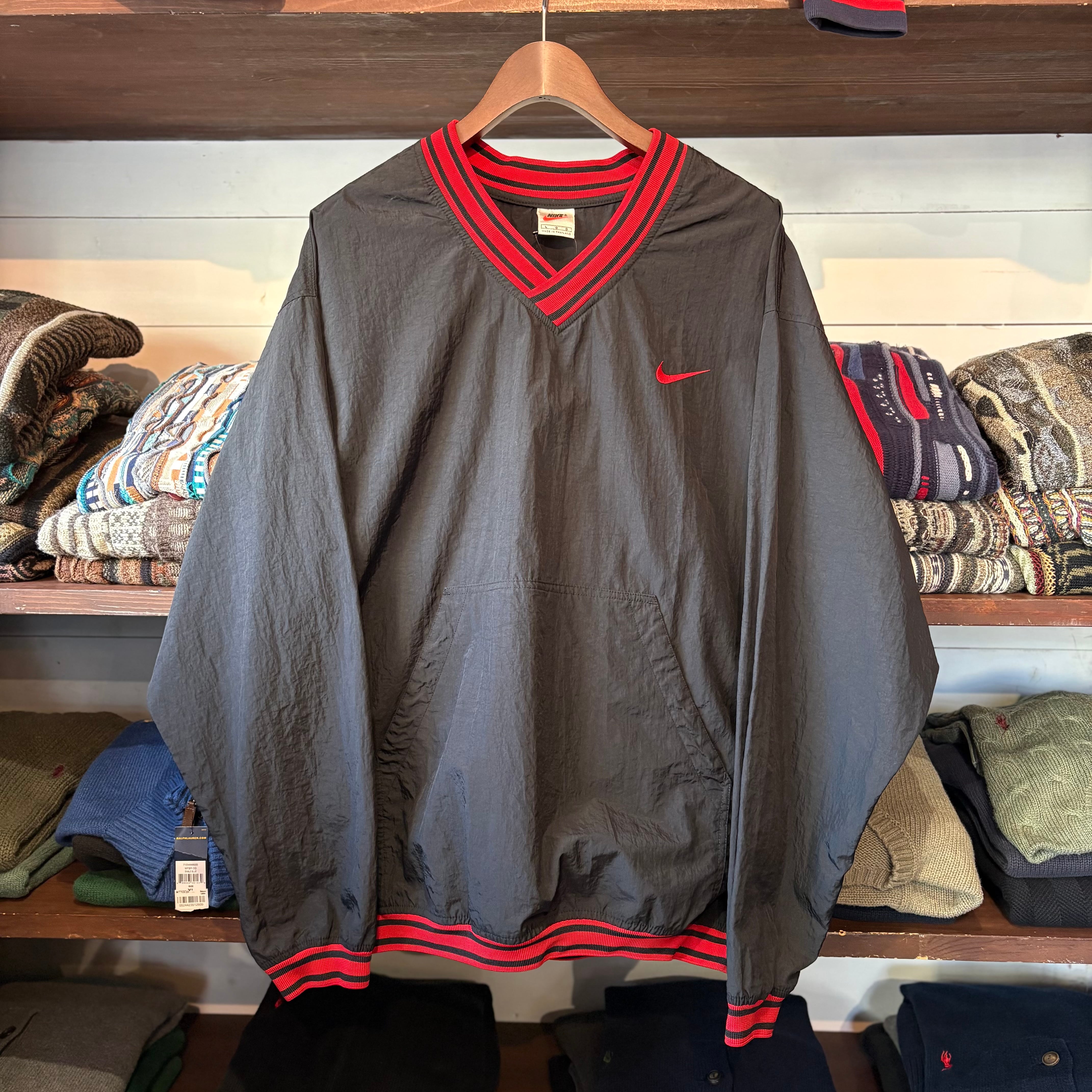 “胸元スウッシュ” NIKE Nylon P/O Jacket (RED×BLACK)”size L” ナイキ ナイロン プルオーバー ジャケット ブラック×レッド ストリート 古着 古着屋 郡山