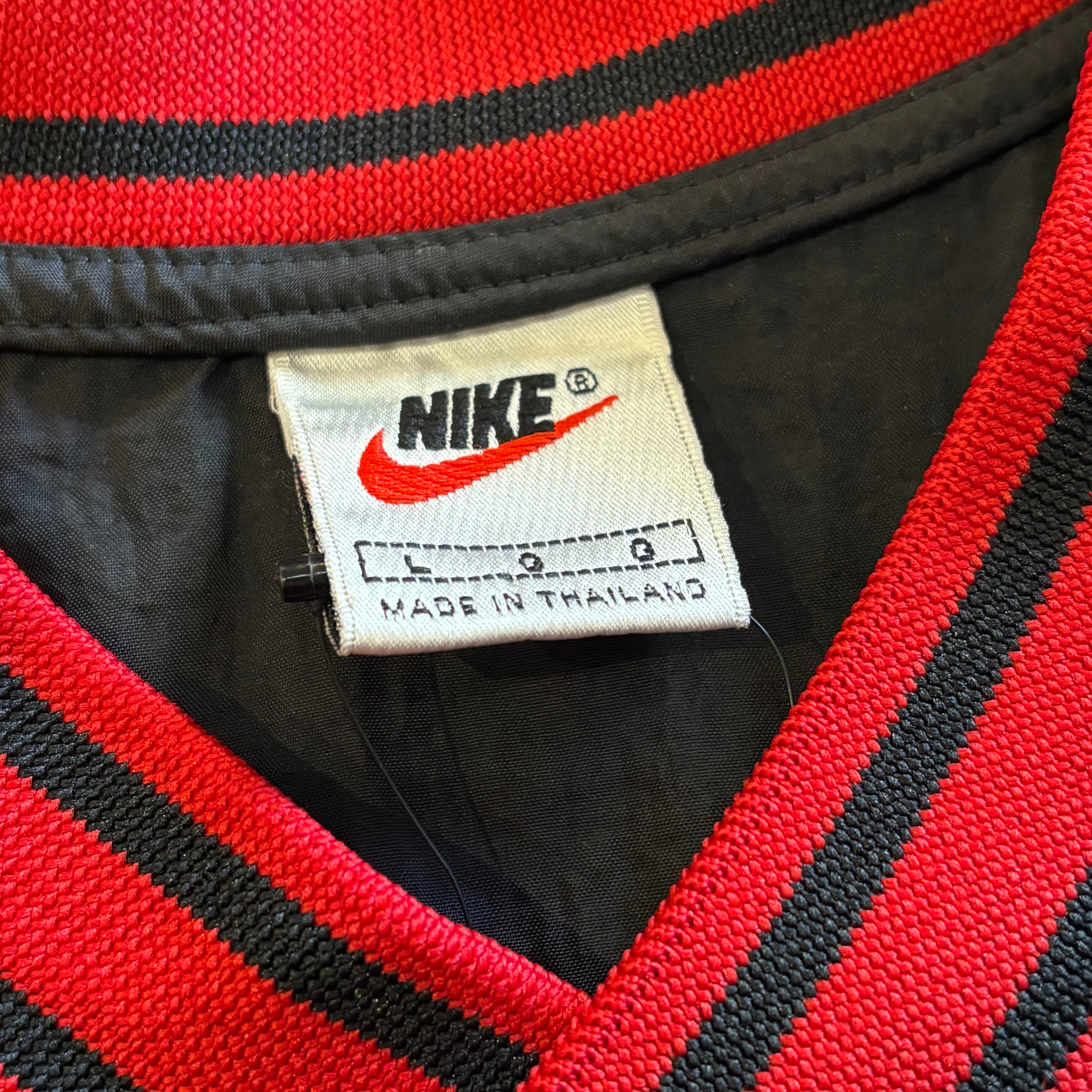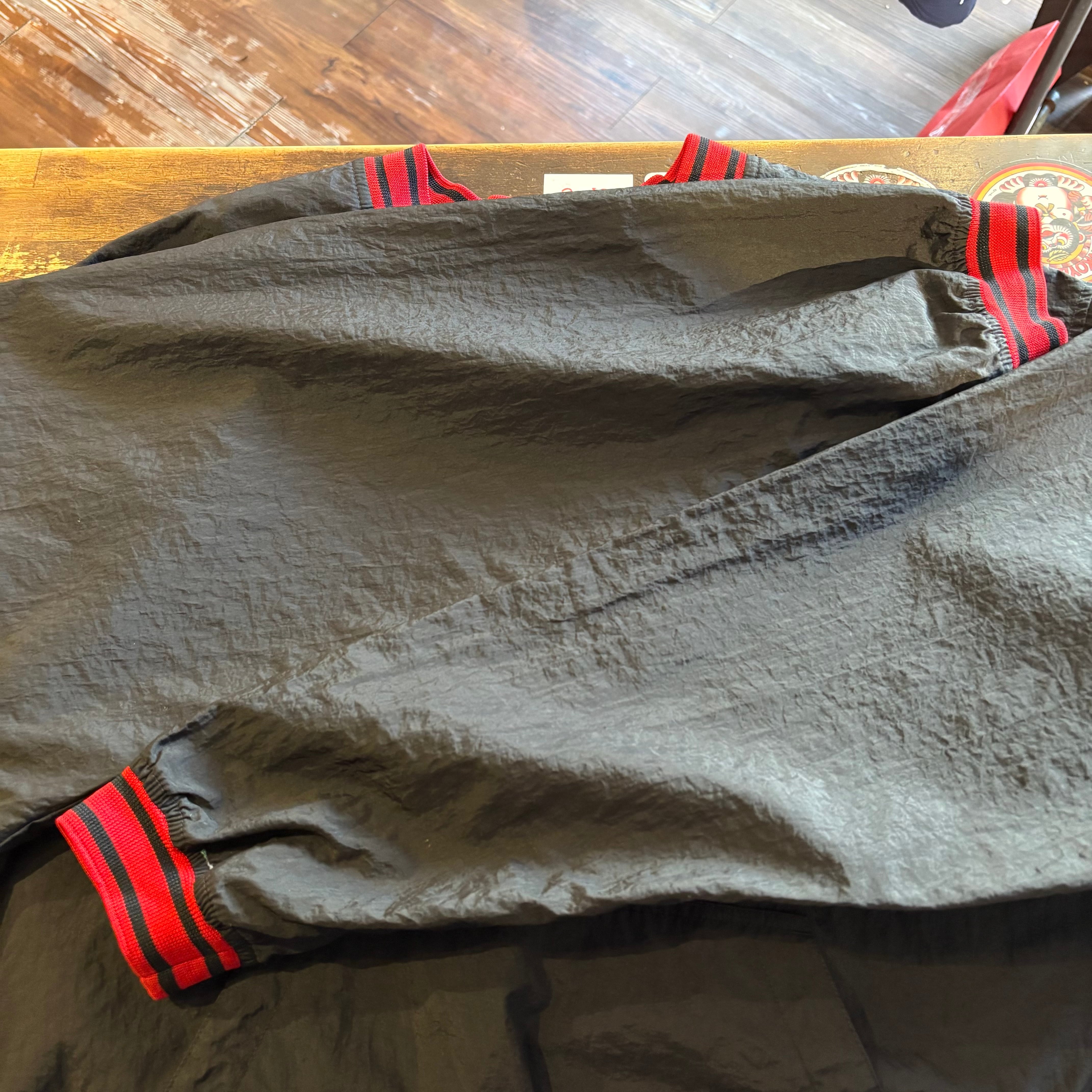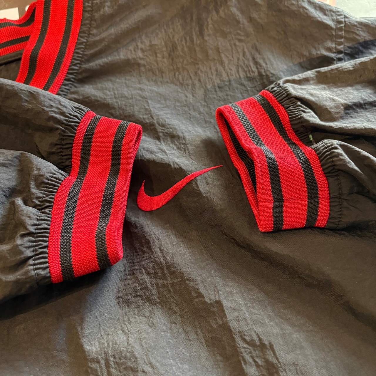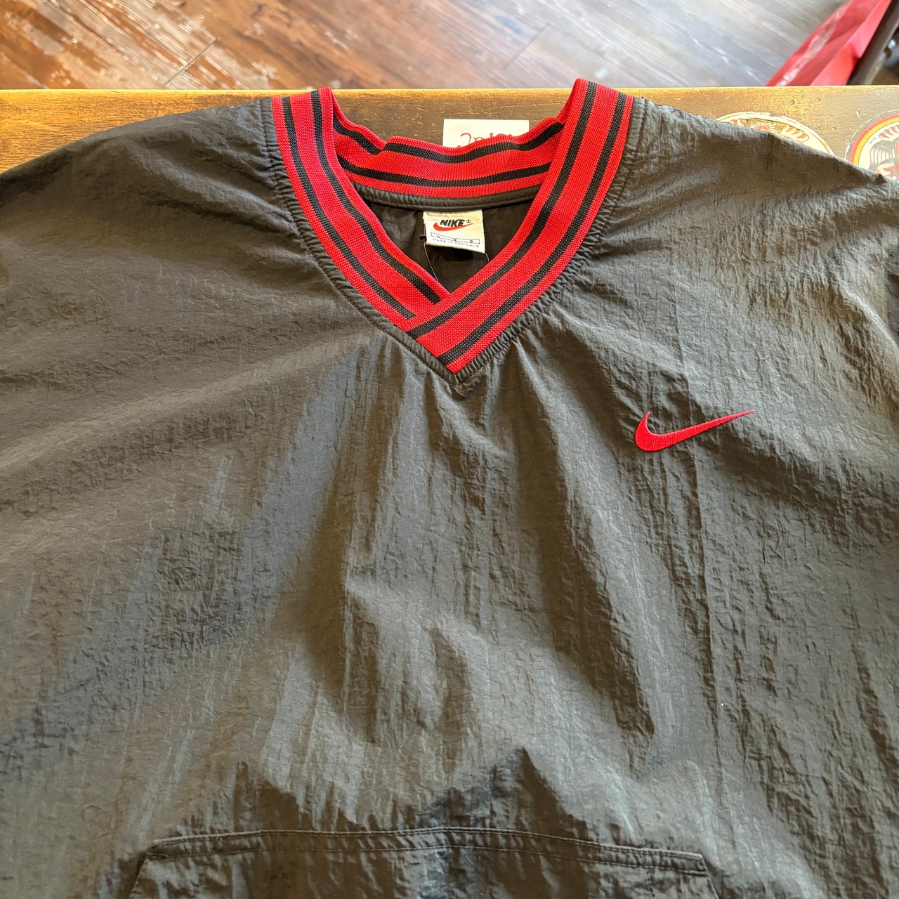 “胸元スウッシュ” NIKE Nylon P/O Jacket (RED×BLACK)”size L” ナイキ ナイロン プルオーバー ジャケット ブラック×レッド ストリート 古着 古着屋 郡山