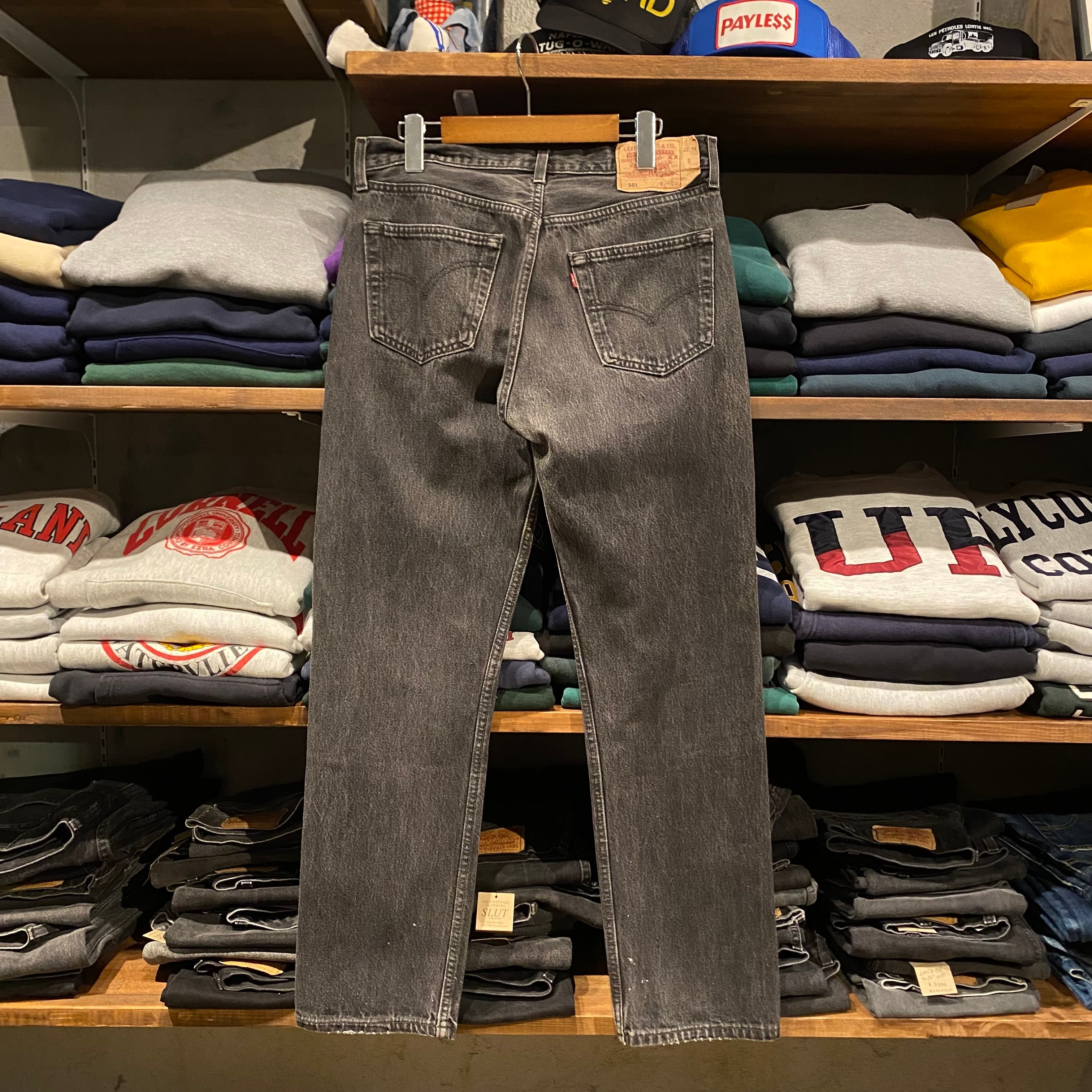 王道からは少し外れるが、ファンもかなり多いイギリス製・後染めブラックという非常に珍しい条件のLEVI’S 501。