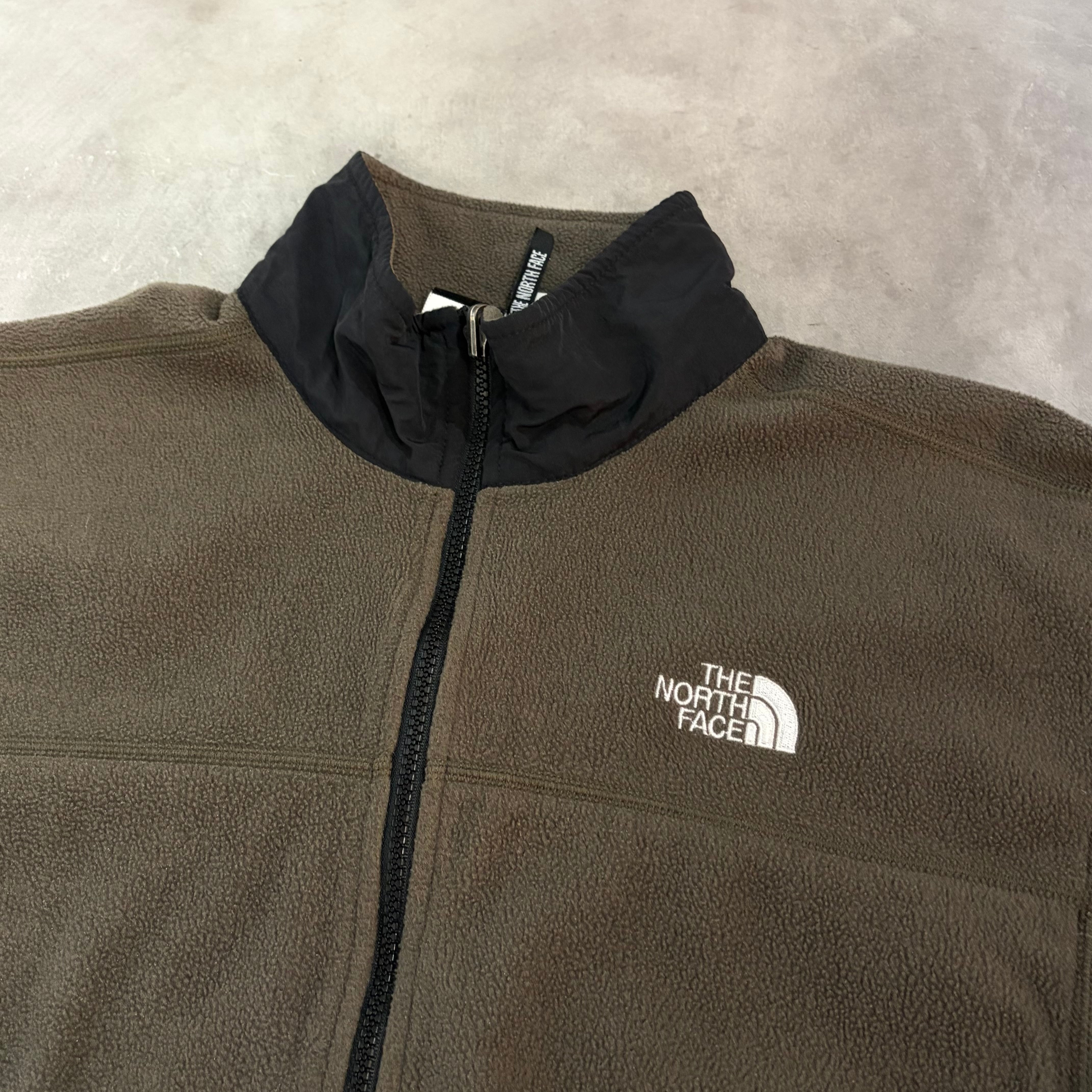 “男女共に‼︎” TheNorthFace fleece jacket (khaki)”size L” ノースフェイス フリースジャケット カーキ シンプル アウトドア 古着 古着屋