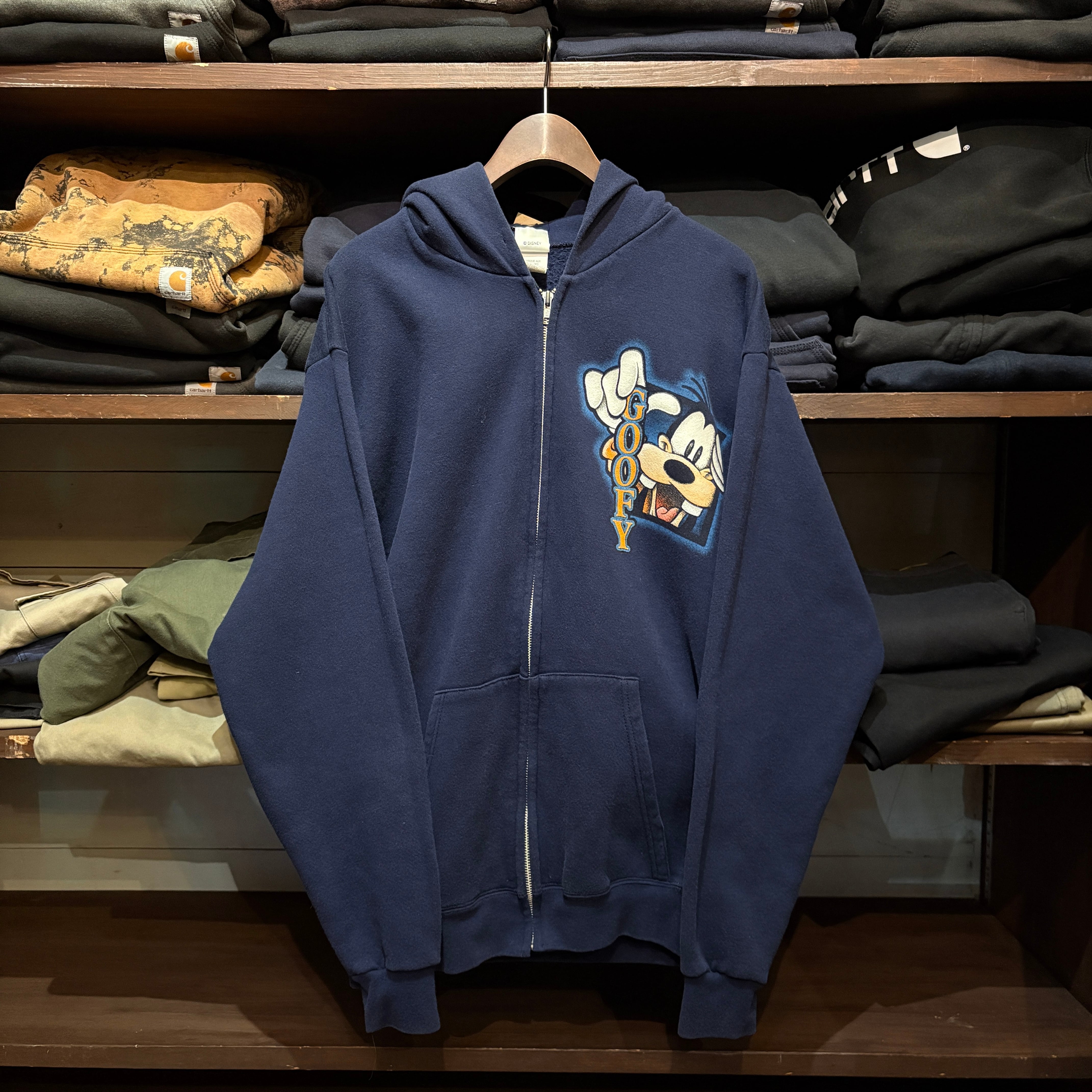 ”USA製” Disney Full-Zip Hoodie Size : L ( Navy ) ディズニー フルジップ パーカー スウェット グーフィー 古着