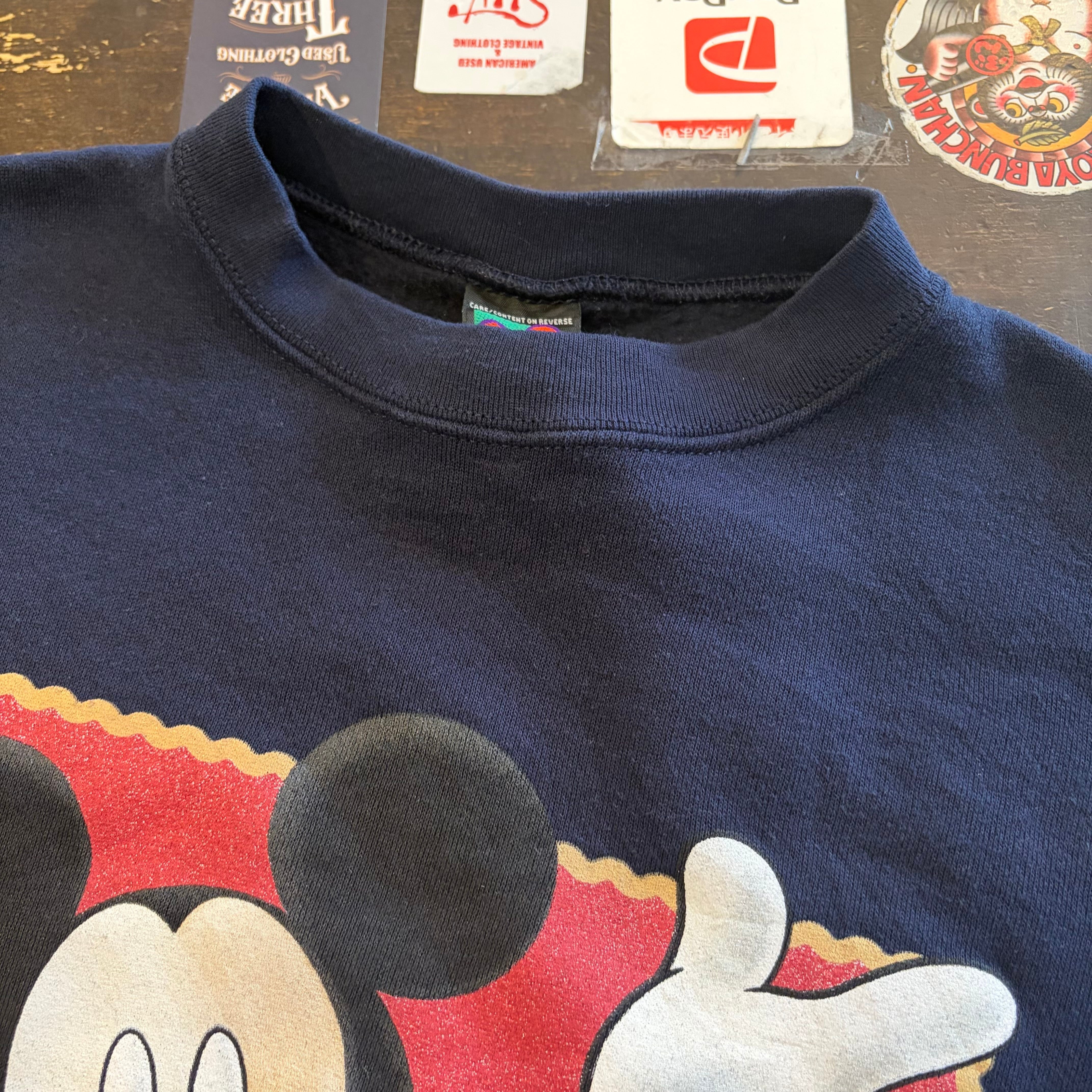“デザイン◎” Disney Sweat(NAVY)”size L” ミッキー スウェット ネイビー 古着 古着屋 郡山