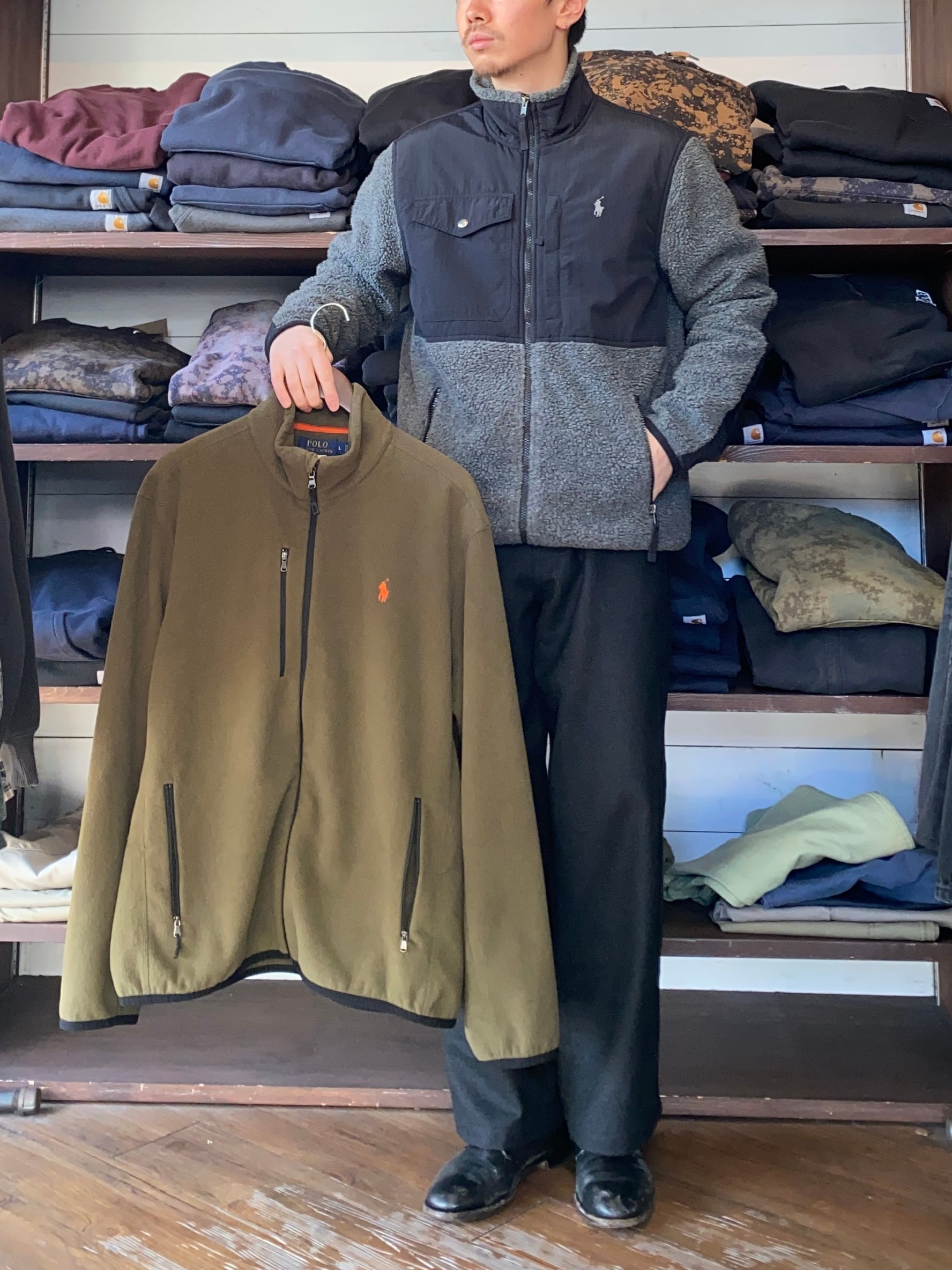 "万能!" Ralph Lauren fleece jacket SIZE L (Olive) ラルフローレン