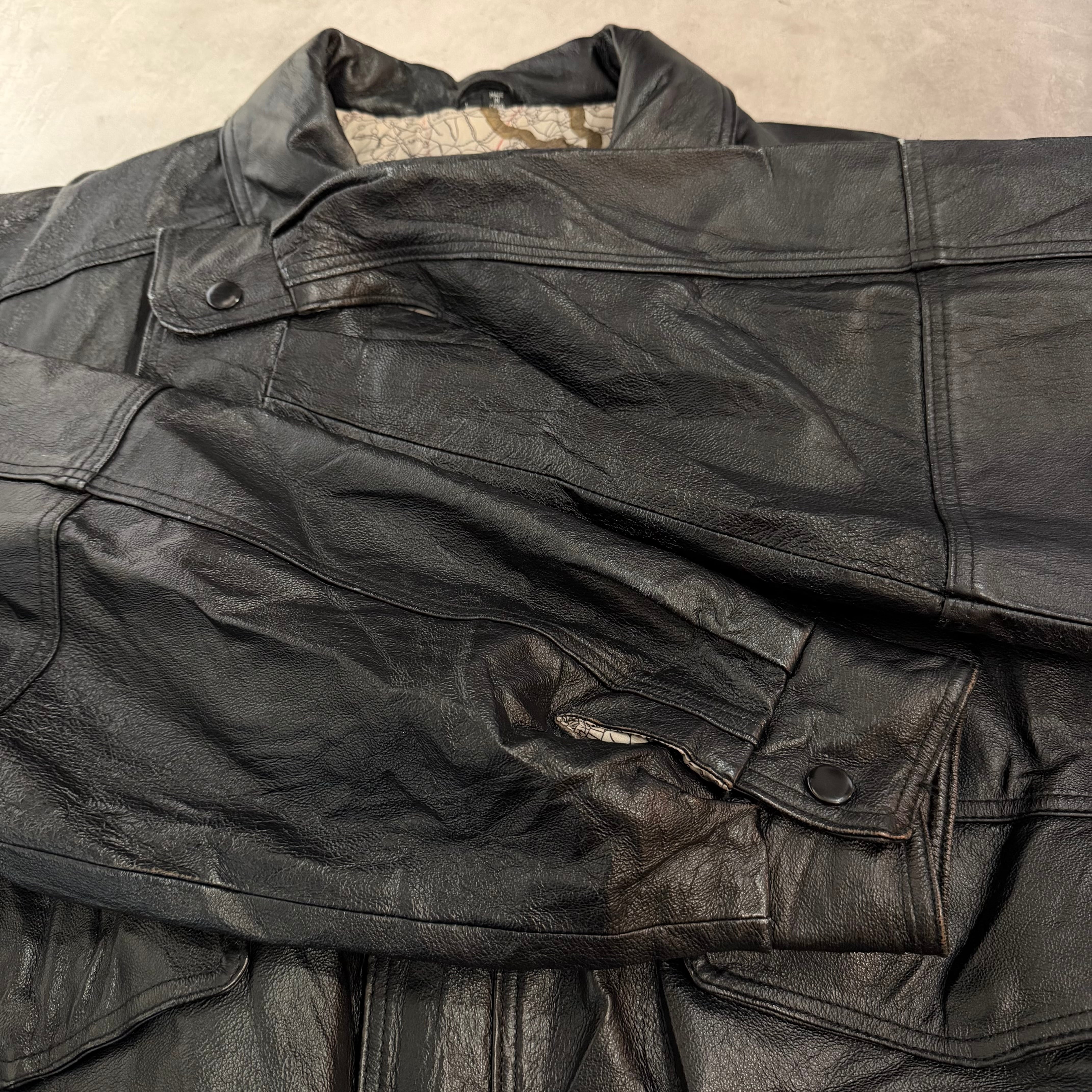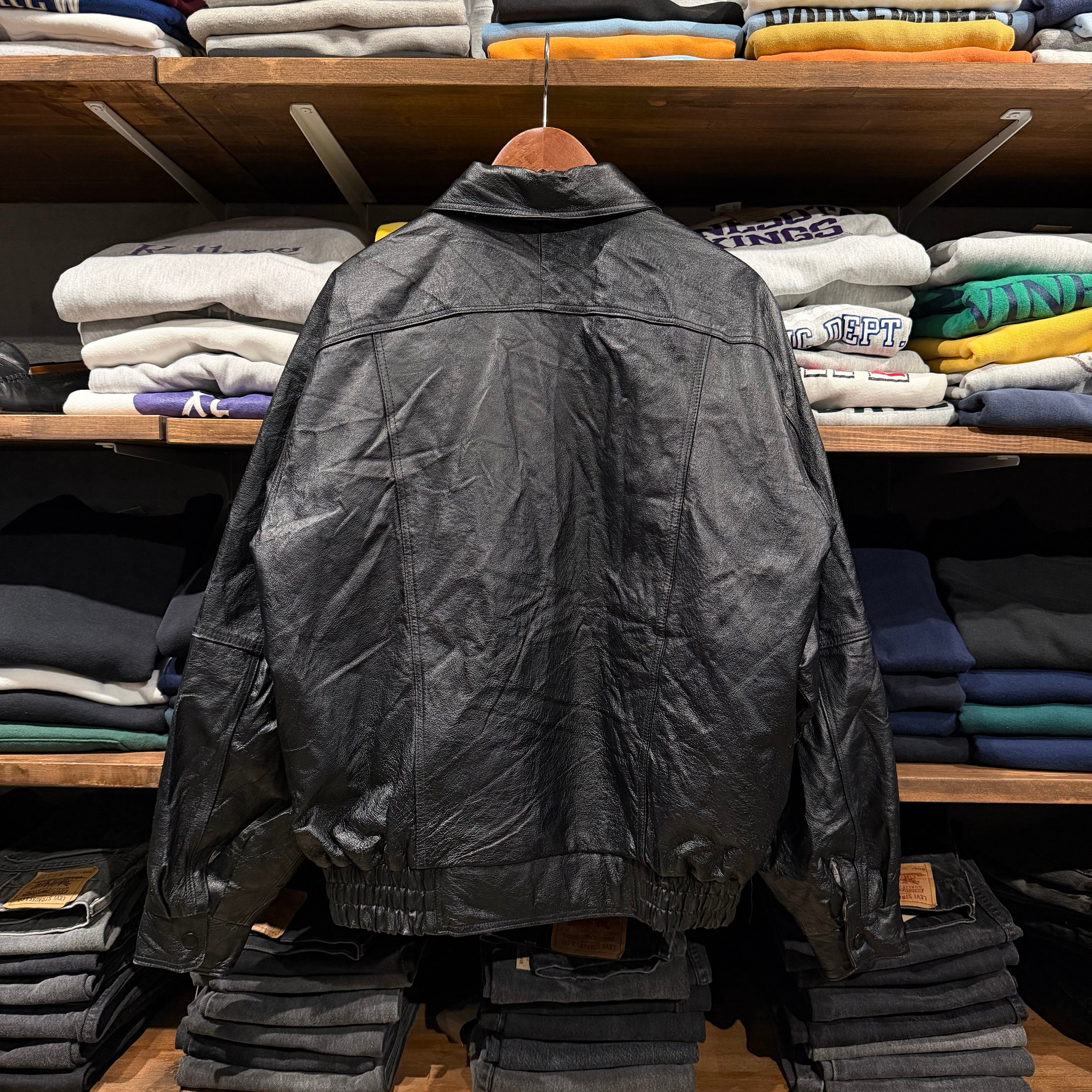 “大人気◎” Leather Jacket (Black)”size L” レザージャケット ブラック アメカジ シンプル ストリート 古着 古着屋 郡山