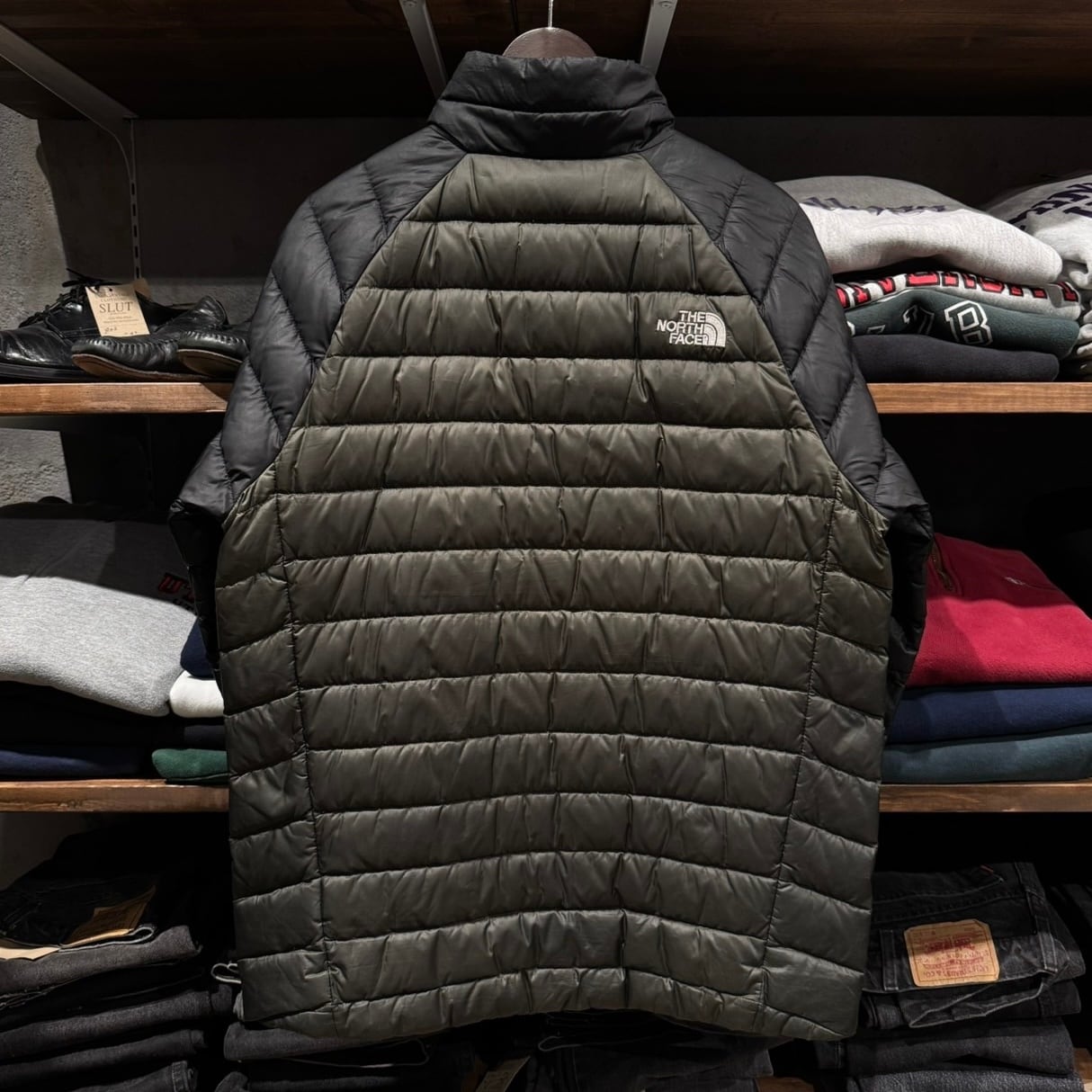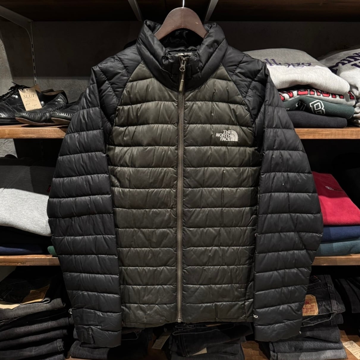 ”テック系に!!” THE NORTH FACE Quilting Light Down Jacket size:M (BLACK×DARK GREEN) ノースフェイス ダウンジャケット アメリカ アメカジ ストリート テック シティ 古着屋