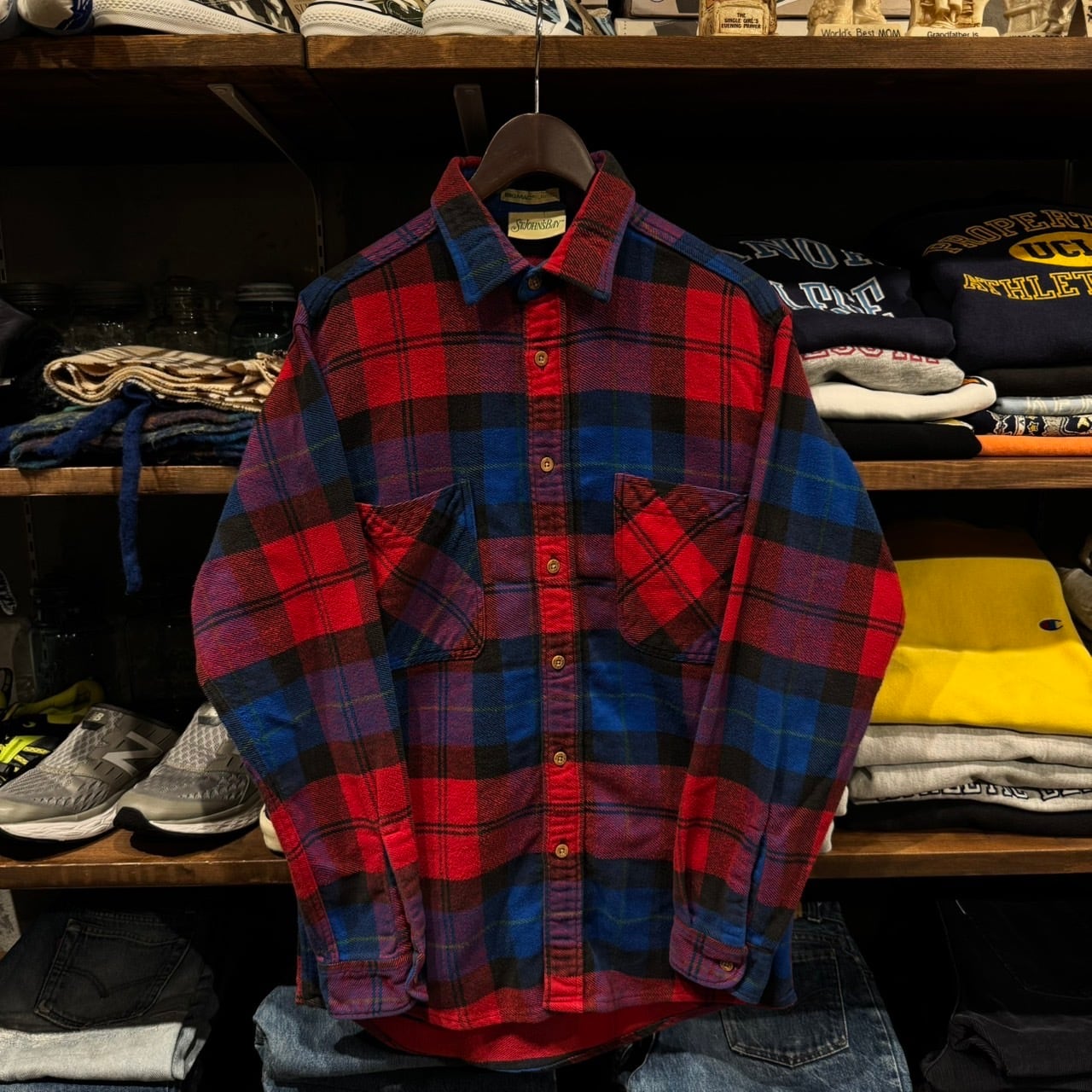 "良配色!!" 80s ST.John's Bay Heavy Flannel Shirt size:M (RED×BLUE) セントジョンズベイ ヘビネル
