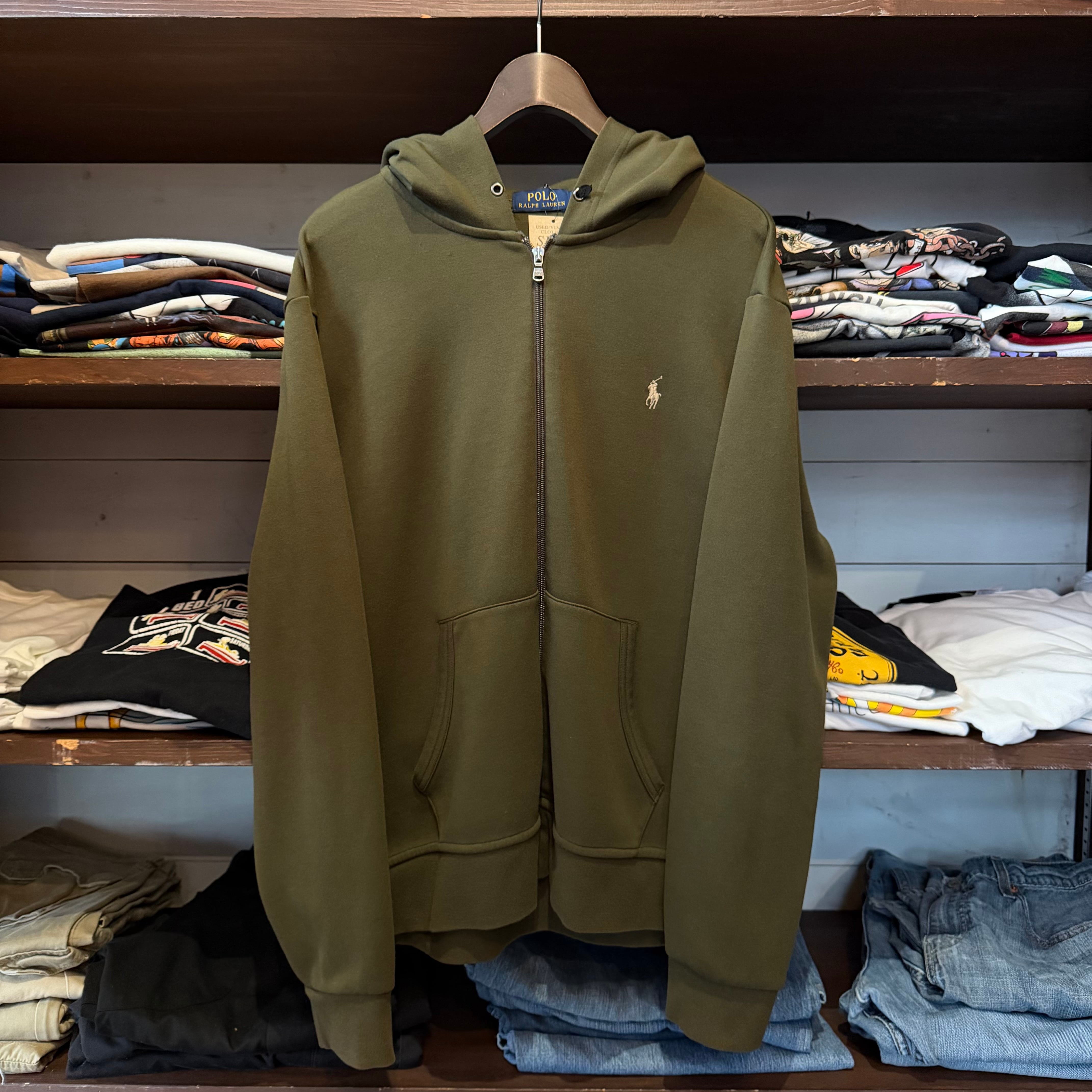 Ralph Lauren Zip Hoodie Sweat(Olive)”size XL” ラルフローレン フルジップ パーカー スウェット 古着 古着屋 郡山