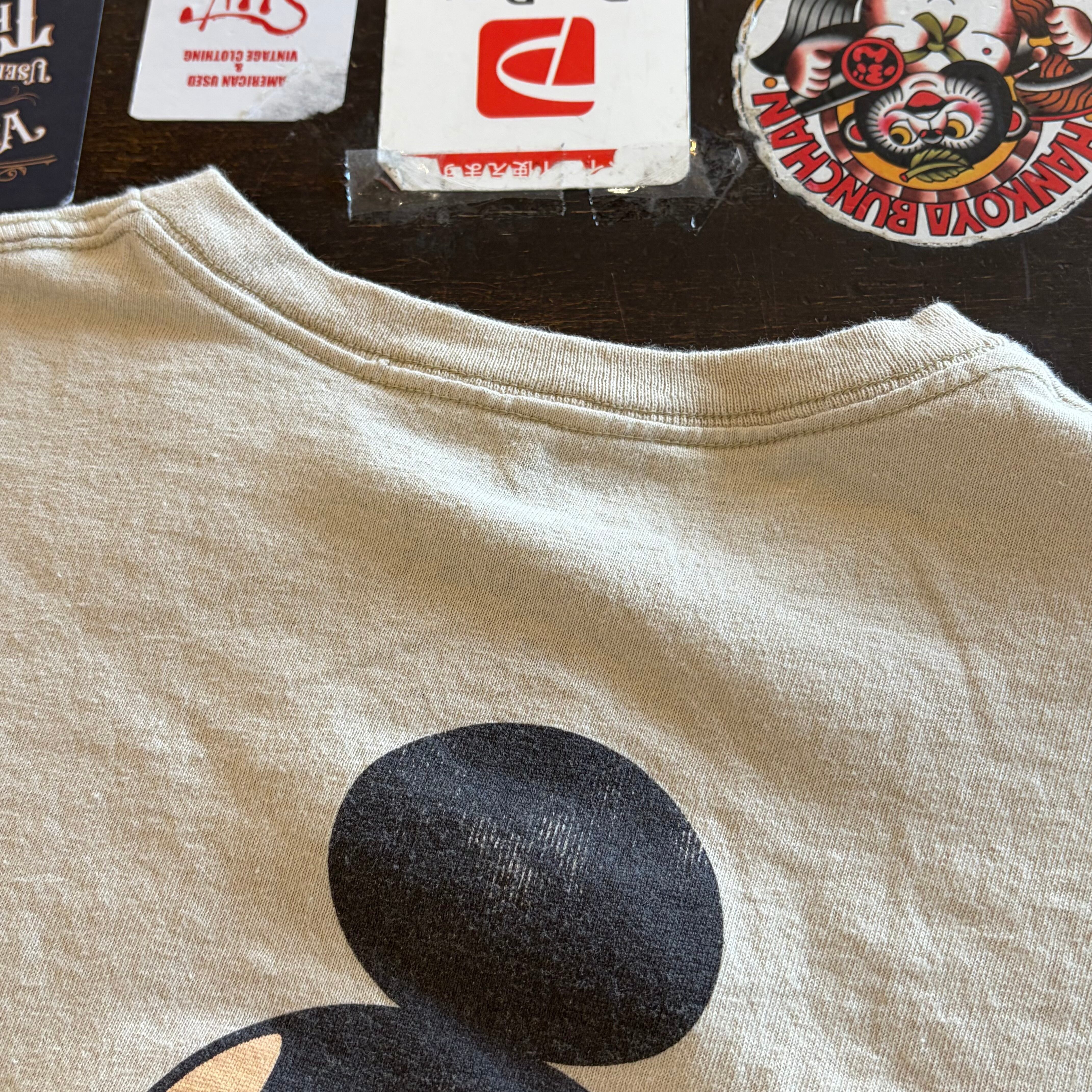 “まさかの両面!?” Mickey T-shirt (Beige)”size L” ミッキー Tシャツ ベージュ 古着 古着屋 郡山