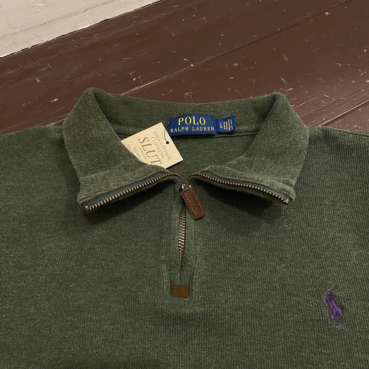 ”一番人気◎” Ralph Lauren Cotton HalfZip Sweat SIZE L (olive) 古着 ラルフローレン ハーフジップスウェット レアカラー