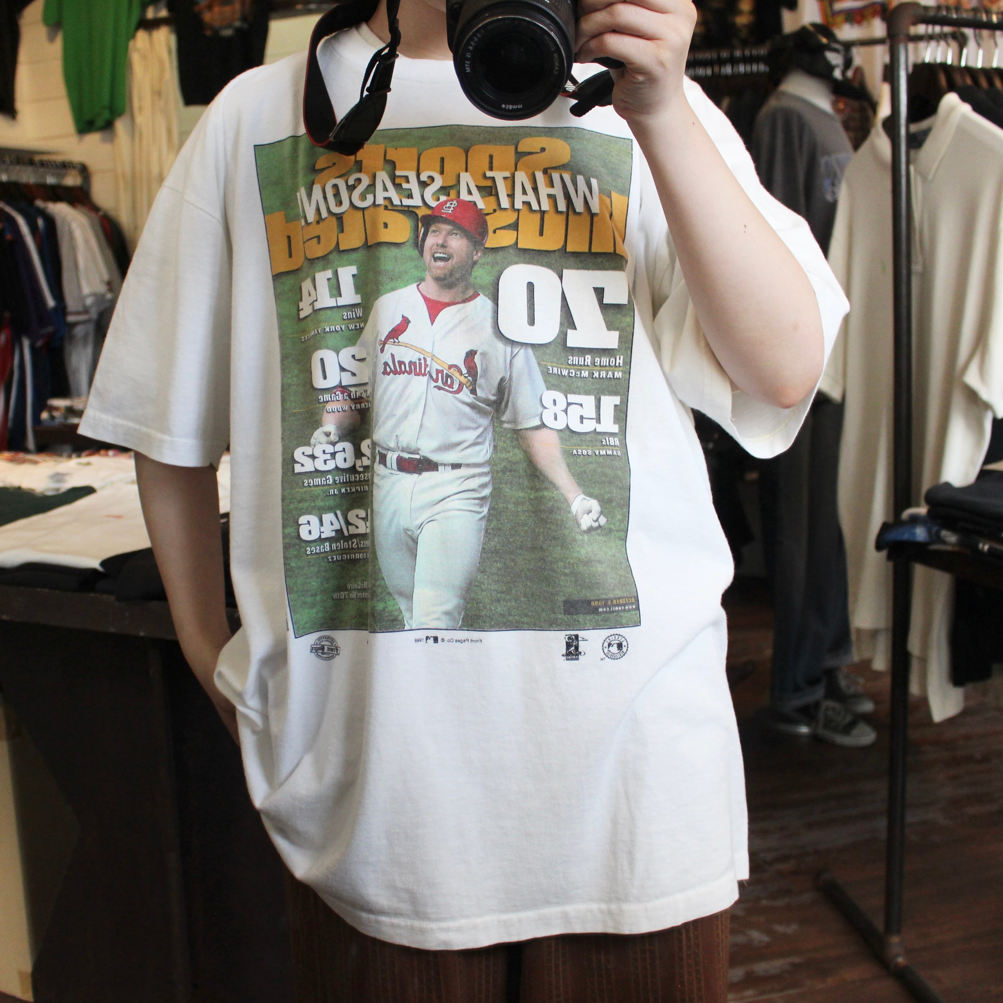 ”旬◎” 90's MLB St. Louis Cardinals News Paper Print T-Shirt Size:XL White ニュースペーパー 90年代 古着 古着屋